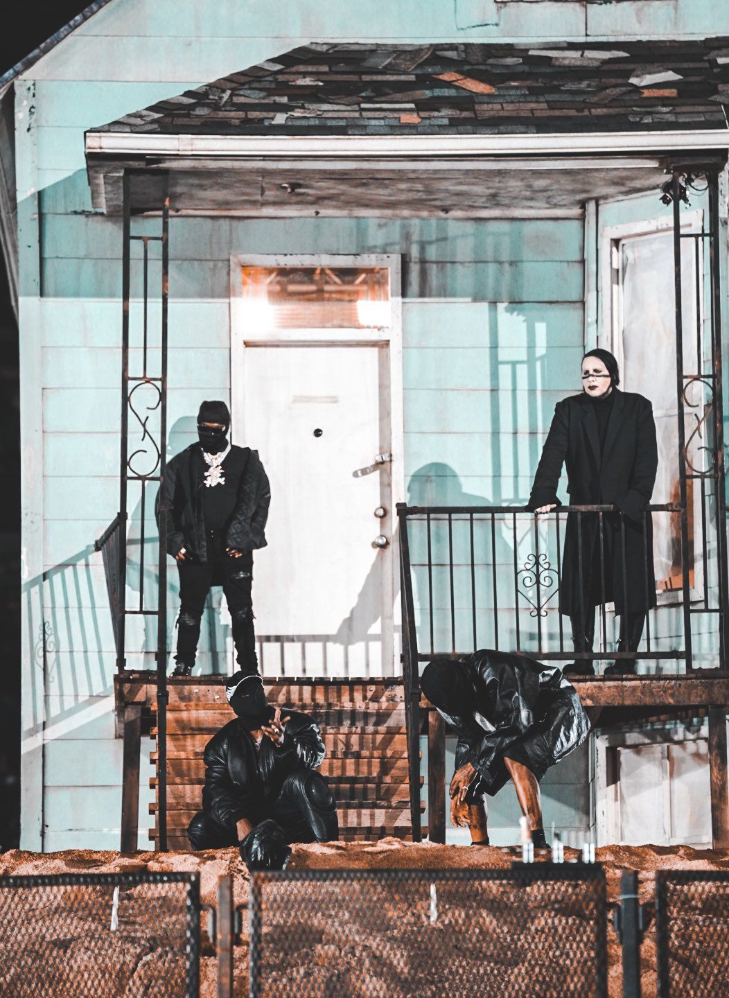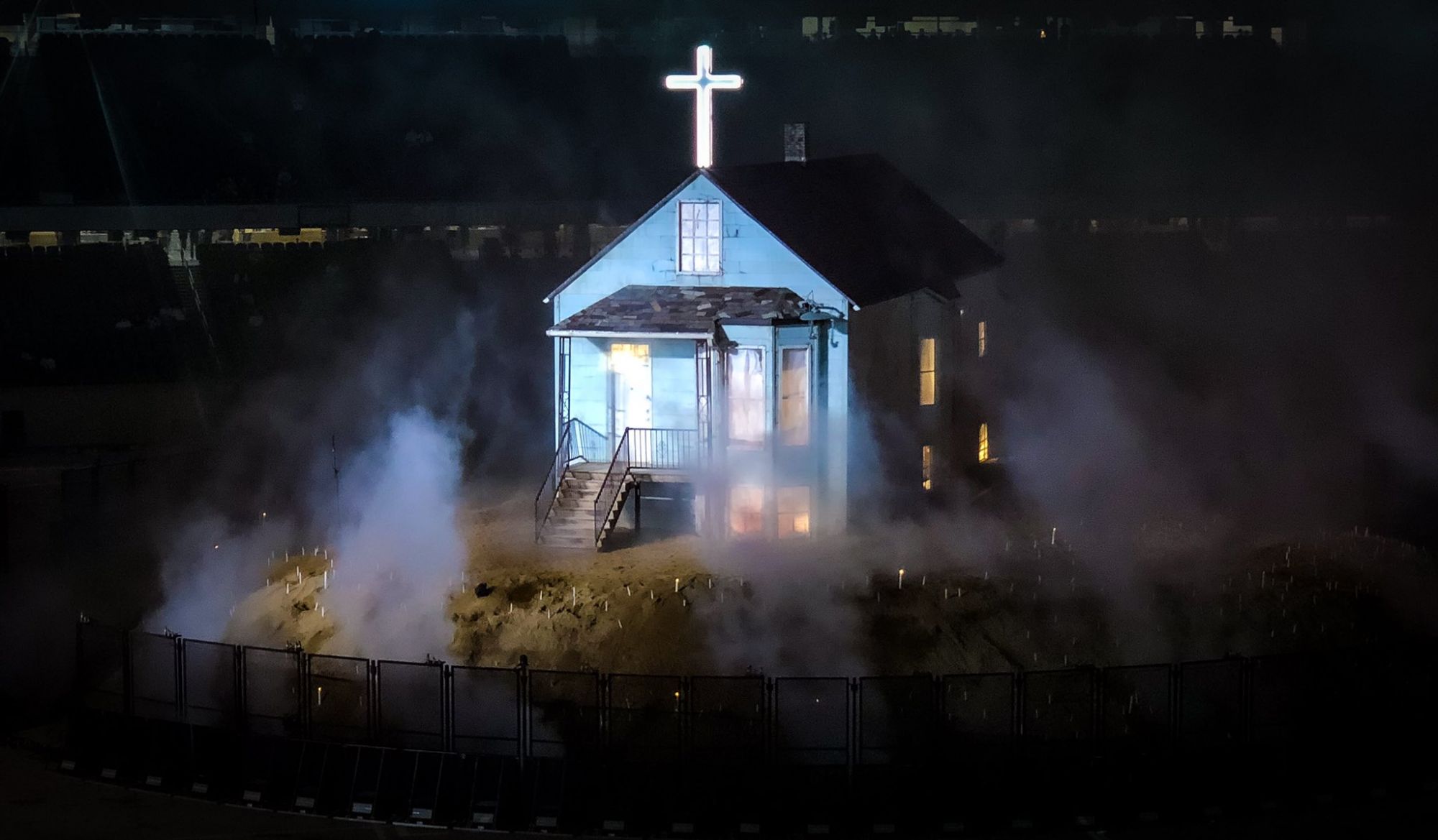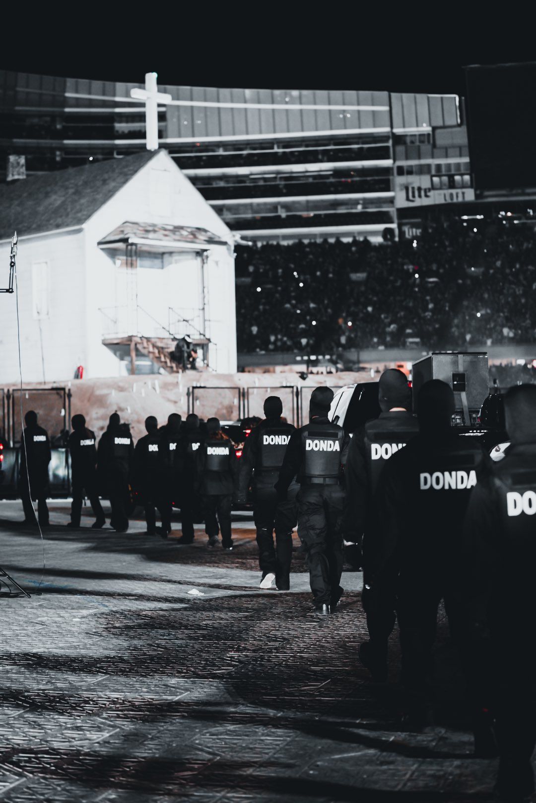 Third listening party also means third stage and after the austerity and minimalism of the two previous events, this time Kanye wanted to play at home. Literally. In addition to the choice of location, which went from the Mercedes Benz Stadium in Atlanta to the Soldier Field in Chicago, West chose to build a replica of his childhood home inside the stadium where he lived for most of his adolescence in the company of mother, Donda West of course. During the show the house was always at the center of the scene, becoming the meeting point for the guests present during the event and assuming a significant role in the metaphorical reading of the whole event.