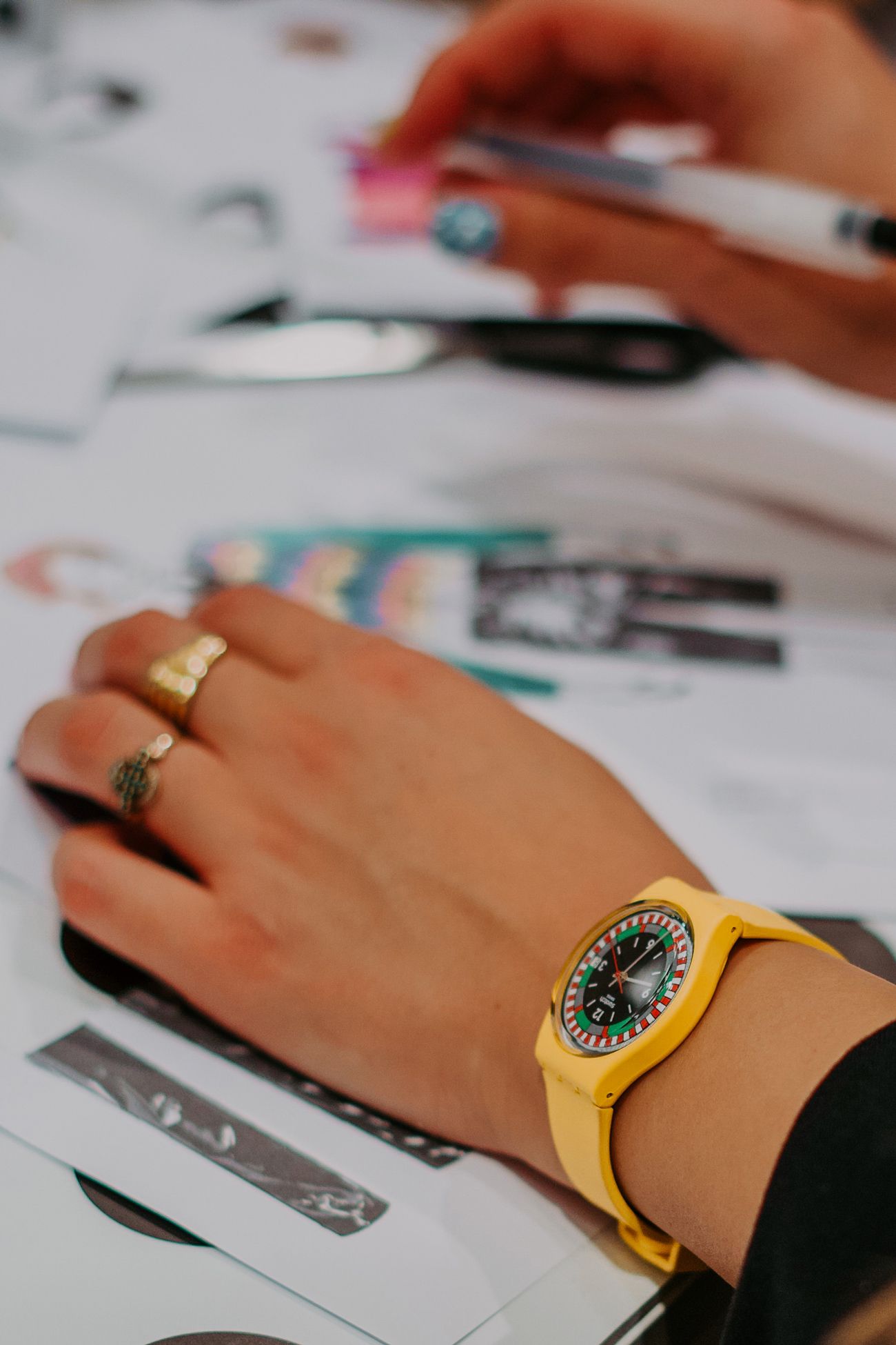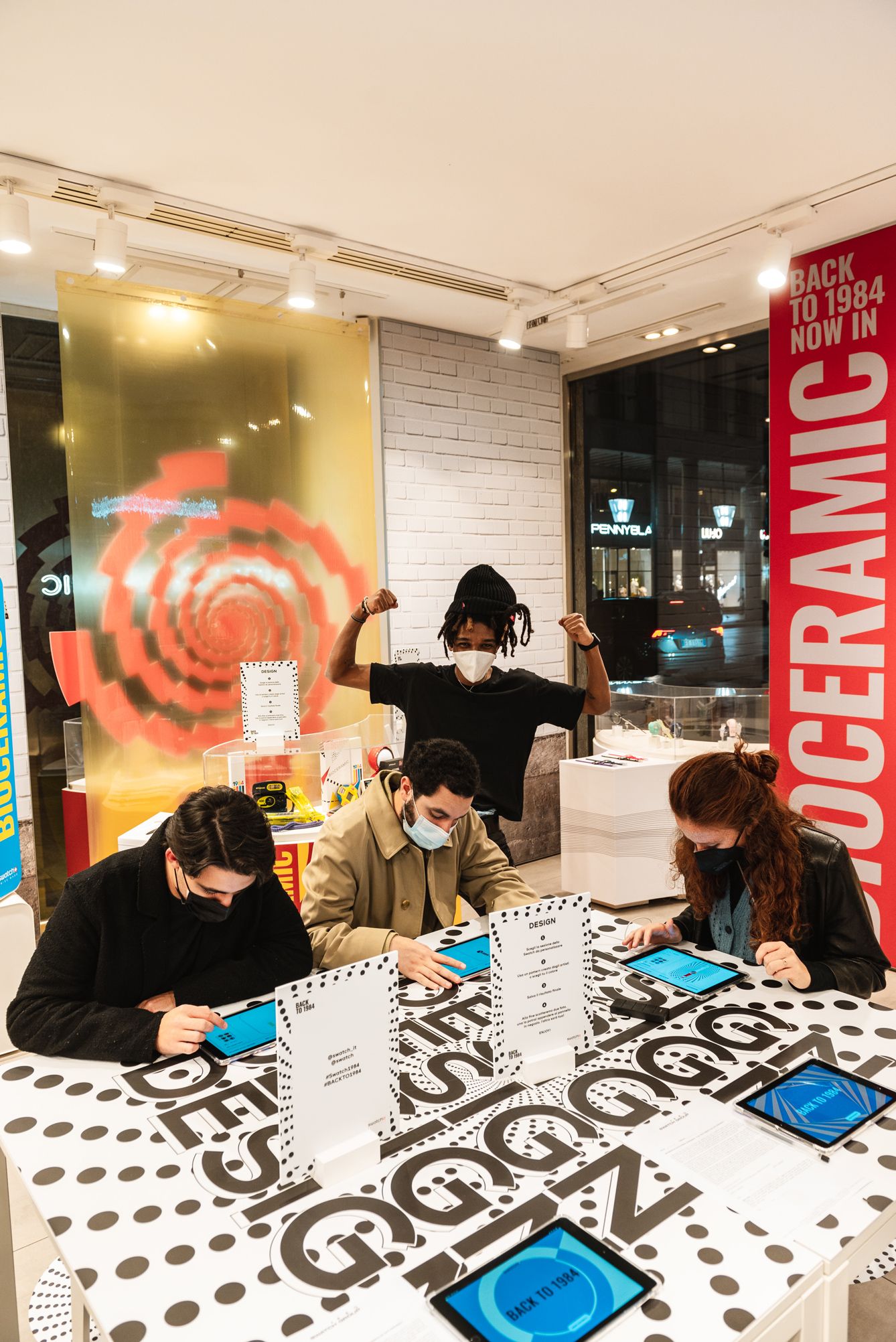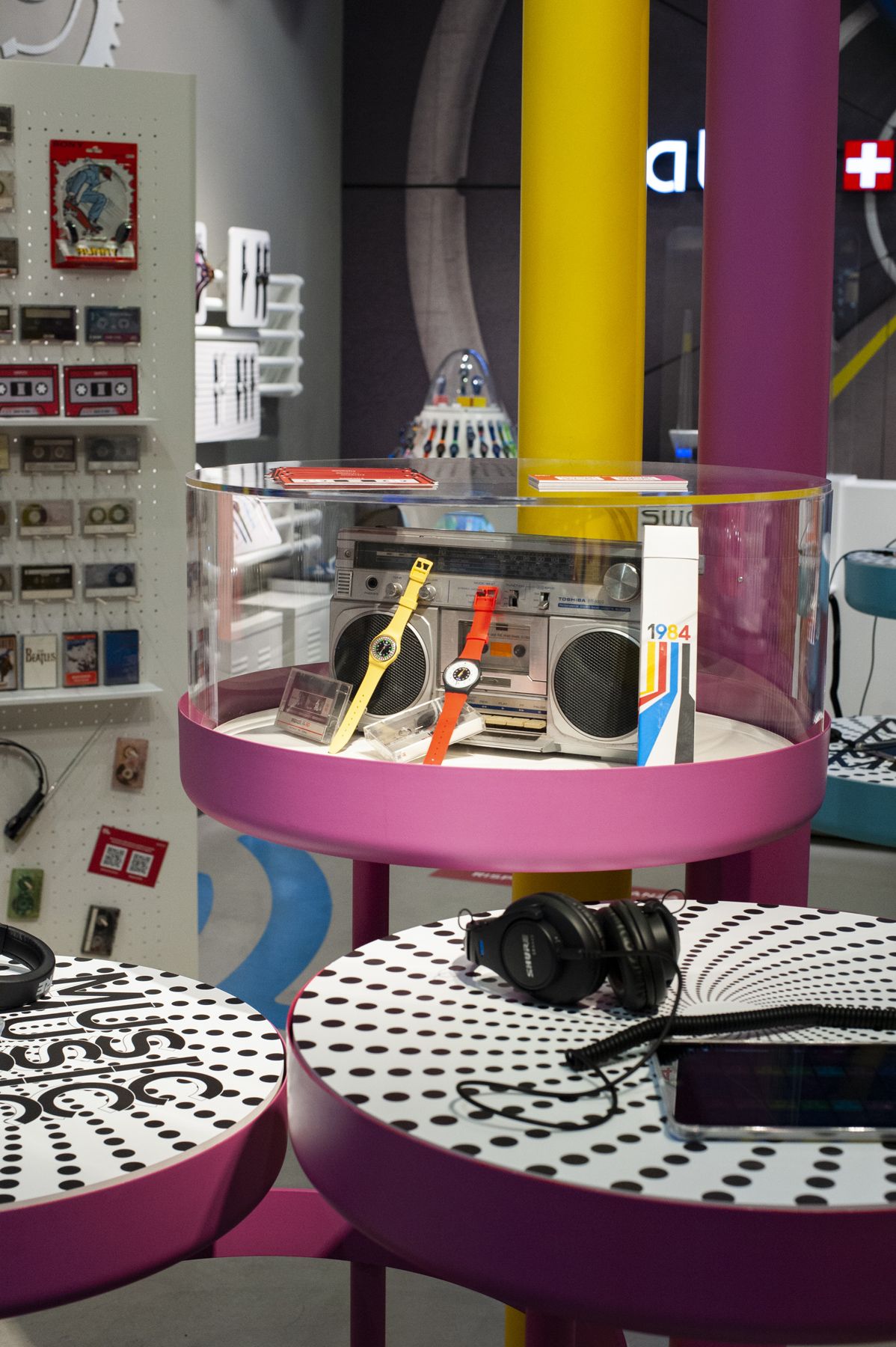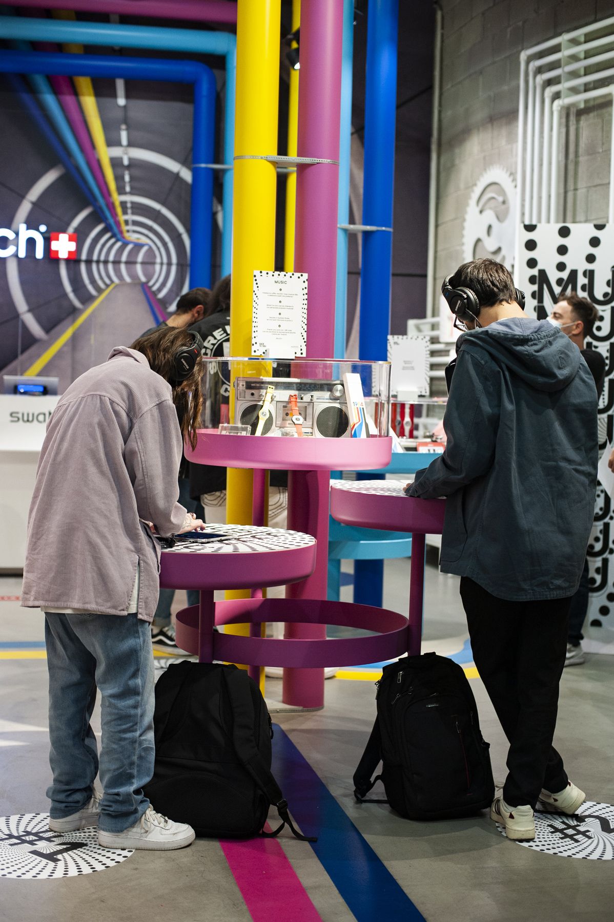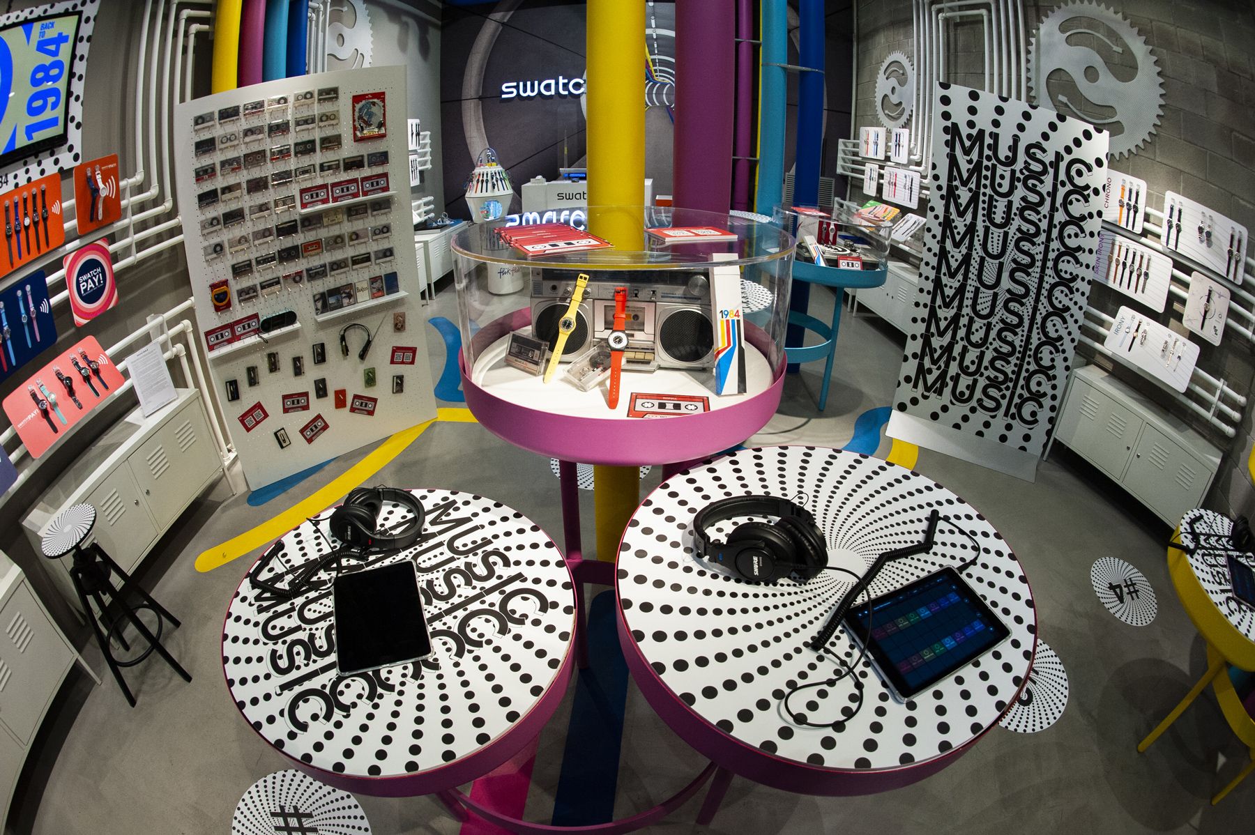 For the launch of its new 1984 Reloaded collection, Swatch organized three unique events around Italy. The Swatch Stores in Rome, Turin and Milan were the locations activated for the three workshops: a couple of creators from each city took on the role of host, giving guests the opportunity to interact with Swatch 1984 watches and relive the atmosphere of the '80s by engaging in a series of themed activities created for the occasion.