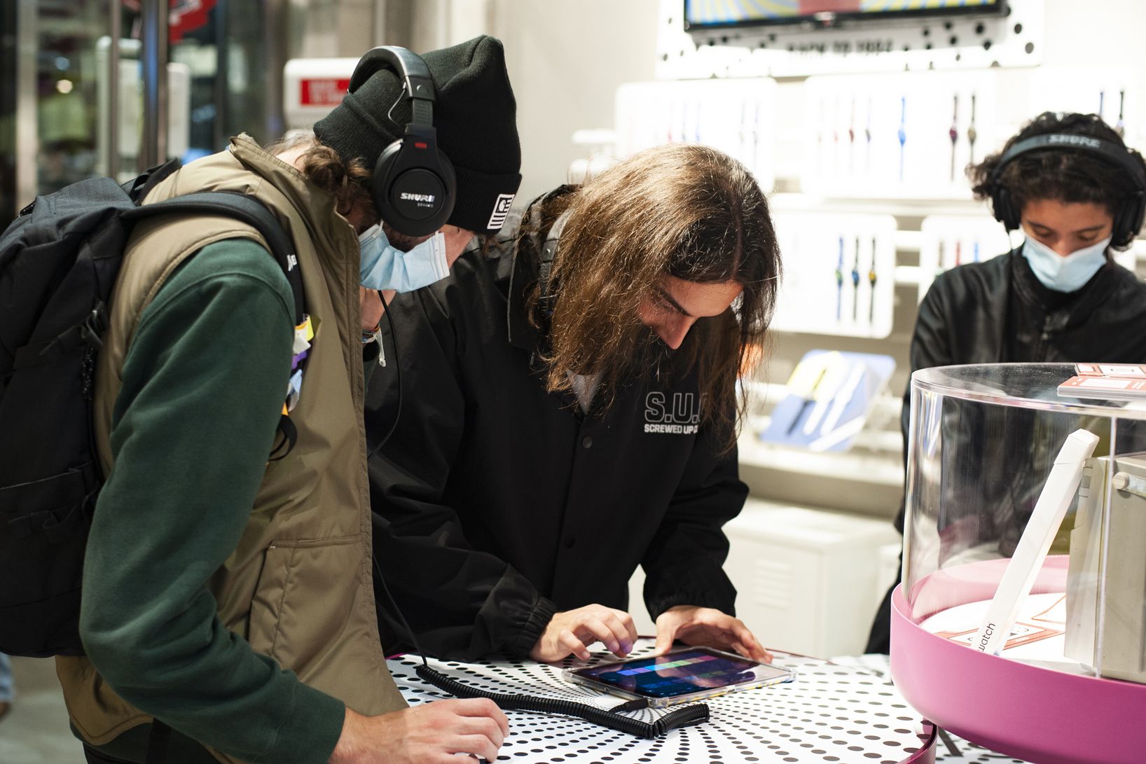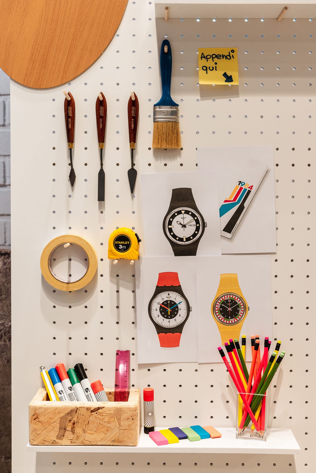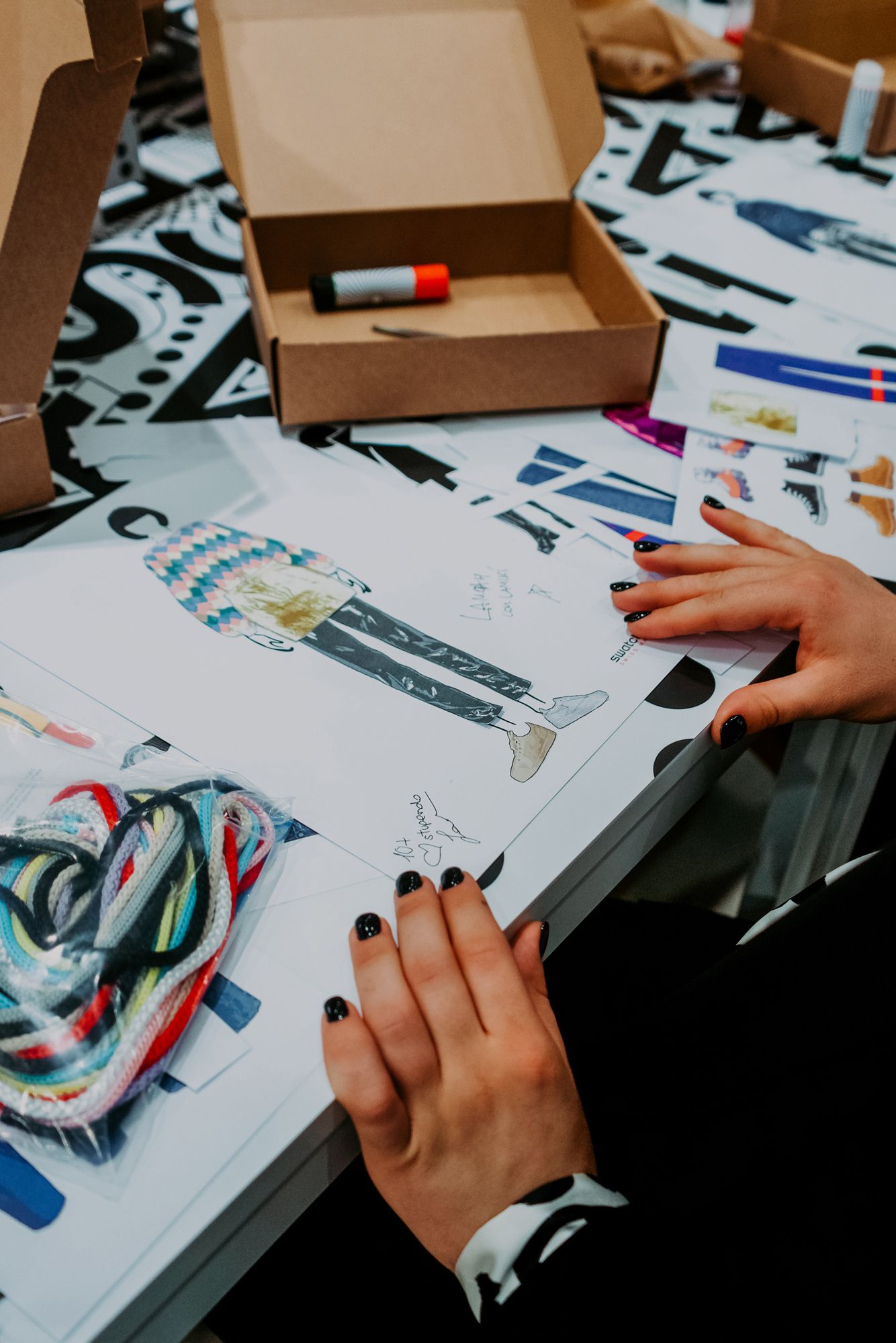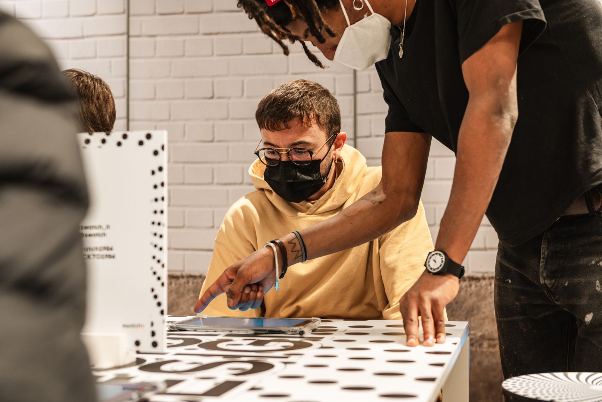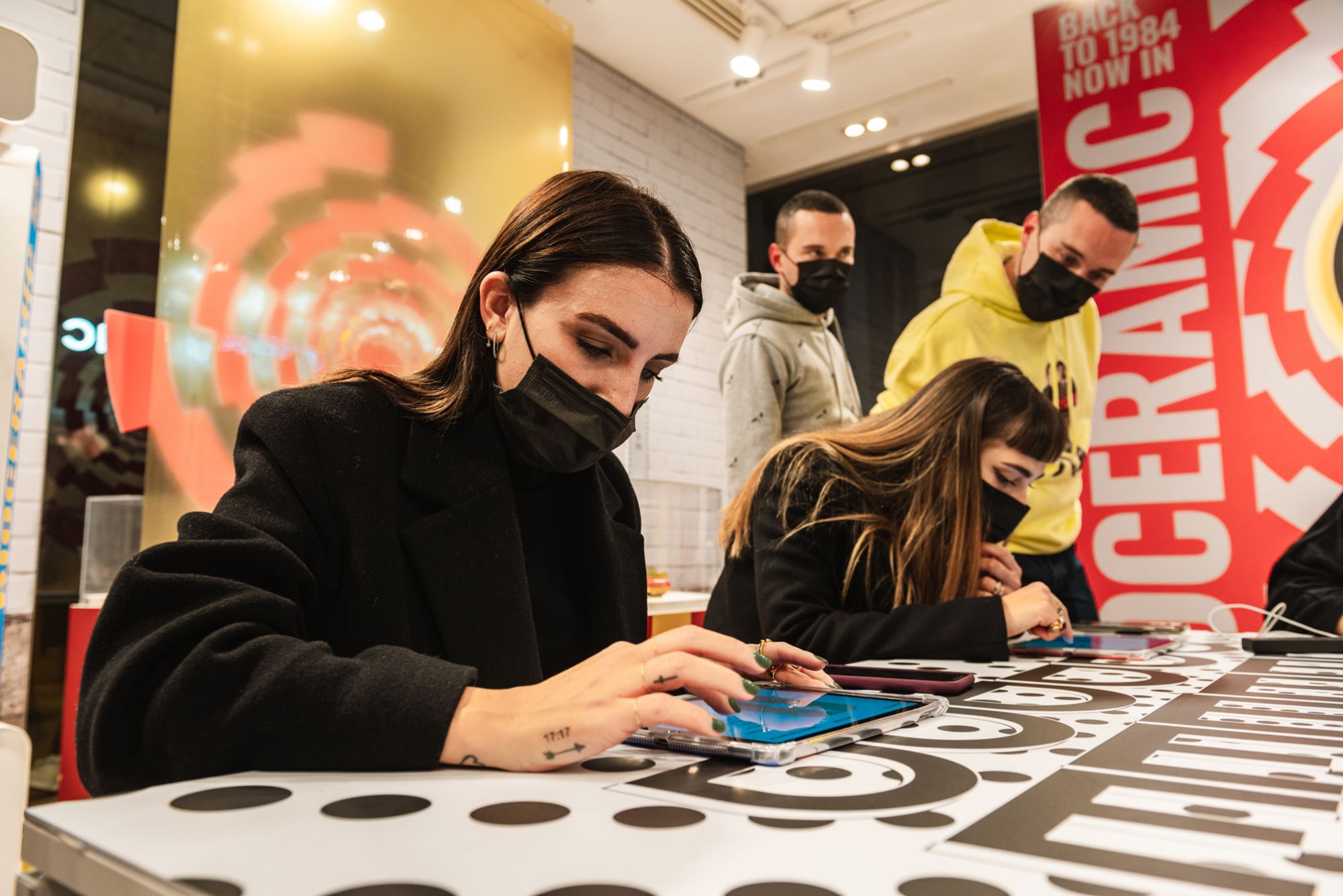 In Rome the theme was Fashion, so the participants together with stylists Michela D'Angelo and Giada Zappa immersed themselves in the 80s, cutting, pasting and creating looks inspired by those years. The visual artists Red and the Van Orton brothers were the protagonists of the Turin event dedicated to Design, guiding the guests in the use of an exclusive tablet app to customize the silhouette of the Swatch watch with colors and patterns designed ad hoc. In the last event in Milan, the guests had the opportunity to mix a series of 80s-themed music loops made especially for the occasion by Crookers and Sgamo during the Music workshop.