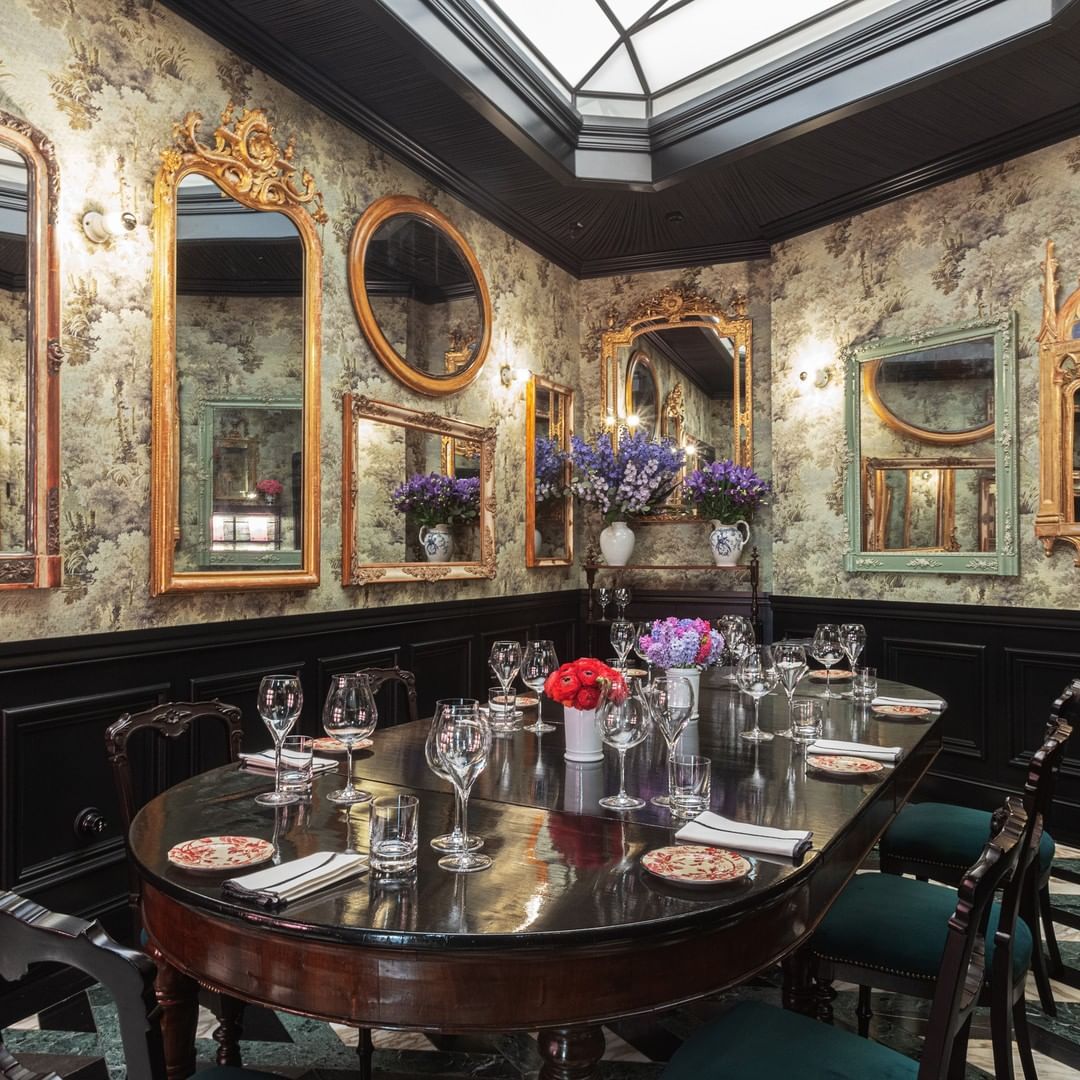 Trussardi is known for its timeless elegance as a heritage brand and also as a house of the Greyhound. In their restaurant space in Milan, mirrors, glass, and soft brown leathers seem to speak to the pedigree, coming together for an austere “old money” regality. The food carries the same simplicity, quality and heritage with seasonal flavors, high quality Italian ingredients, and elegant plating.