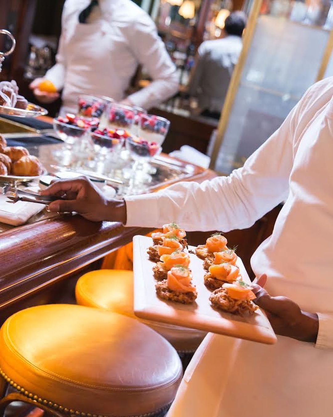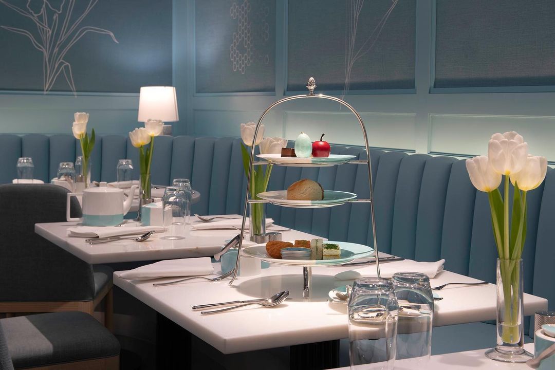 Who doesn’t remember the almost visceral scene from Breakfast At Tiffany’s where Holly Golightly, returning from her nightly festivities, stops to eat a croissant in front of a Tiffany’s window, impossibly elegant. Carrying the brand’s signature “Tiffany Blue” throughout the space, with soft velvet chairs, and with touches of silver for which the brand is also famous, the Blue Box Cafe menu weaves together heritage and story, serving for breakfast and lunch a mix of favorite dishes of the original founder as well as an elegant tea service and pastries. The restaurant itself continues a famous but simple storyline simply by existing, granting clients a chance to actually have breakfast at Tiffany’s.