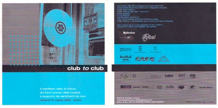 To realize the flyers of the last '90 and the very first '00 are the first guys who grew up with computers, who to make those flyers in A5 format captivating did not respect aesthetic rules of any kind: it was a type of fantasy without brakes that led to disparate results, but also paradoxically more free and indicative of the taste of their generation. This did not stop the spread of collages, letterings and drawings that kept the DIY effect alive and aroused a strong sense of belonging. The common denominator is the eye-catching factor, but if the covers of the flyers have been the territory of experimentation of various artistic currents, from graffiti to comics and screenprint images, on the back could not miss information such as date, time, street information and special guests – DJs, musical groups, TV characters of Non è la Rai and other programs of those years. Every now and then, finally, small sponsors were inserted.