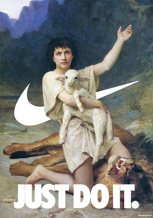 Davide è un fashion film director ma quando ha tempo libero tra una ripresa e l'altra si diverte ad incorporare a dipinti antichi lo storico logo di Nike, lo Swoosh.