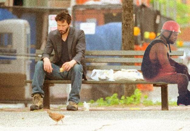 Remember the Sad Keanu meme best of the year ? For those of you who had not yet seen this melancholy GIF we can tell you that the story of the nickname began when the actor was photographed on a bench outside a bar with a distraught air , a GIF later renamed " Cupcake Keanu ", by them the people of the internet melts and is set up that June 15 is Cheer Up Keanu Day.