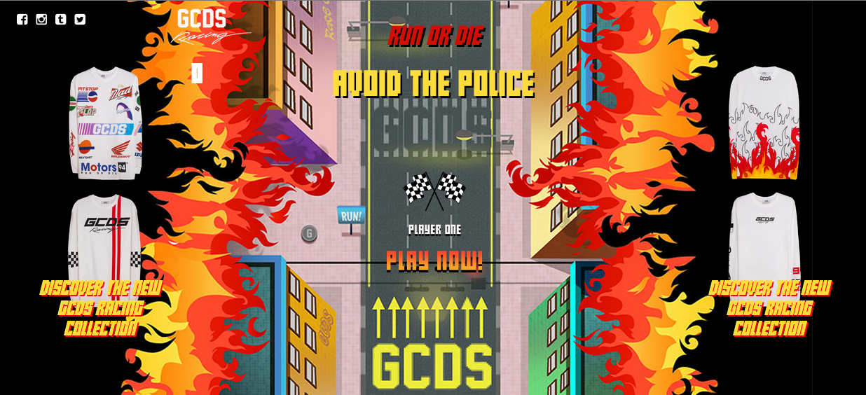 Above all, this action games it's a fun way to promote GCDS New racing release and online store, for 10 days users can get the chance to win a pair of GCDS socks every day. Going through the scoreboard and at midnight, 1st classified will win a pair of socks, those with the top three scores will get a 20% discount voucher on their next purchase on www.GCDSwear.com!it's time to Play! Run or Die!