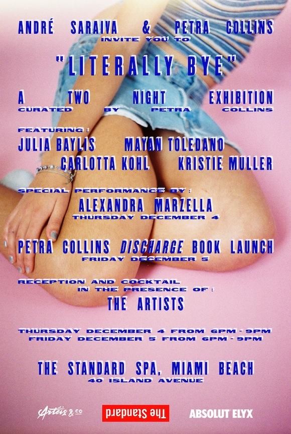 Our boundless love for the 21 year old Petra Collins is not at all new stuff so it's impossible for us not to mention "Bye Literally," his two-night exhibition represents works of Julia Baylis, Mayan Toledano, Carlotta Kohl and Kristie Muller; a performance by Alexandra Marzella and the launch of our next purchase, his new book "Discharge".