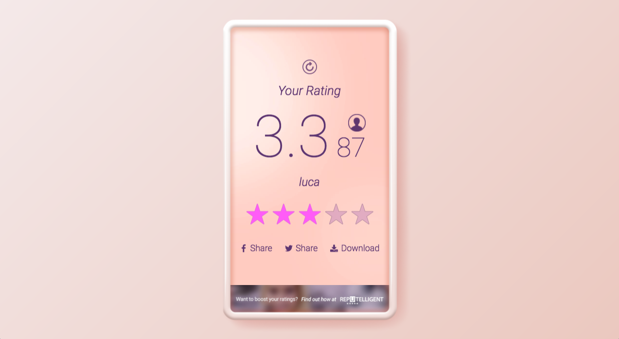 The idea is very simple: you enter the name of a friend or your own, and the app shows you a totally random social rating, that we can then choose to share on our (real) social media.