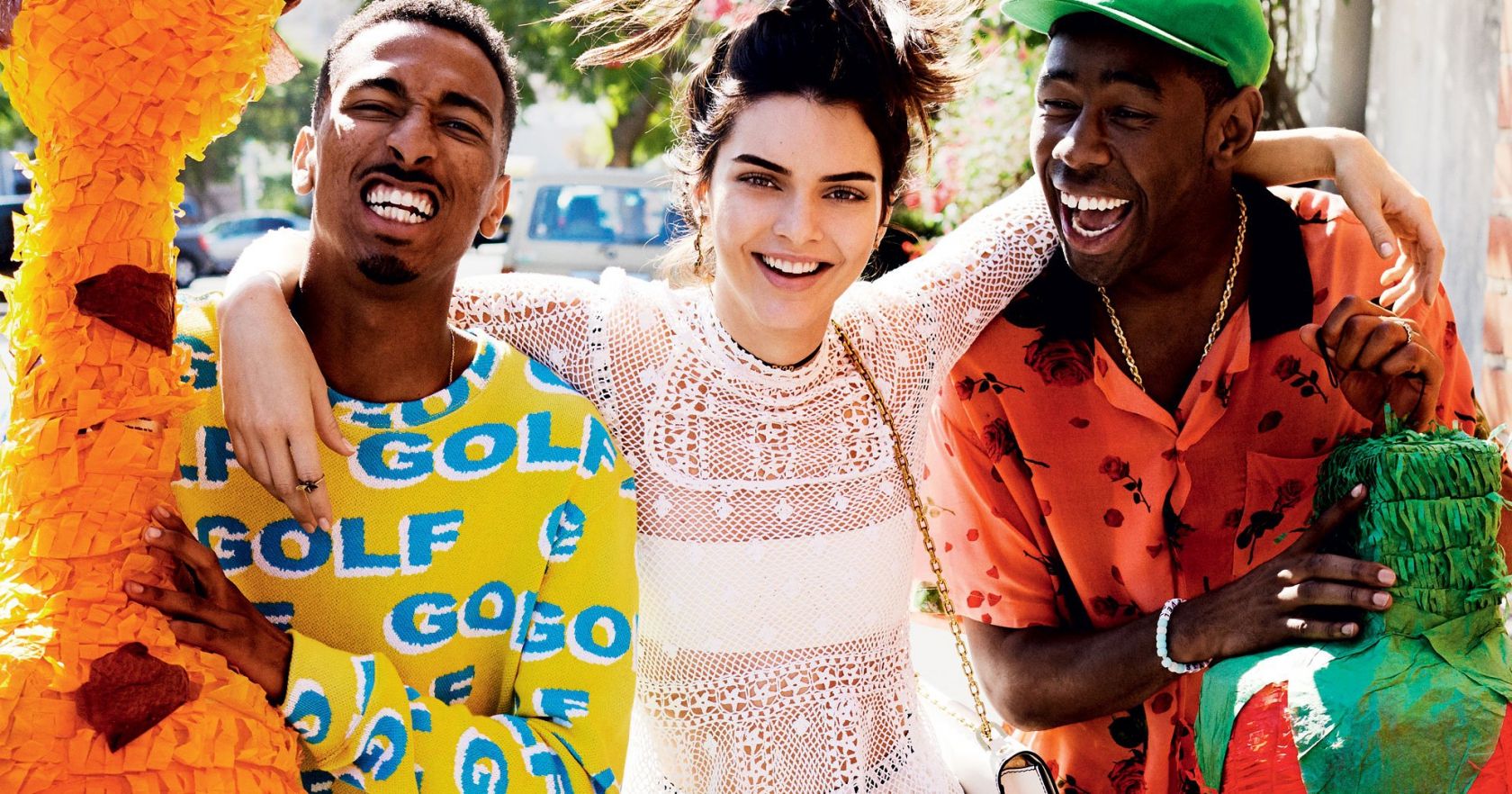 Also fashion shooting who wanted Kendall Jenner as star are numerous. Among the most recent, the most appreciated is the one shot by Mario Testino for Vogue, in which the model poses with rappers Tyler, The Creator, Taco and their skater friends.