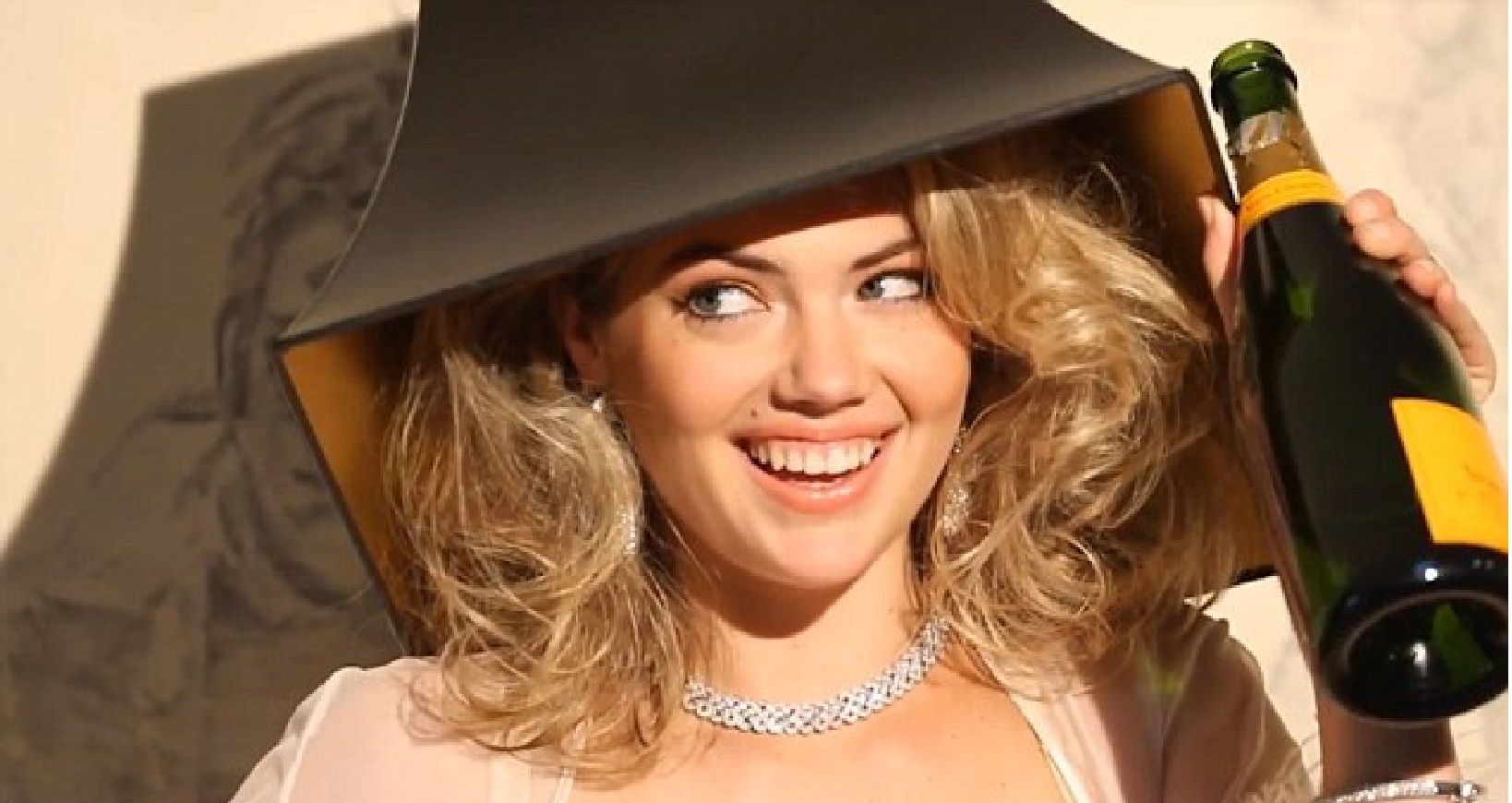 2016 is officially over for 13 days, but maybe the news has not come to the LOVE magazine team. Only a few hours ago rolled out the last video of their famous Advent Calendar, playful project that made December enjoyable to many leaving them peek behind the virtual windows. The star? An explosive Kate Upton styled as a Marilyn Monroe. To the tune of the famous "Diamonds Are a Girls Best Friend", sung by Hollywood diva in 1953 for the movie "Gentlemen Prefer Blondes", the 24-year-old model plays hide and seek with Doug Inglish's camera. Wearing a cream-colored lingerie, feathered kimono and Giuseppe Zanotti sandals, the sexy blonde drinks champagne, flirts, hides under the bed, crawls in the garden, covers her face with a lamp shade, showing her Junoesque body.