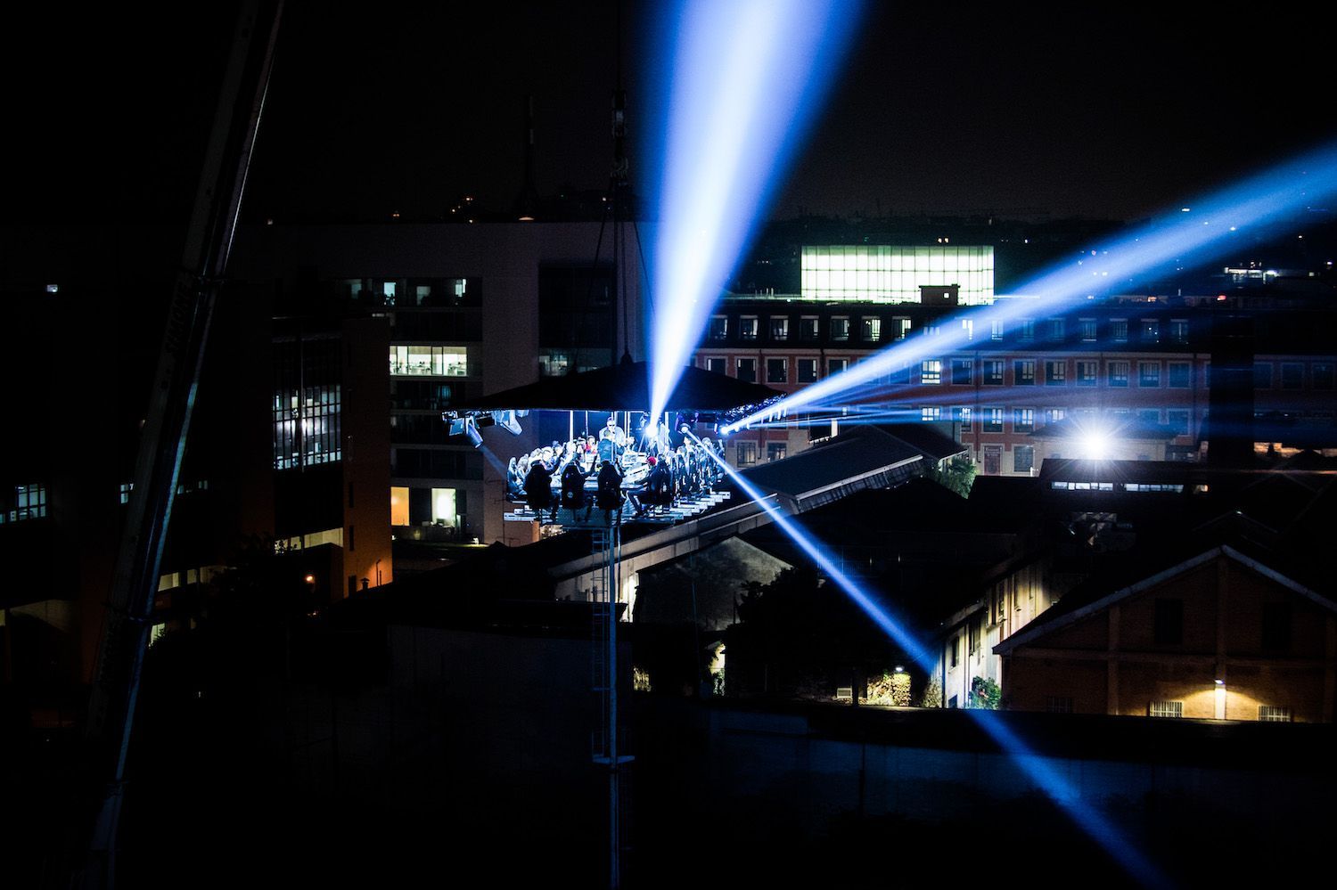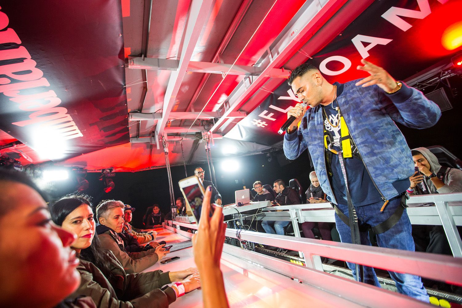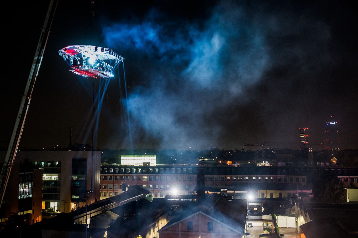 Among guest stars, producer Shablo, rap stars Sfera Ebbasta, Cizco, radio speaker Andrea Rock and many others sitting on a platform suspended in void while under them over 2000 people have enjoyed the breathtaking and engaging show by the King of Rap that challenged the height, moving smoothly inside the flying platform.