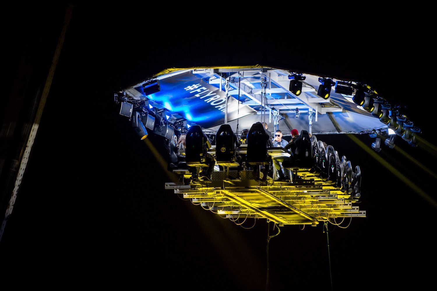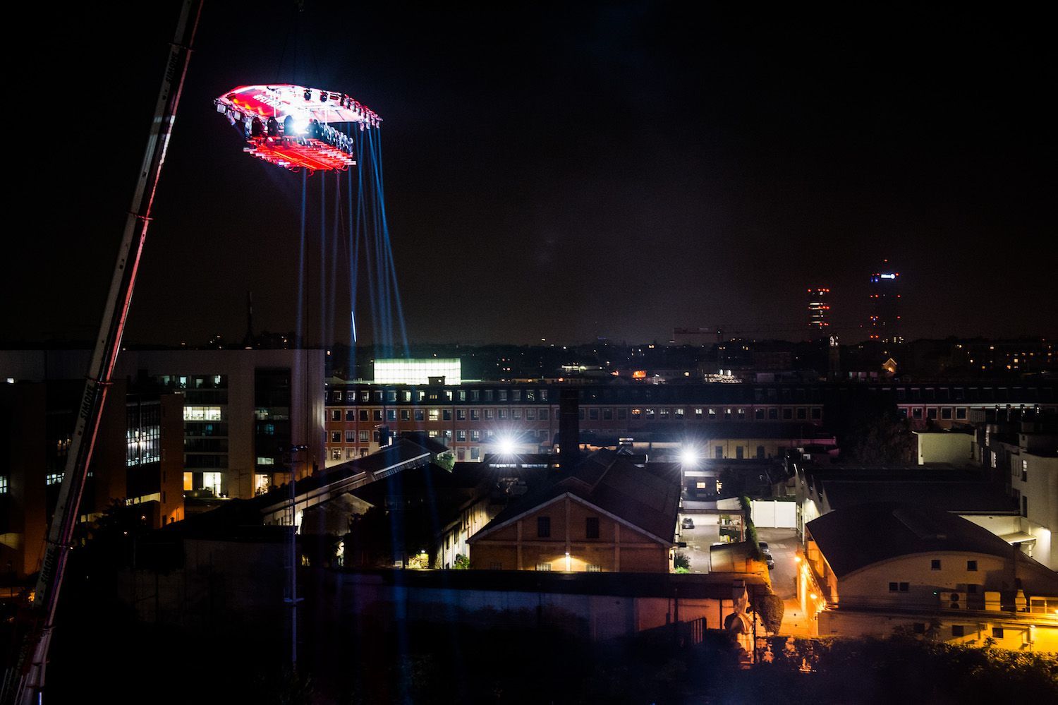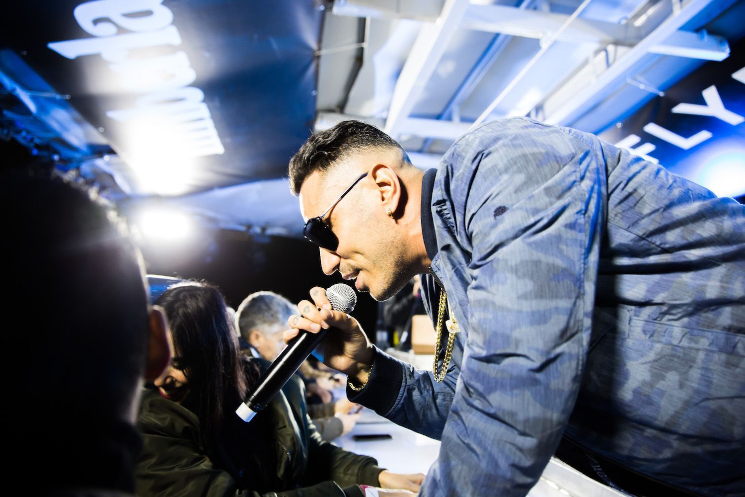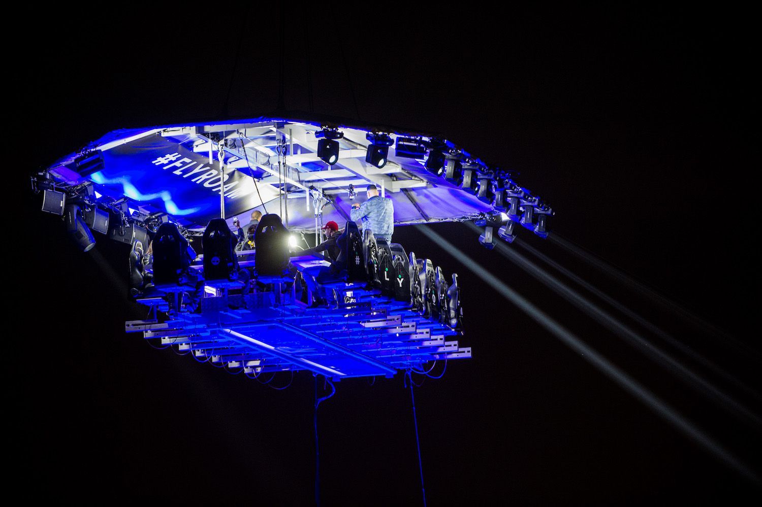 Among guest stars, producer Shablo, rap stars Sfera Ebbasta, Cizco, radio speaker Andrea Rock and many others sitting on a platform suspended in void while under them over 2000 people have enjoyed the breathtaking and engaging show by the King of Rap that challenged the height, moving smoothly inside the flying platform.