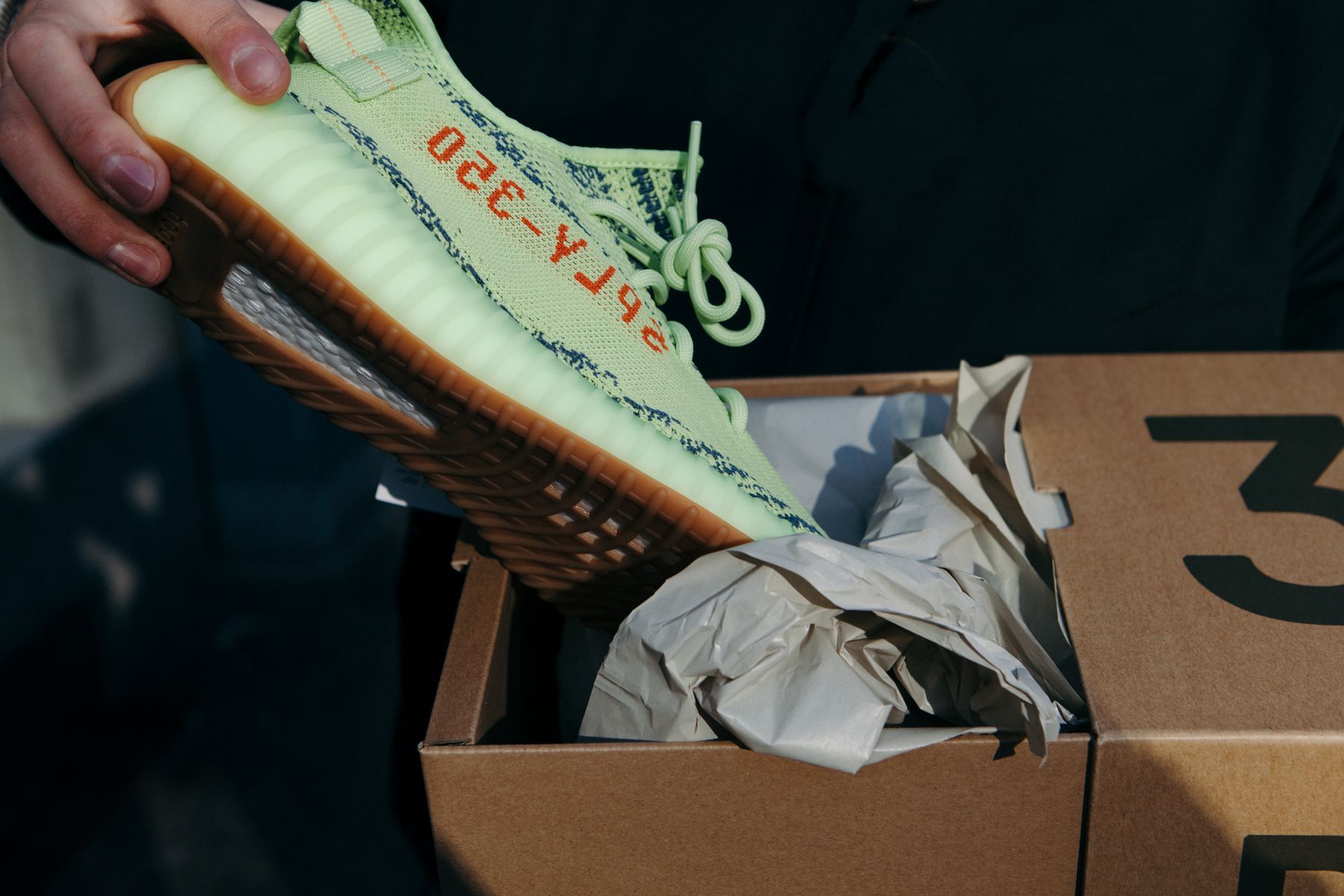 Have a look at the YEEZY Boost 350 V2 “Semi-Frozen Yellow" Release in Milan adidas Via Tocqueville, Milano - 18.11.17