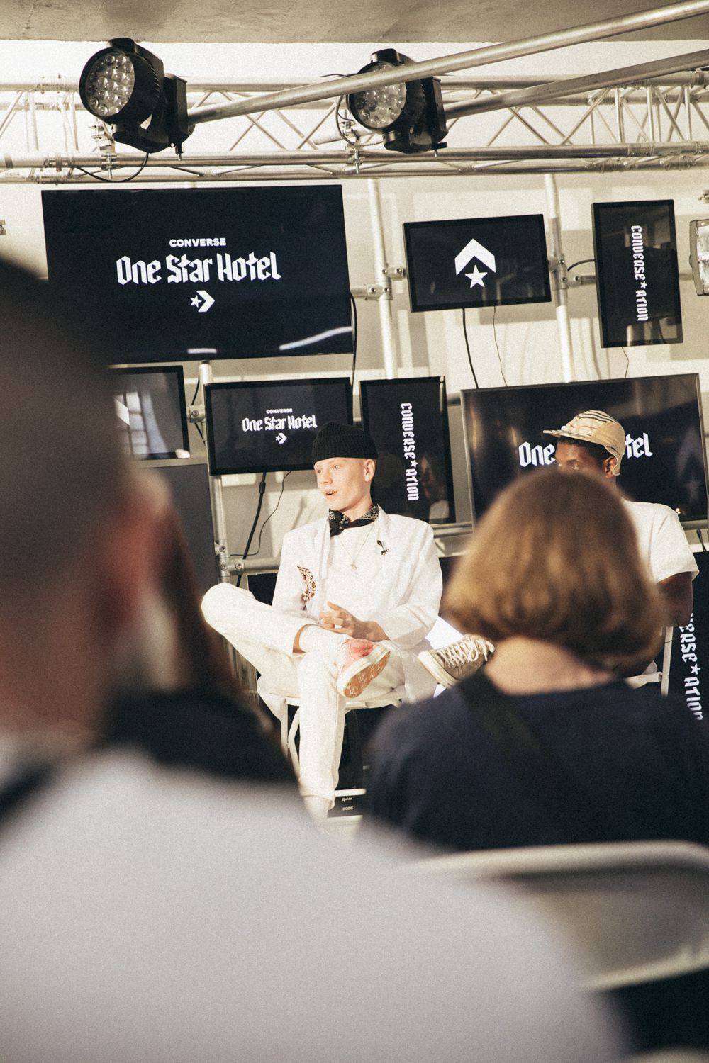 On this first day, with a panel talk on the link between music, streetwear and the iconic Converse silhouette, she followed a workshop with Paria, a screen project on the link between skate and sneaker-culture and a tour of the hotel to discover the exceptional guests who take care of the rooms like A$AP Nast, Leo Mandela, Yung Lean and many others.
