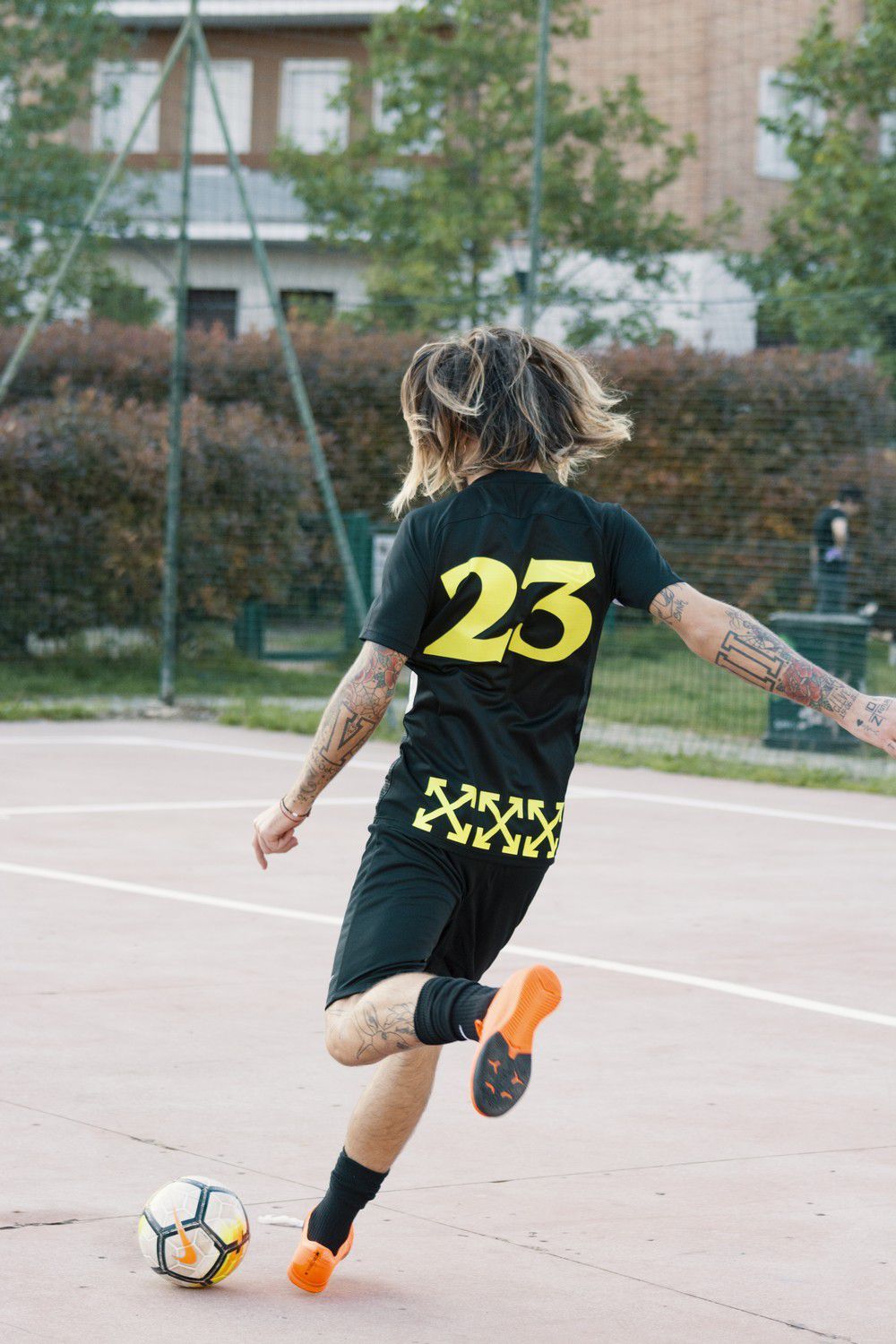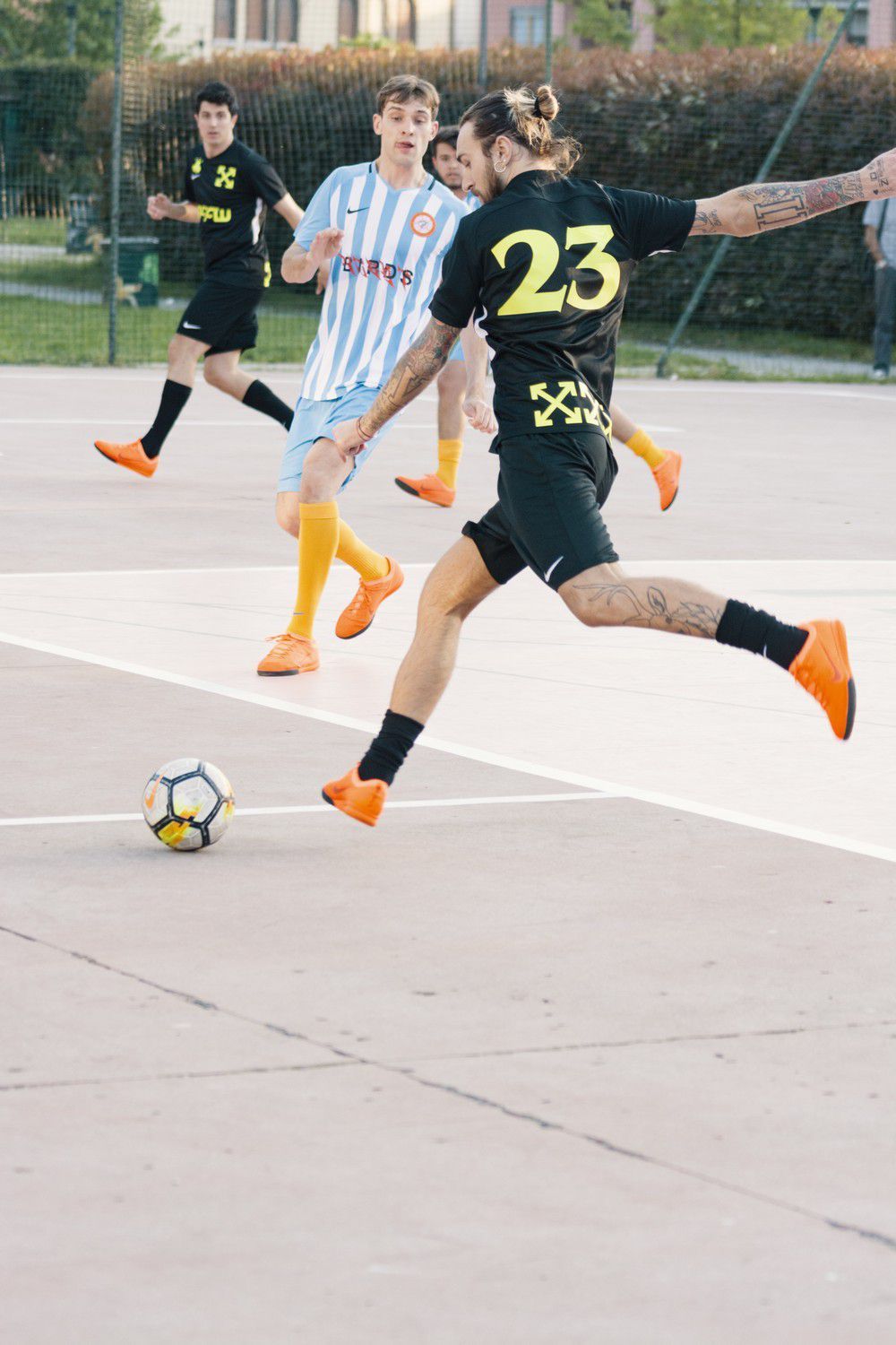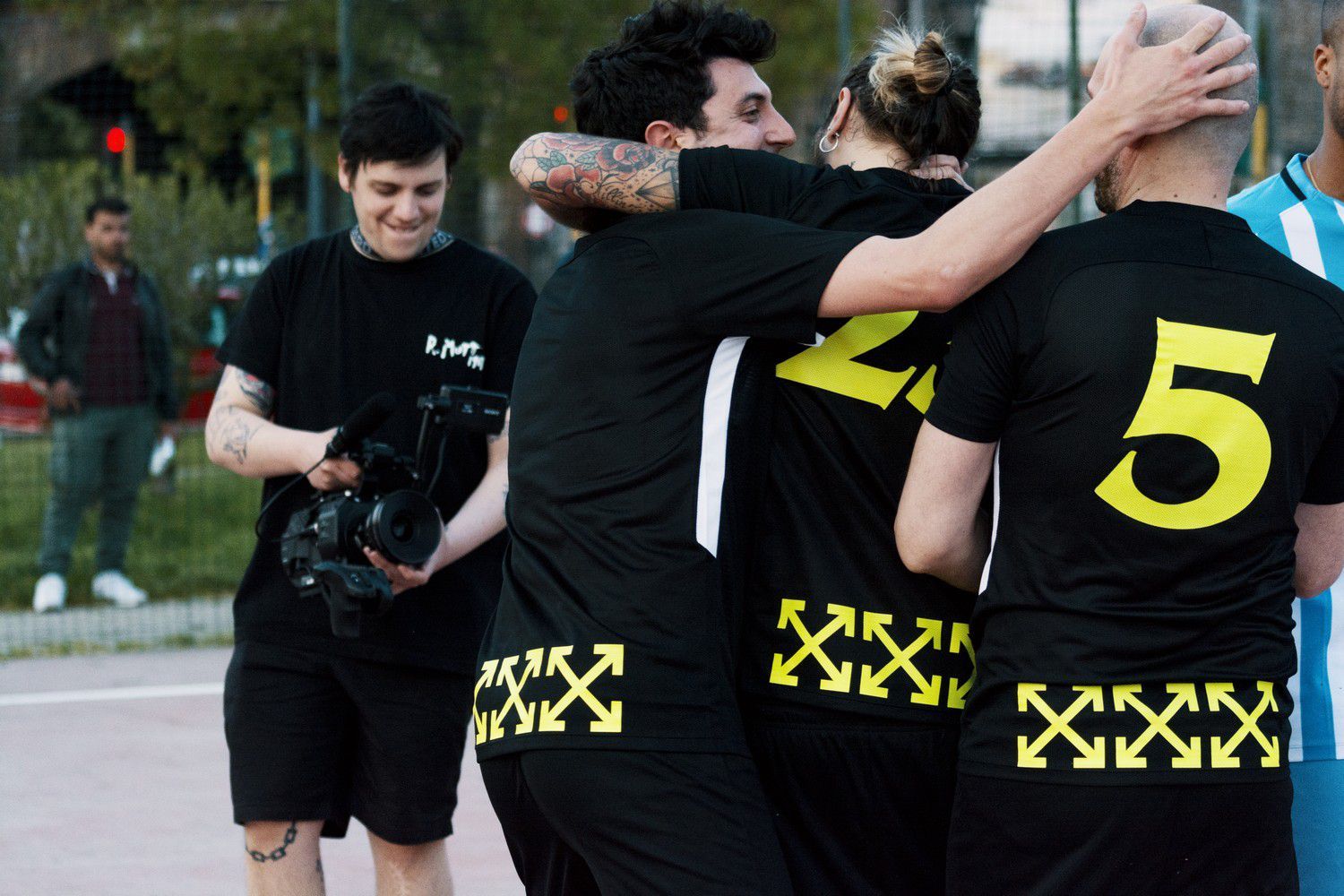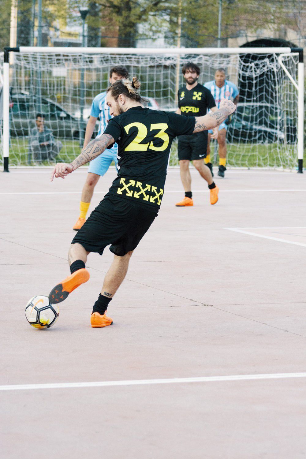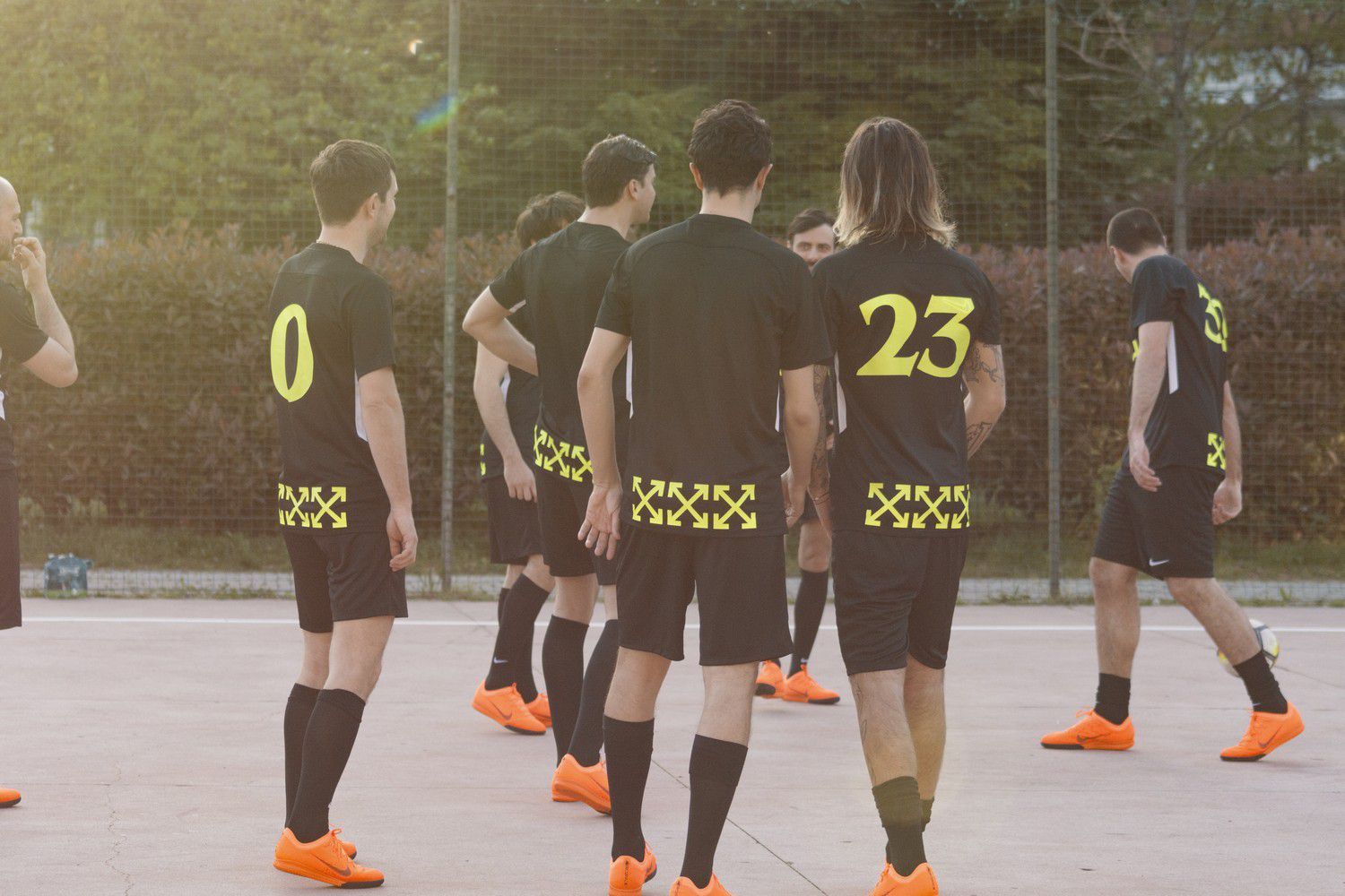Both teams took to the field with a custom jersey made during the workshops organized by Nike at Spazio Maiocchi: blue and white for the Heron Preston team, Nike with fluo details for OFF-WHITE. The match was very tough, it ended 8 to 7 for the team of the brand founded by Virgil Abloh.