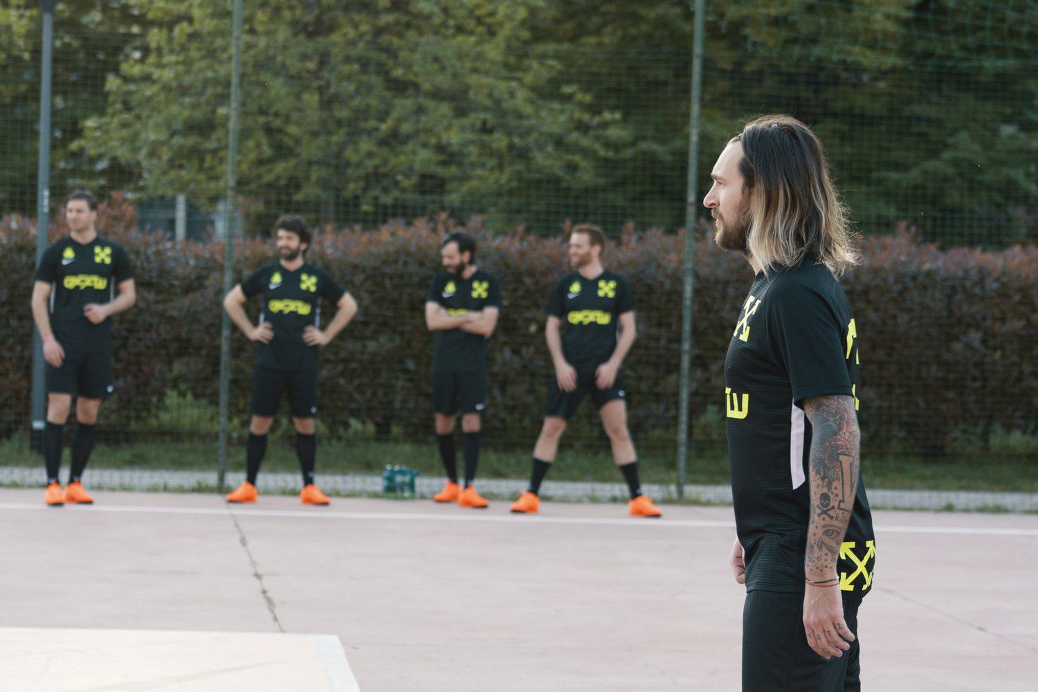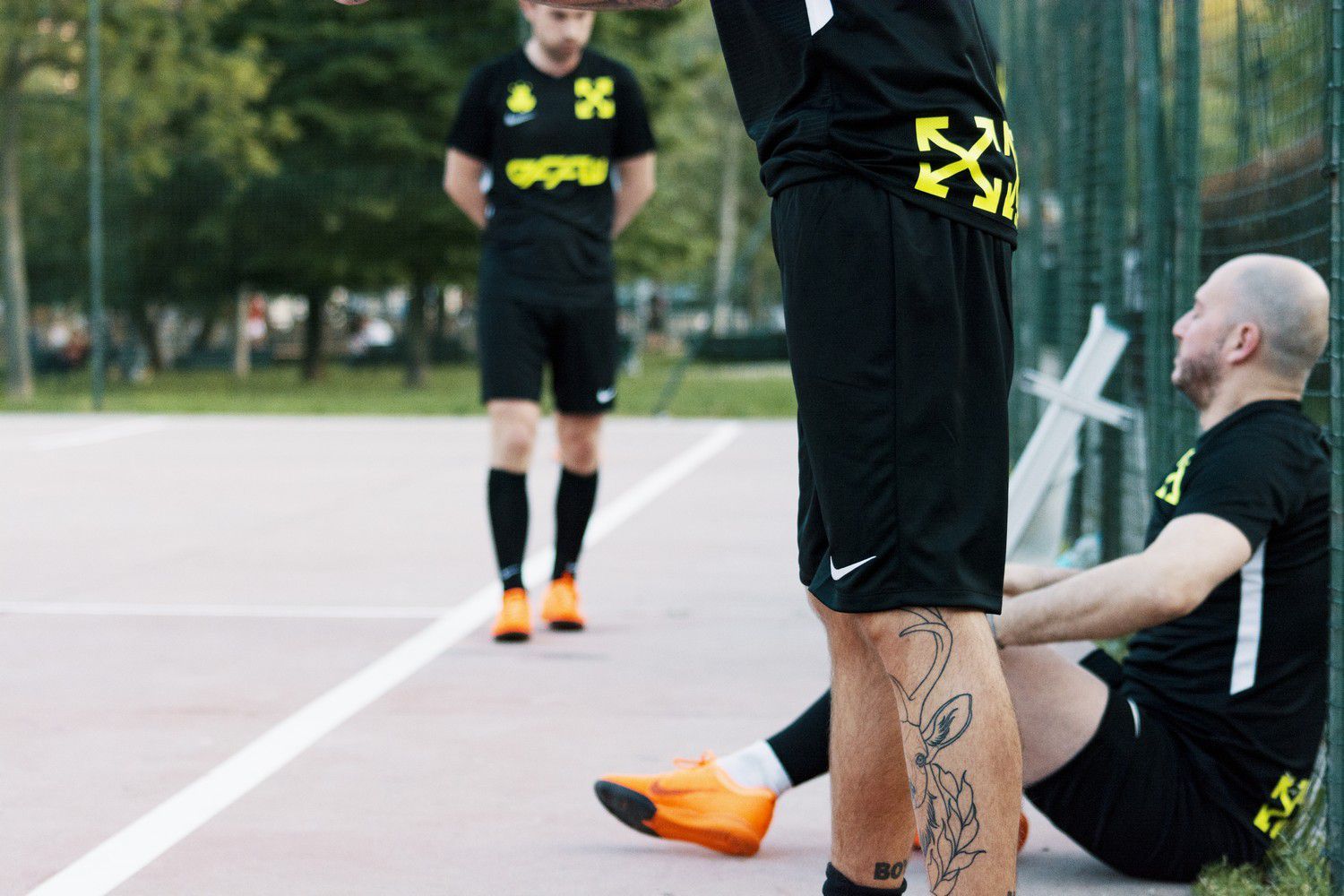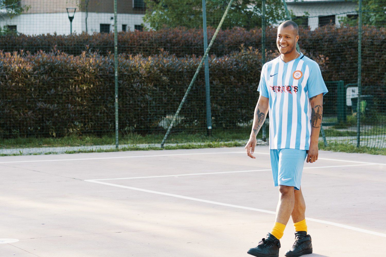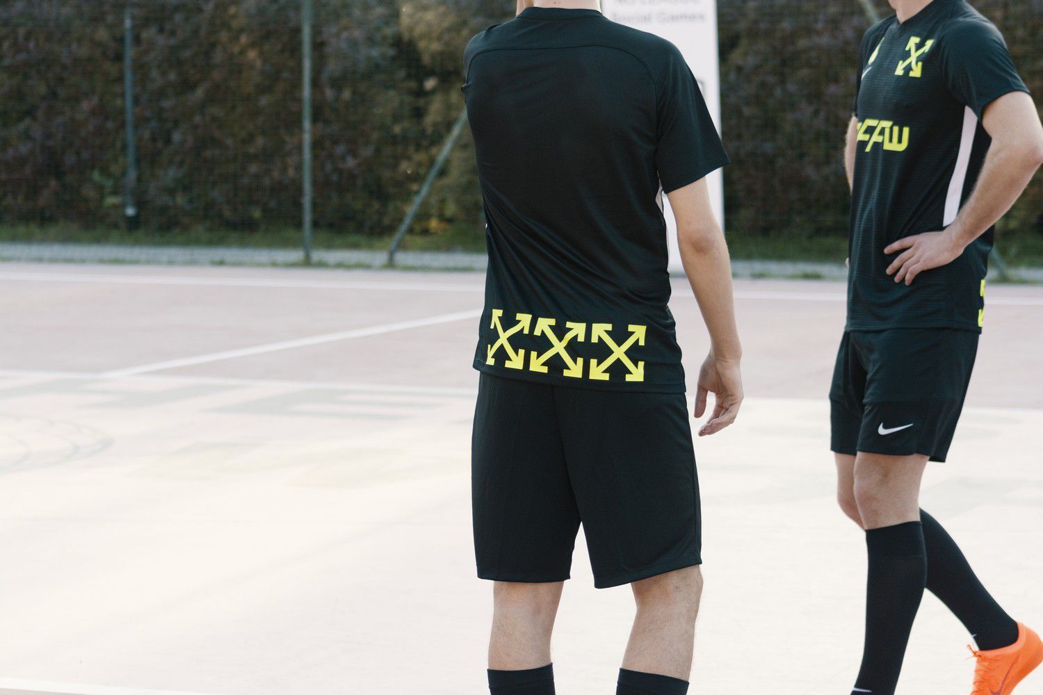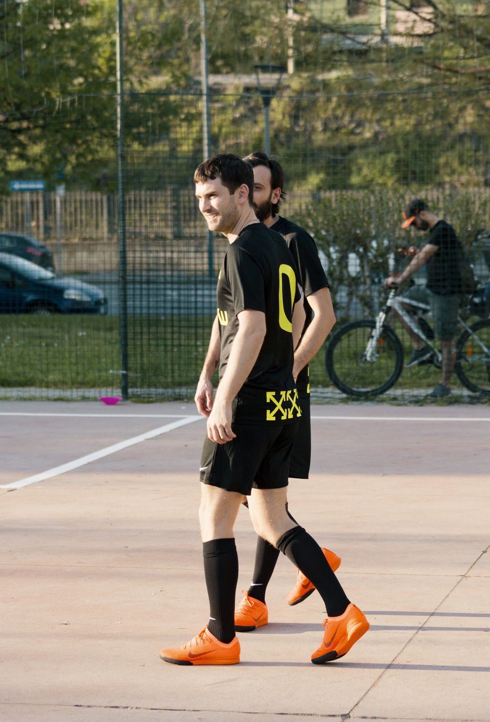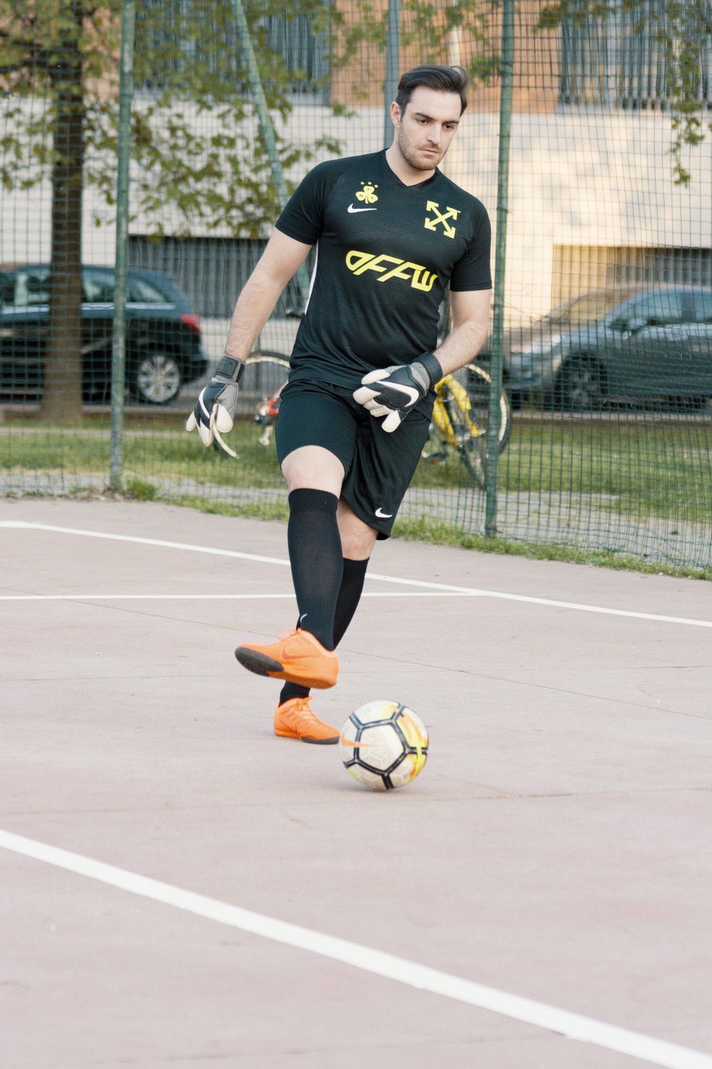 Both teams took to the field with a custom jersey made during the workshops organized by Nike at Spazio Maiocchi: blue and white for the Heron Preston team, Nike with fluo details for OFF-WHITE. The match was very tough, it ended 8 to 7 for the team of the brand founded by Virgil Abloh.