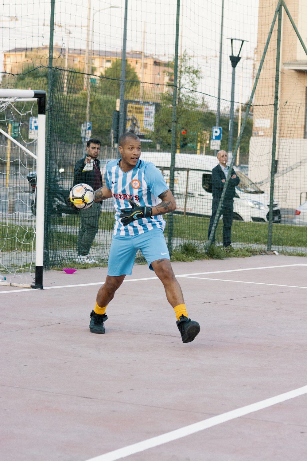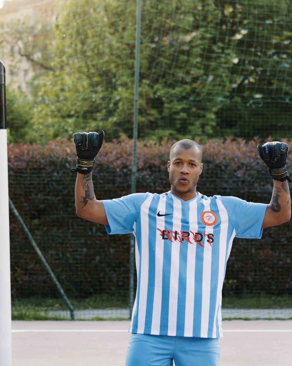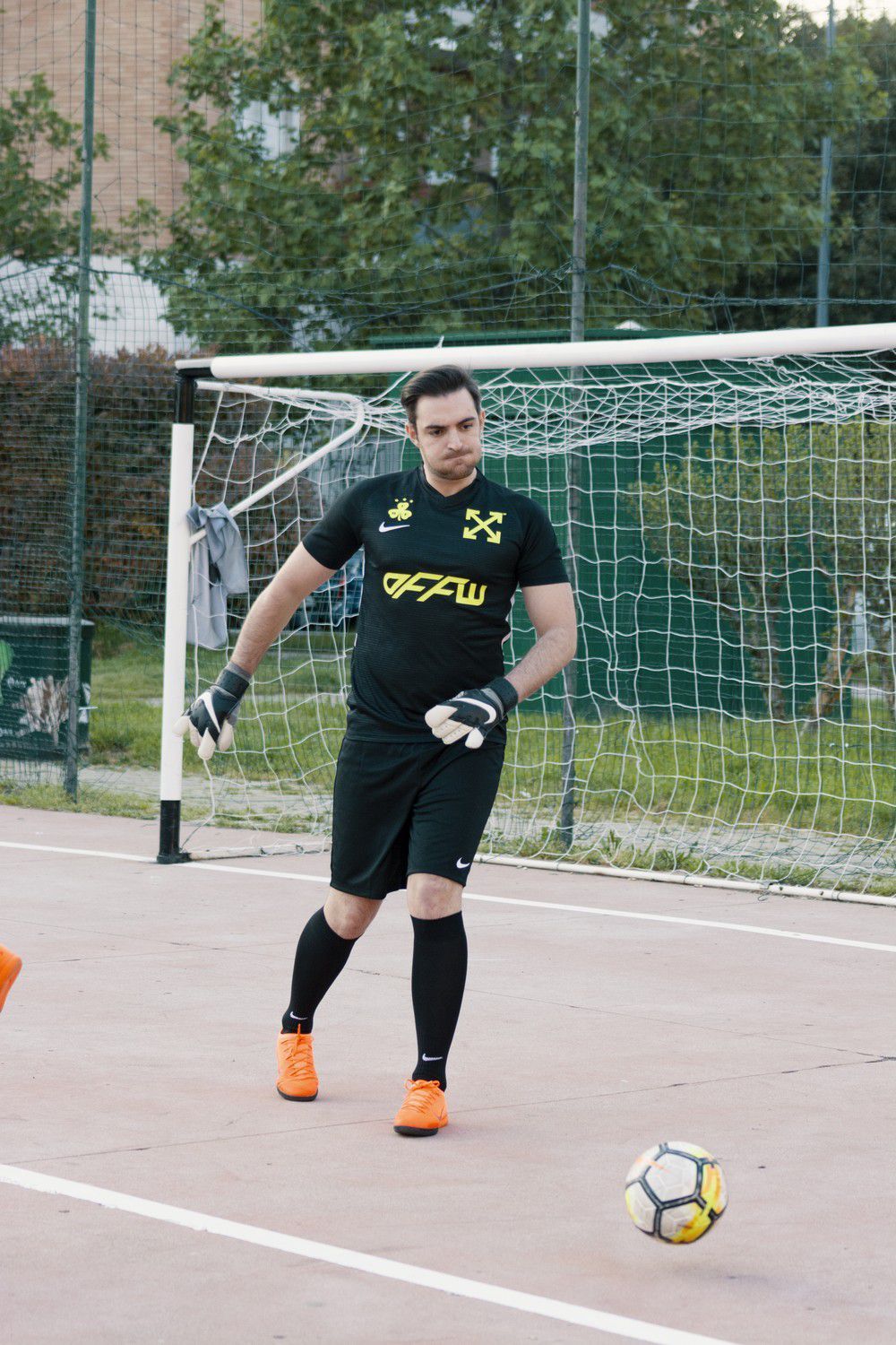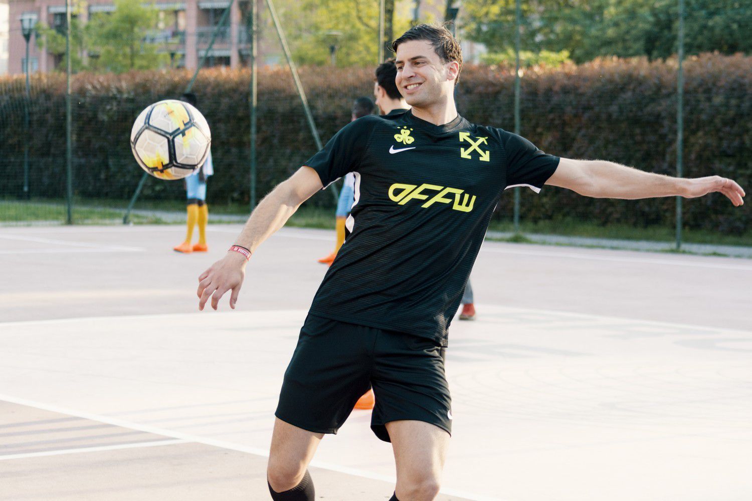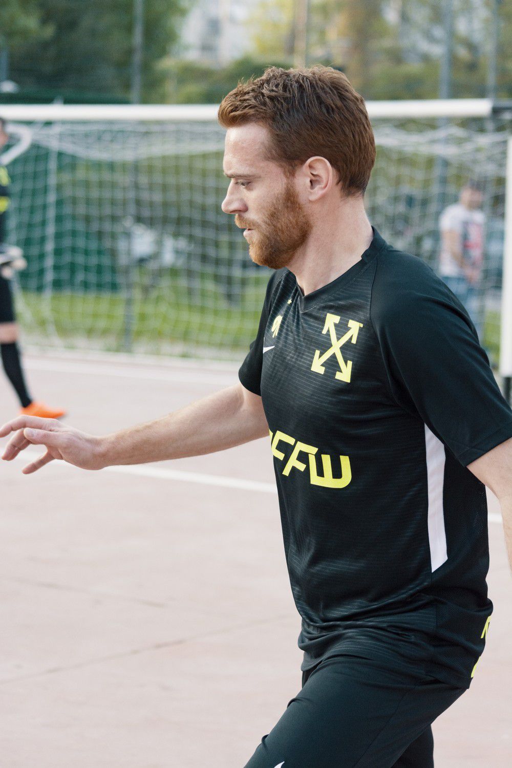 Both teams took to the field with a custom jersey made during the workshops organized by Nike at Spazio Maiocchi: blue and white for the Heron Preston team, Nike with fluo details for OFF-WHITE. The match was very tough, it ended 8 to 7 for the team of the brand founded by Virgil Abloh.
