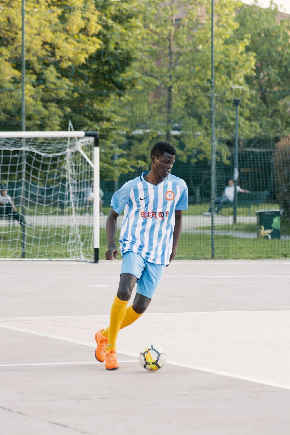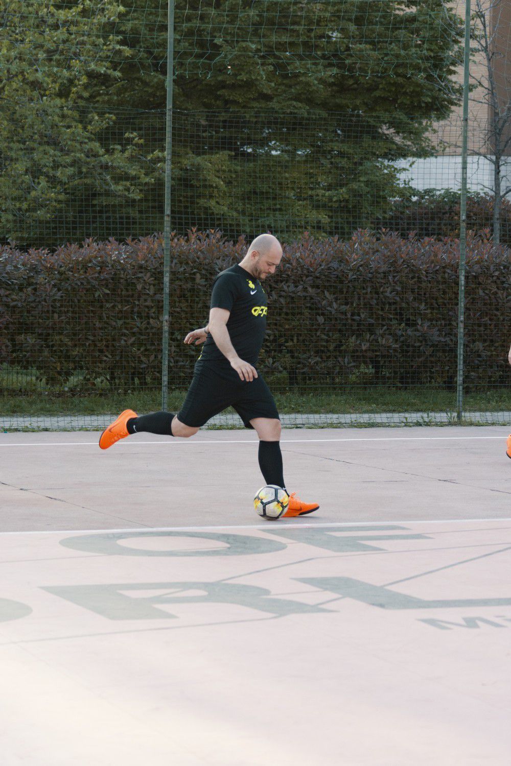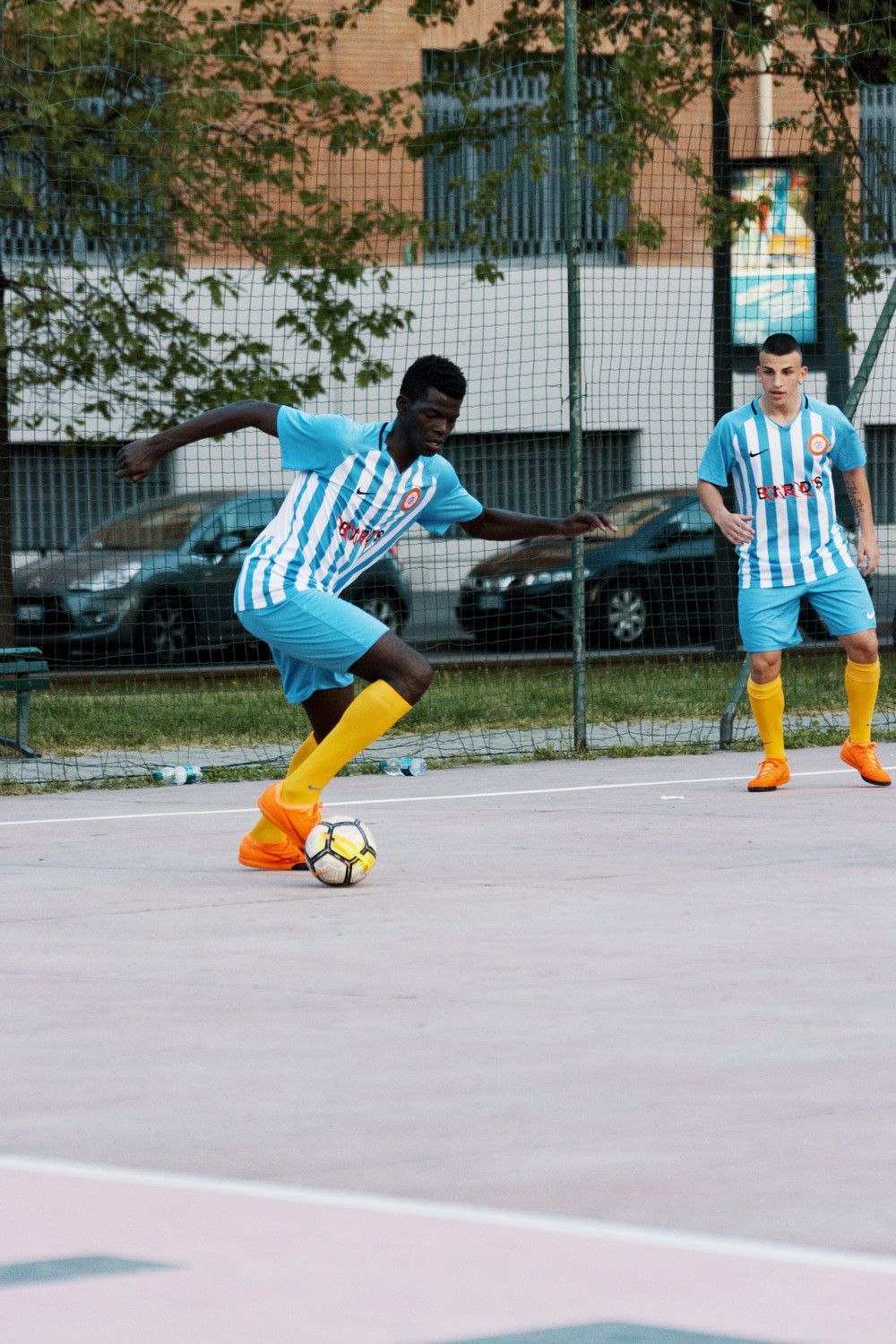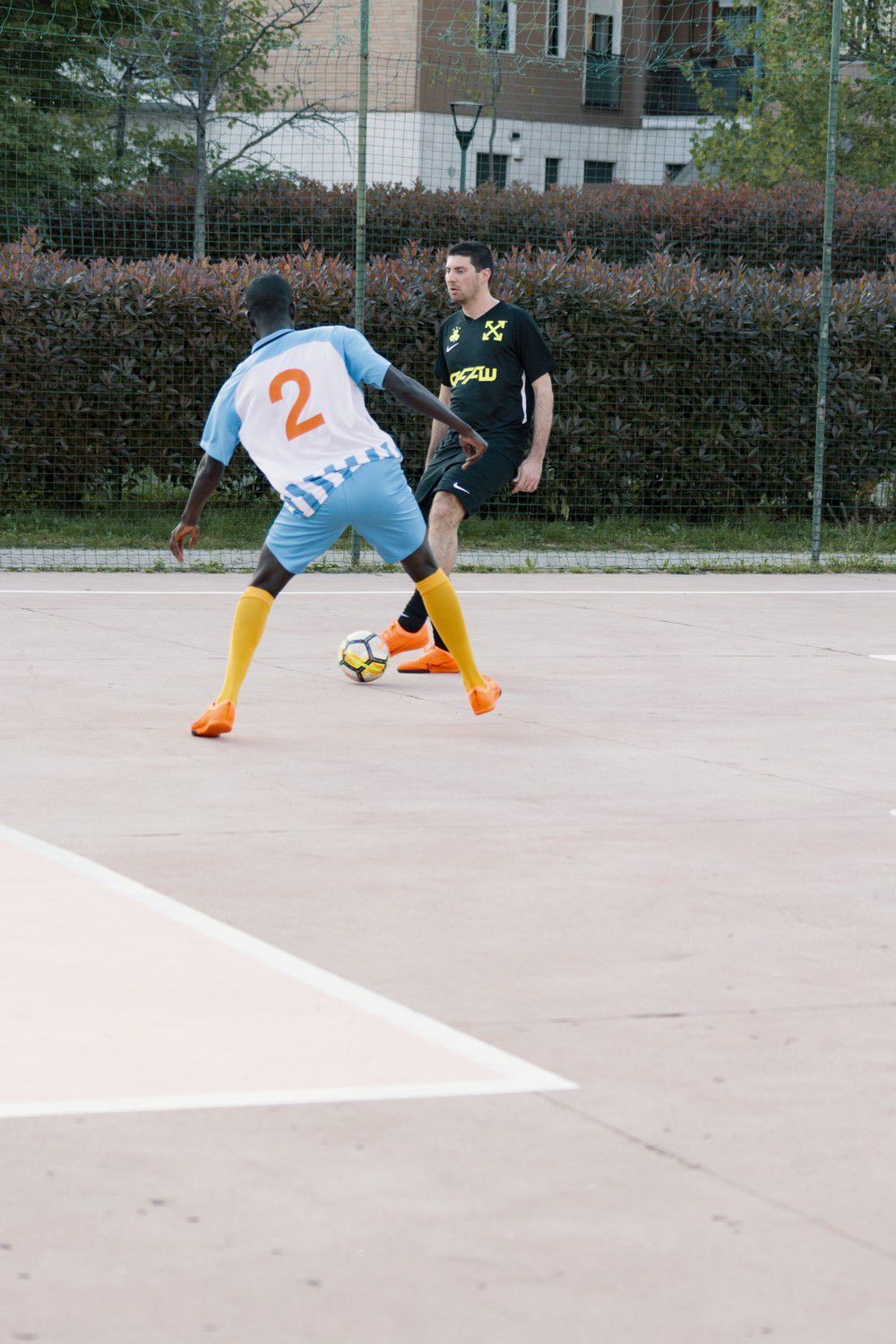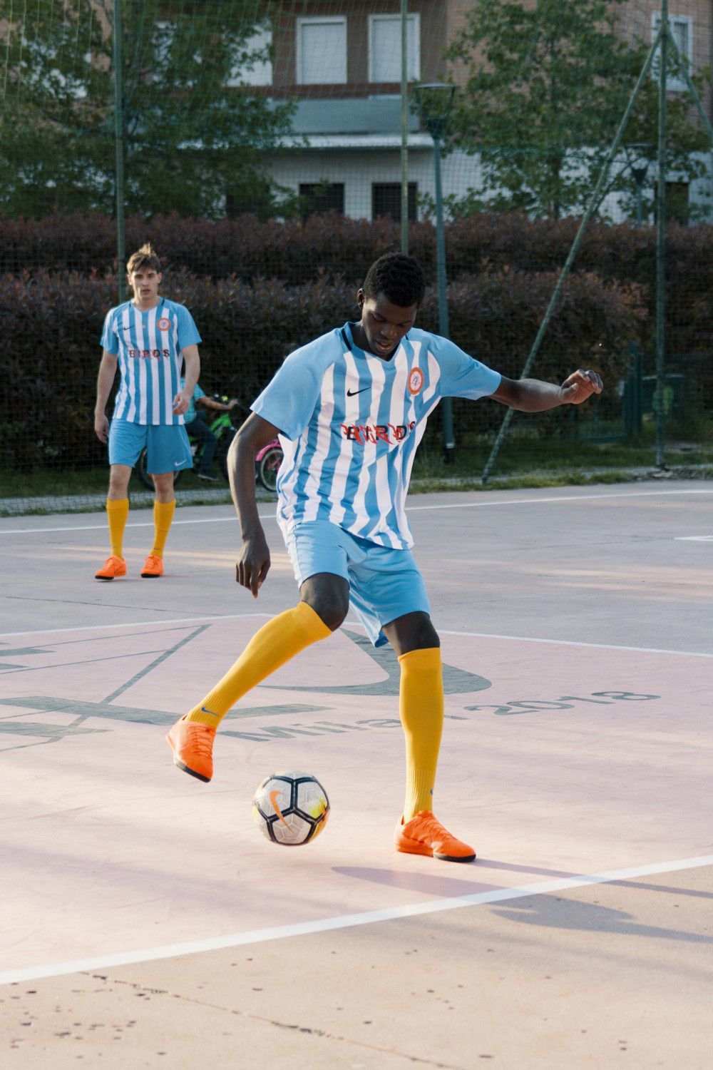 Both teams took to the field with a custom jersey made during the workshops organized by Nike at Spazio Maiocchi: blue and white for the Heron Preston team, Nike with fluo details for OFF-WHITE. The match was very tough, it ended 8 to 7 for the team of the brand founded by Virgil Abloh.