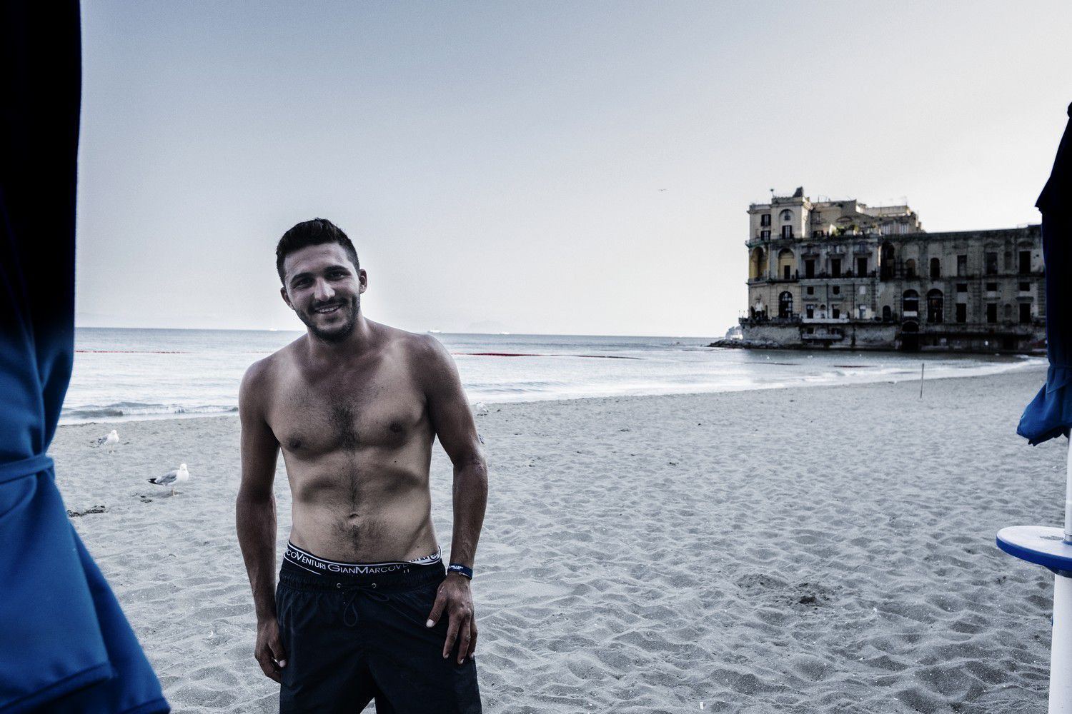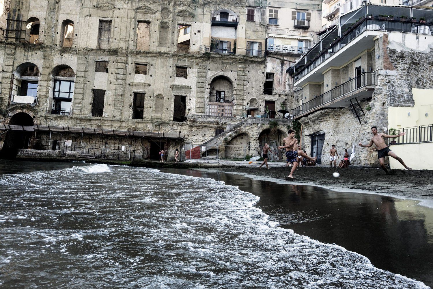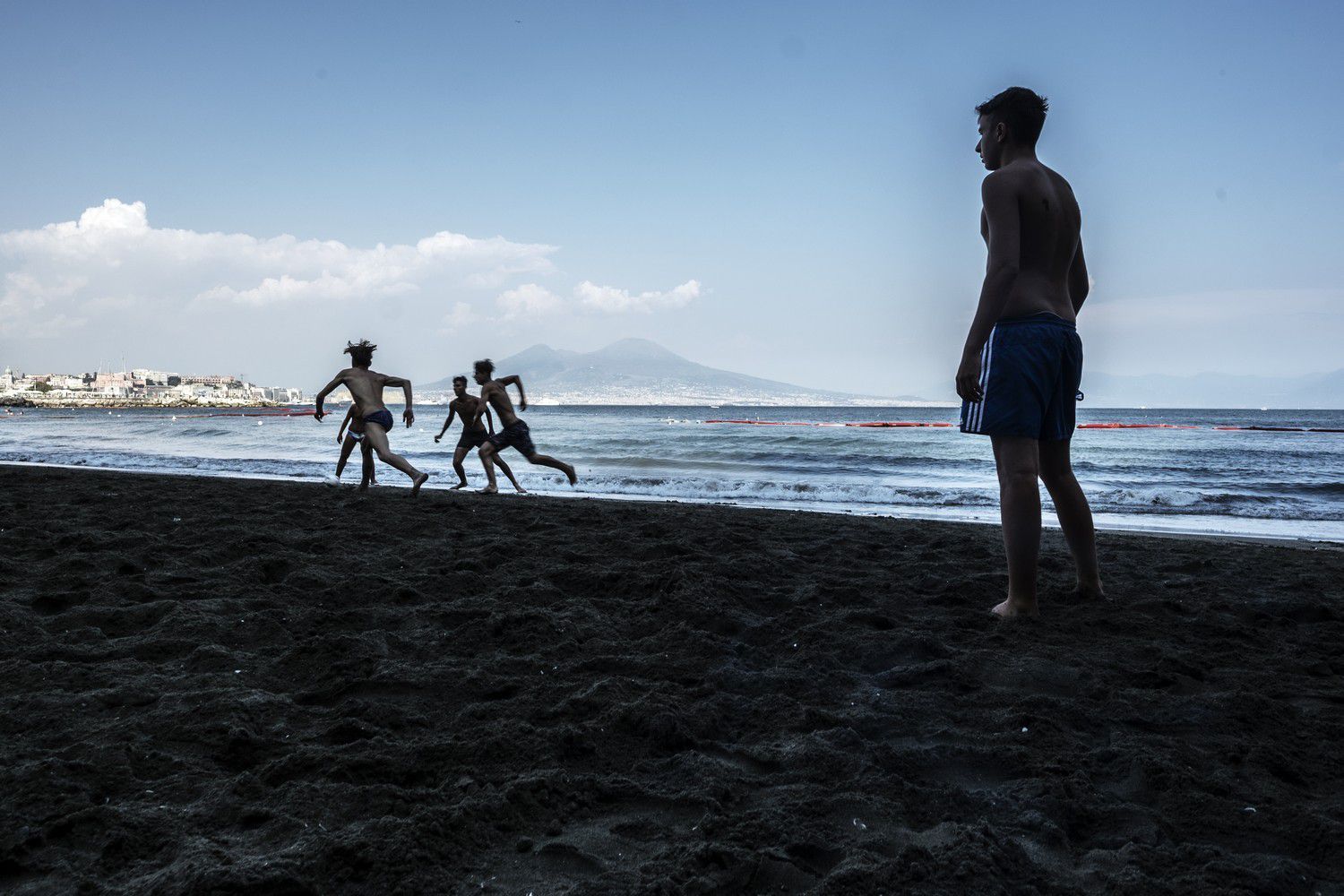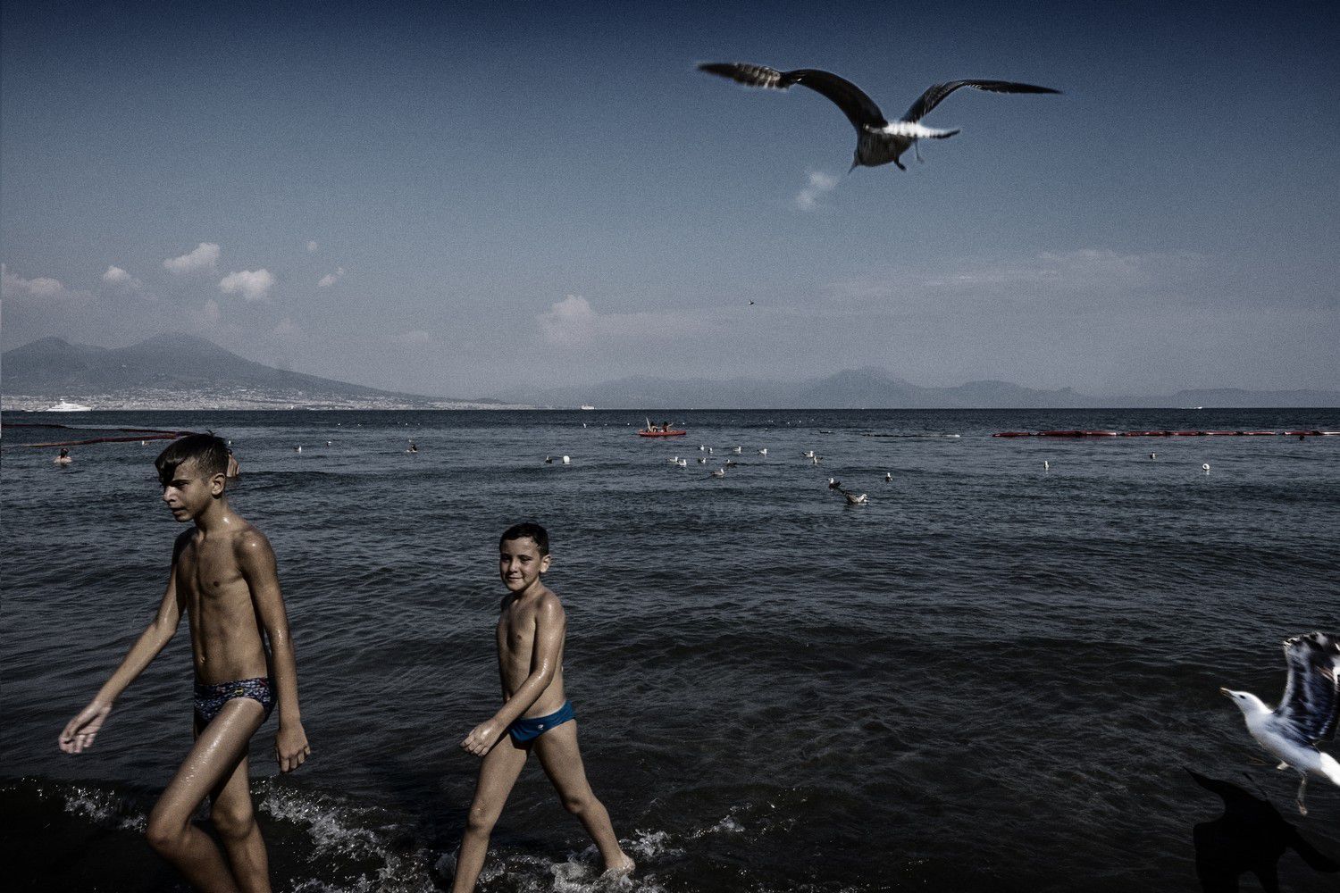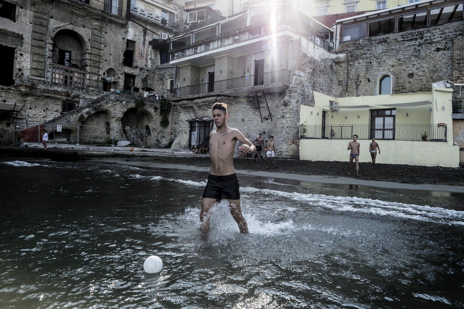 From Posillipo to the Spanish quarters, in the daytime in August, walking around Naples is almost impossible. The city is alive only at night. Meanwhile, the sea turns from being a romantic frame to a solution to escape the heat. Bathing is an intimate and deep way of experiencing the city, a privilege that only Neapolitans can benefit from. Immersed in the sea, the perspective on the city is overturned: the lights of via Posillipo, the alleys and Vomero become the focus of the town. Ilaria D'Atri has explored some historical sites of the city linked to the sea and the nightlife showing Naples in August: from Lido Pola on Coroglio beach to the baths Elena, an establishment inaugurated in 1840 where kids spend their days playing football in the shadow of Donn'Anna Palace.