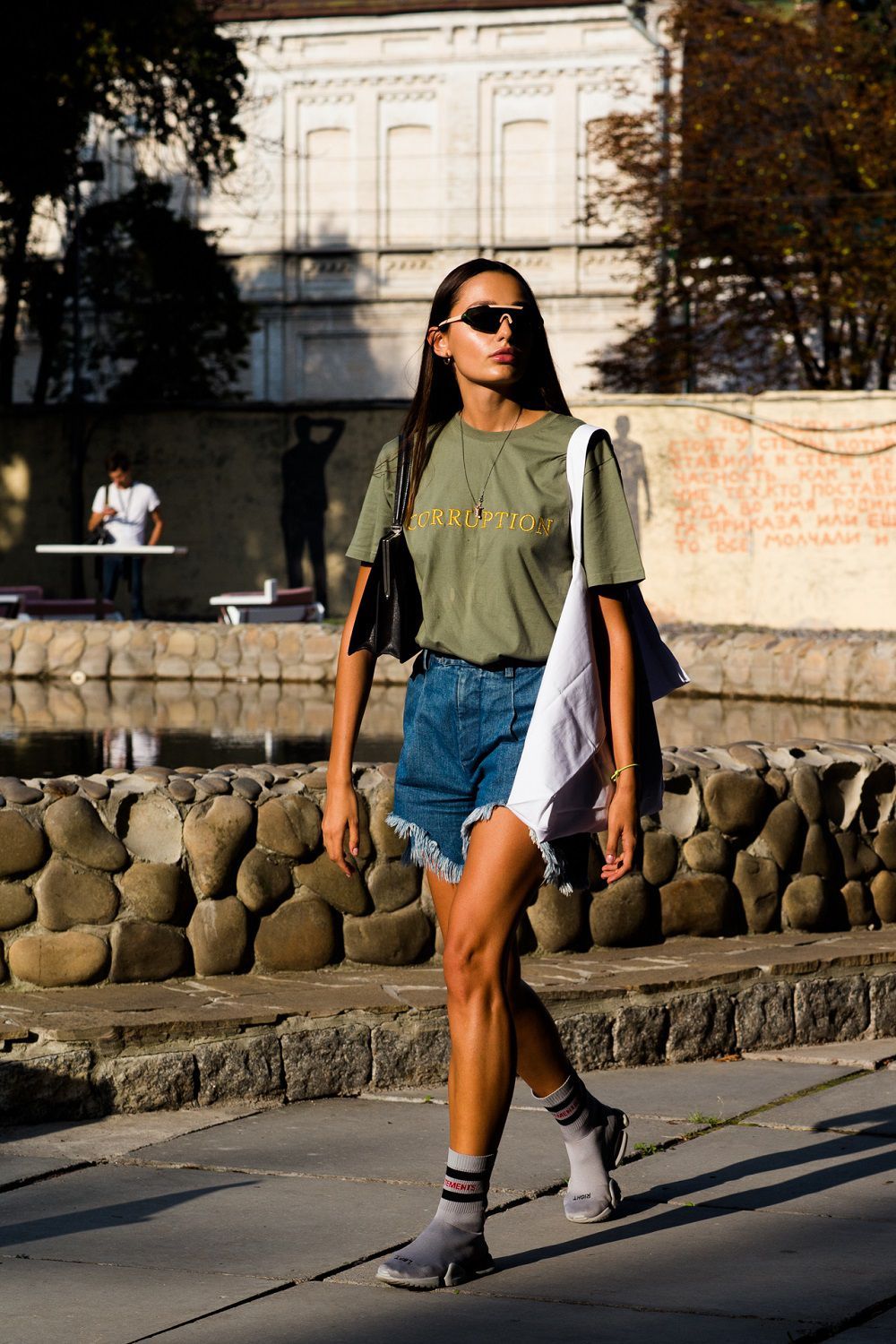 Ukrainian fashion has definitely exceeded our expectations. This year, the city of Kiev has been populated by some of the hottest trends of the summer: wrap-around sunglasses, short pants for cyclists, and then Balenciaga boots, artistic make-up and geometric accessories.
