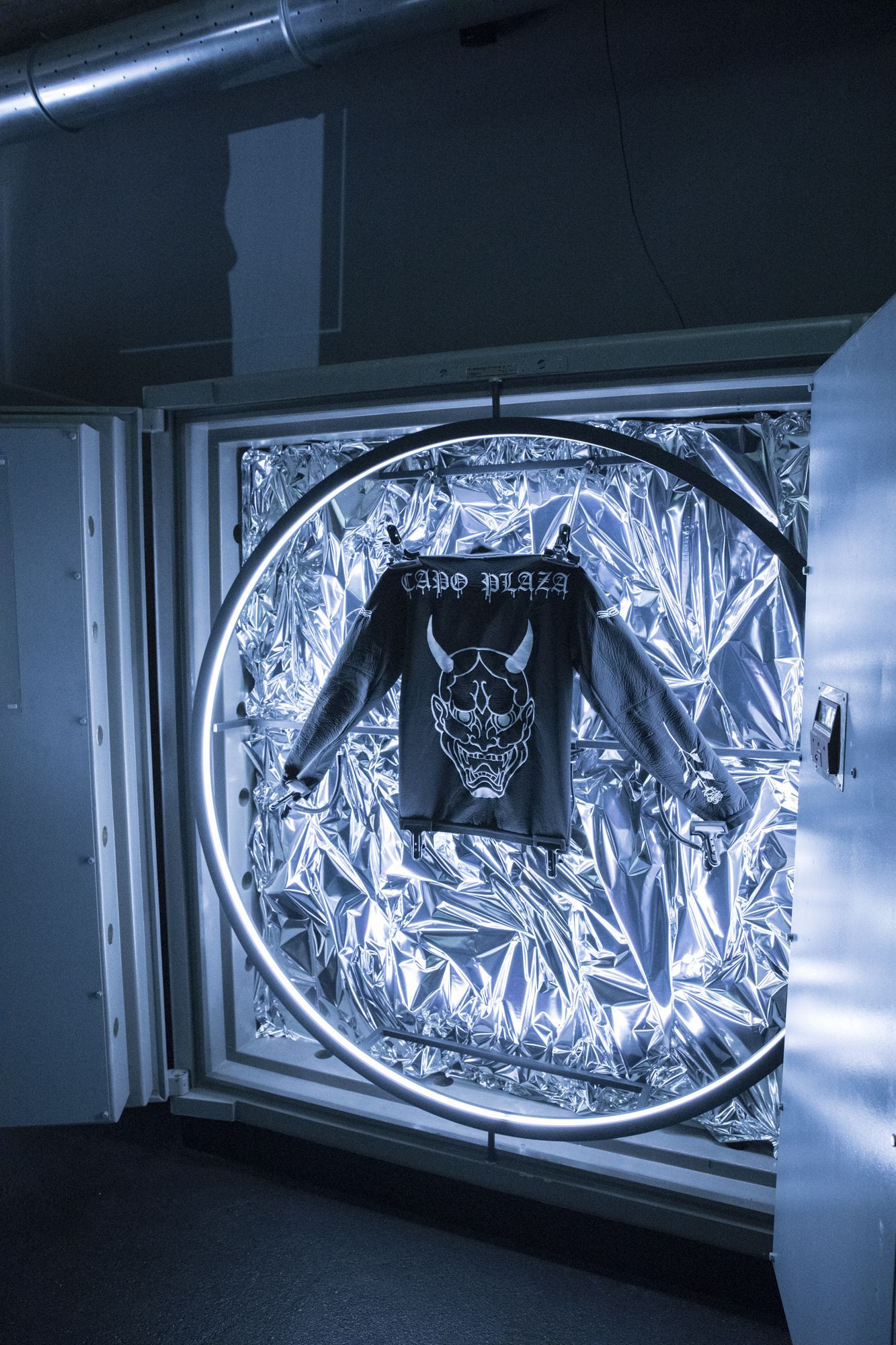 Even Capo Plaza has opted to redesign the jacket, to which Virginia Arcaro has decided to apply symbols that tell the story of the young rapper; a demon on his back is the wish that the photographer wanted to leave at Capo Plaza.
