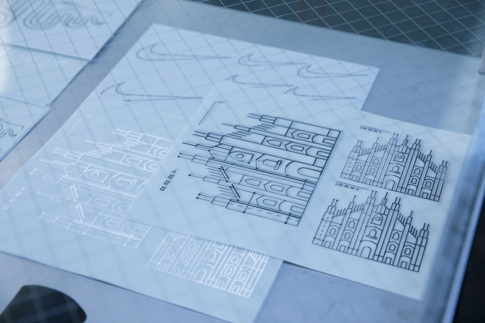 The journey inside the Tech Pack world starts with an installation that invades the entire Nike Lab store in via Statuto 18: the items of the collection run on a mechanical roller, passing through a scanner that reveals all the details. It is therefore possible not only to see and touch the product, but also to fully understand its characteristics. Downstairs there is the real customization workshop, where you can customize one or more Tech Pack items (purchased directly at the Tech Pack Lab or at other stores). The emblems of the city of Milan - the Biscione,the Duomo and the Madonnina - are some of the screen prints that can be applied on Tech Pack items; there is no shortage of Swoosh in different colors and sizes, and of the encrypted numbers that are one of the hallmarks of this Tech Pack collection.