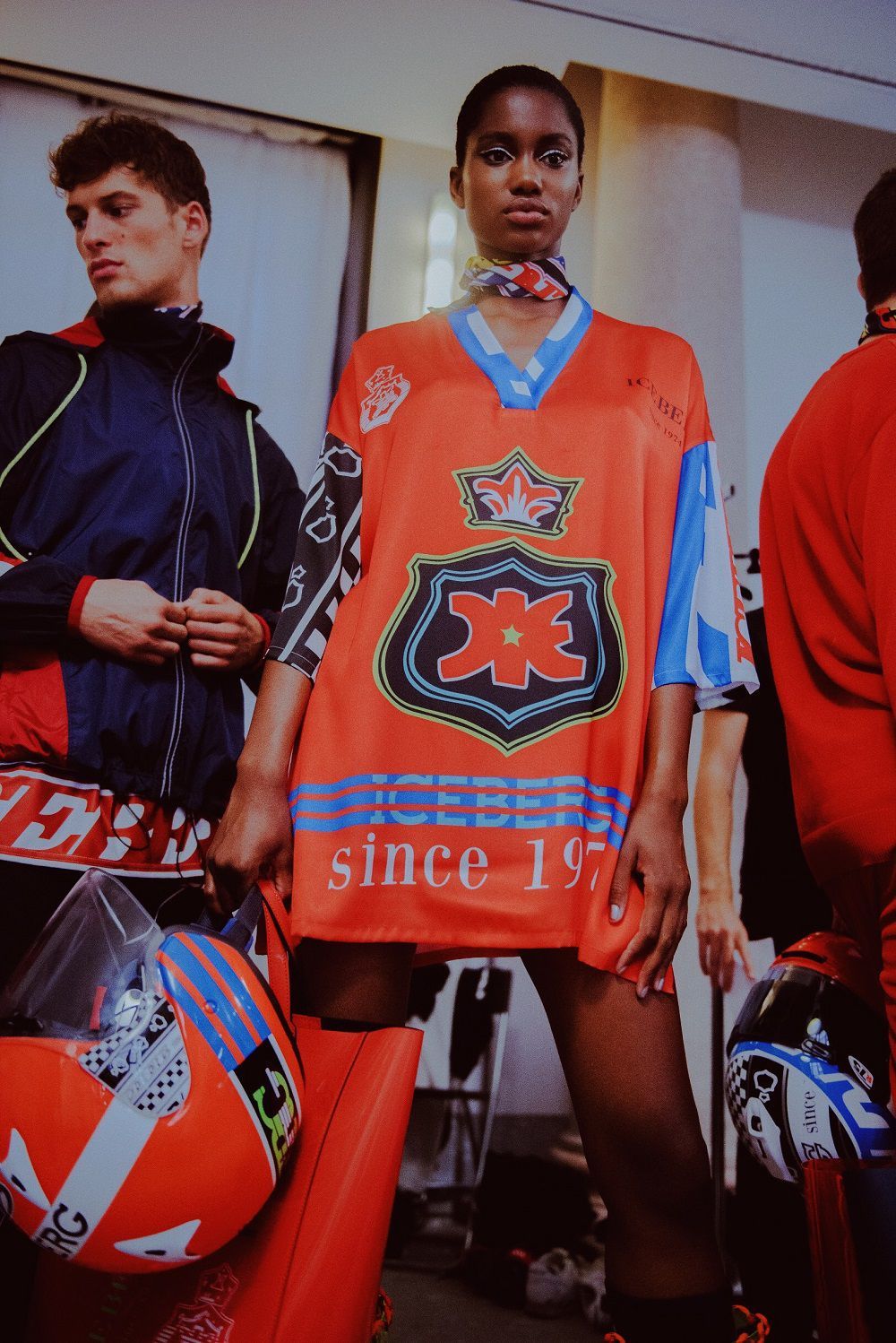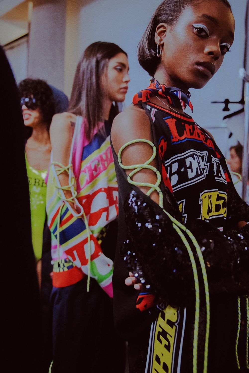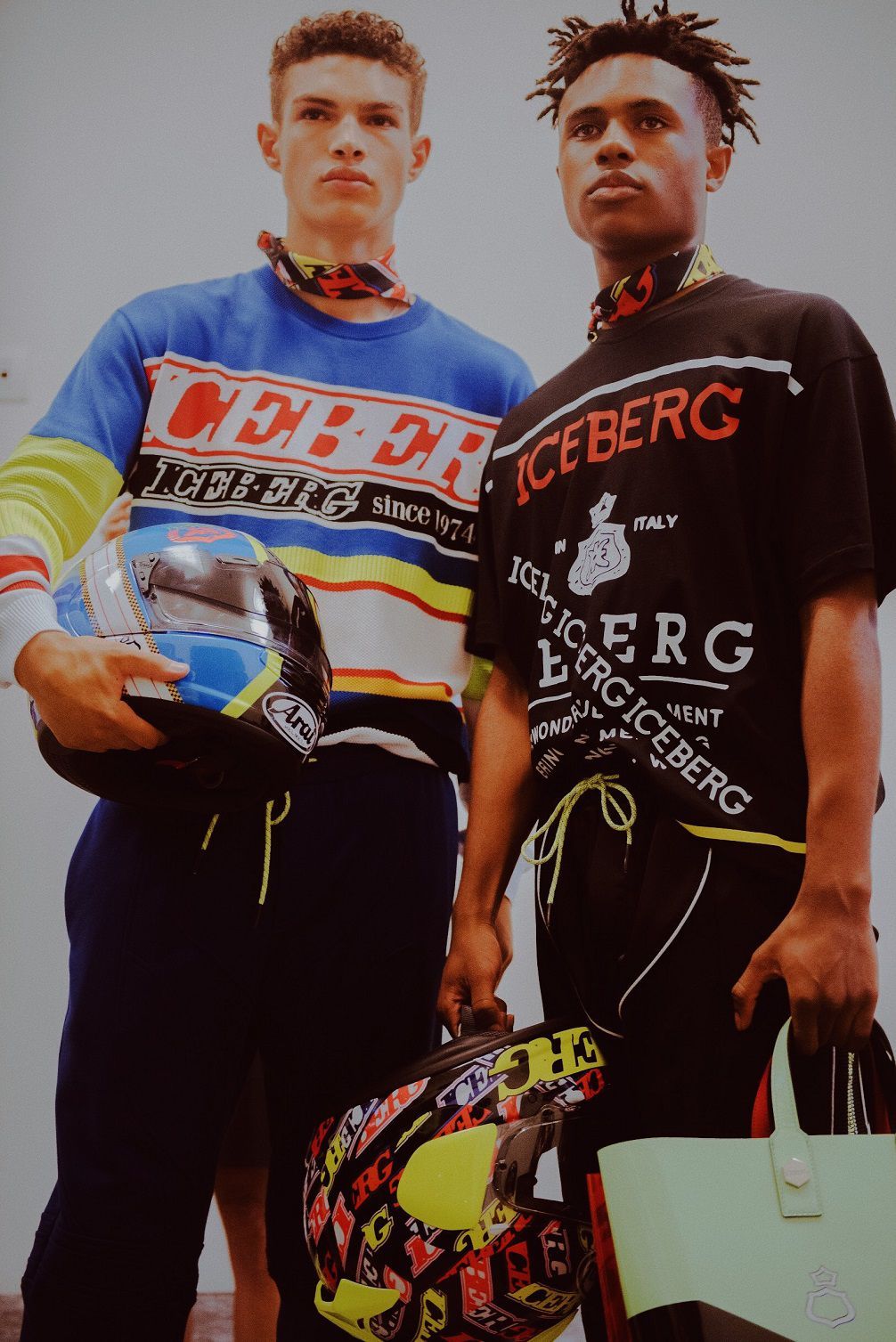 Motors, colors and lots of adrenaline yesterday afternoon at the ICEBERG show. The brand presented its SS19, a triumph of super sexy garments, adherents and with logos, symbols of the roots of the Italian motor valley brand.