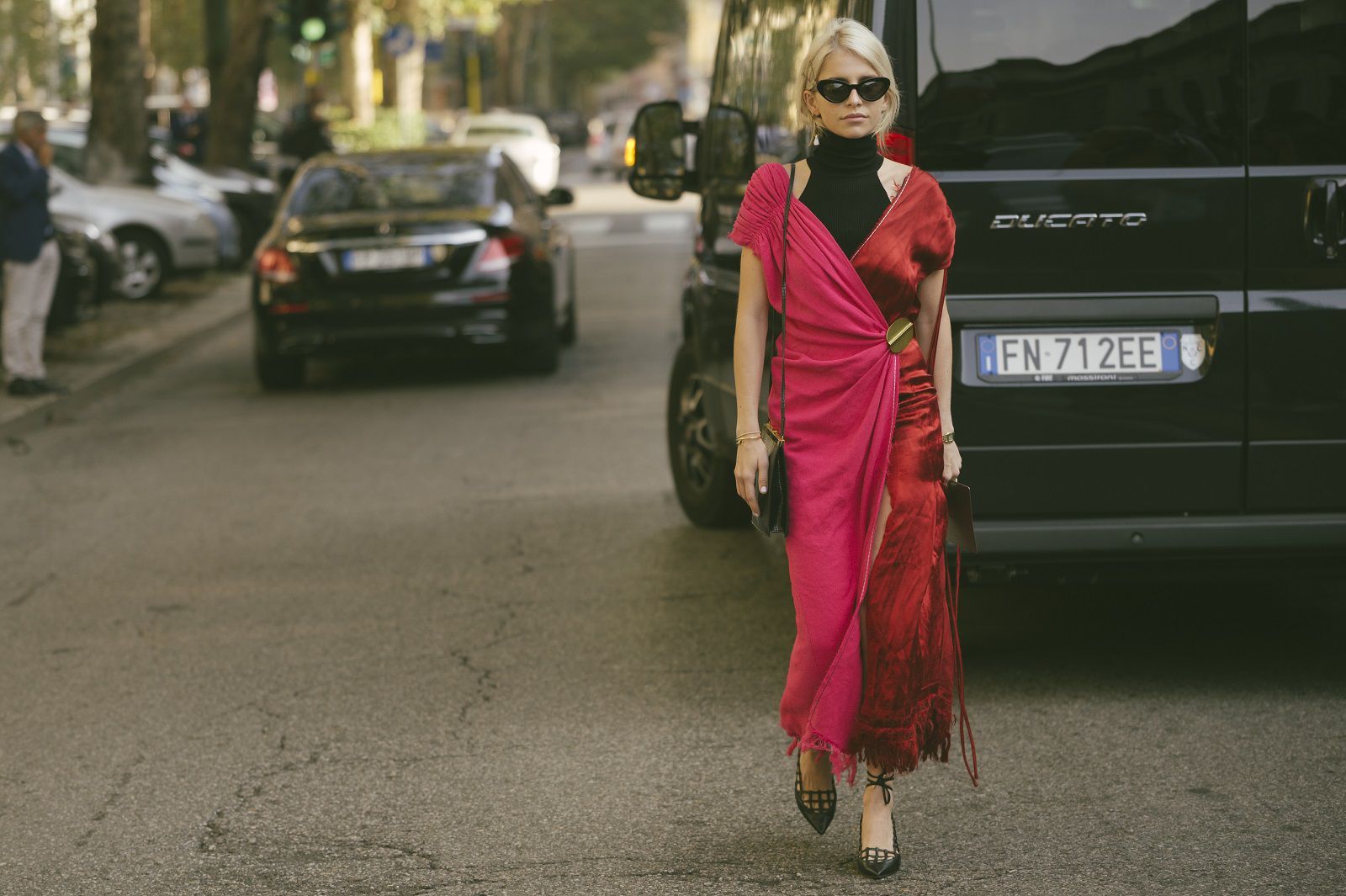 But one last focus on Italy needs to be done. Its whimsiness, its love for fancy shirts and improbable accessories elect it every fashion week one of the cities with the most curious, innovative stretstyle and everything to copy.