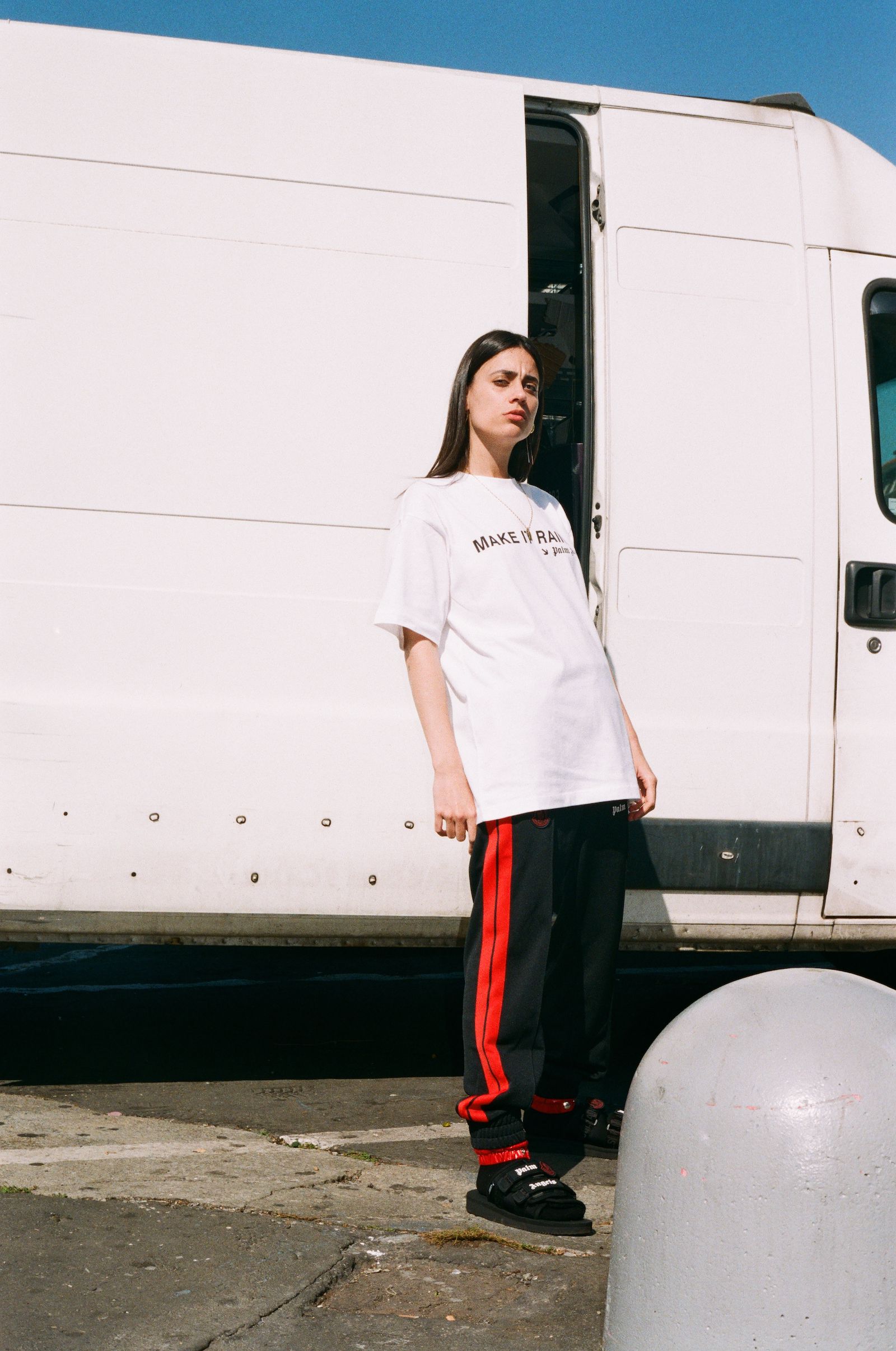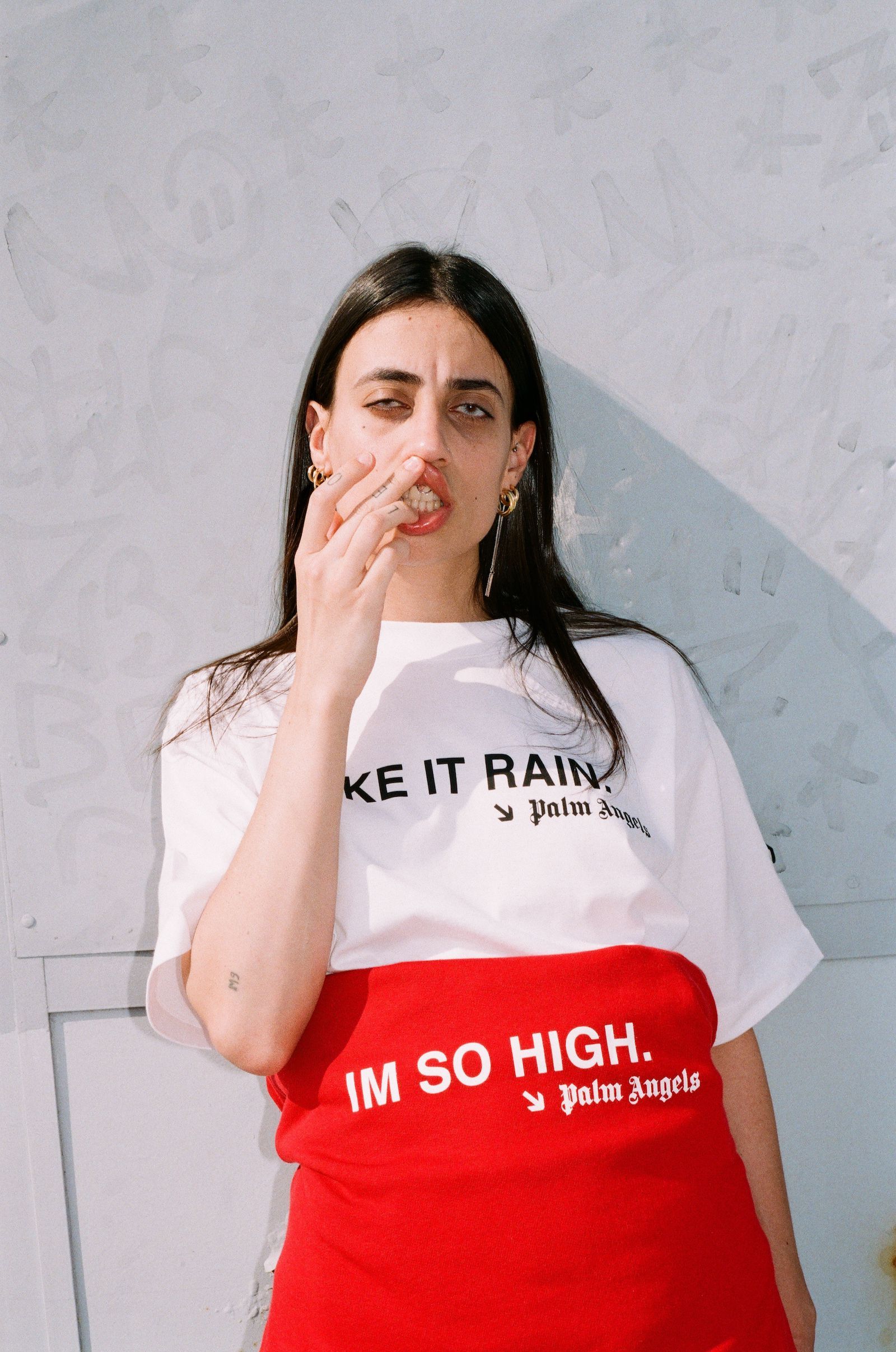 Conceived as a gift shop for the museum of contemporary creativity that is Moncler Genius, with slogans devised to go viral, they and the logo’s themselves become the protagonists and take on the role of statements becoming an integral part of a true merchandising operation. The spirit that animates the collection is decisive and graphic, made to combine as the modern, frenetic, metropolitan style requires. The spirit is versatile, a mix 'n' match of influences from pop-grunge-rock that can take the most varied of forms and adapt to the most diverse situations. Casual and provocative, this remix of influences gives life to a kaleidoscope of sensations that is the Moncler Genius Palm Angels collection.