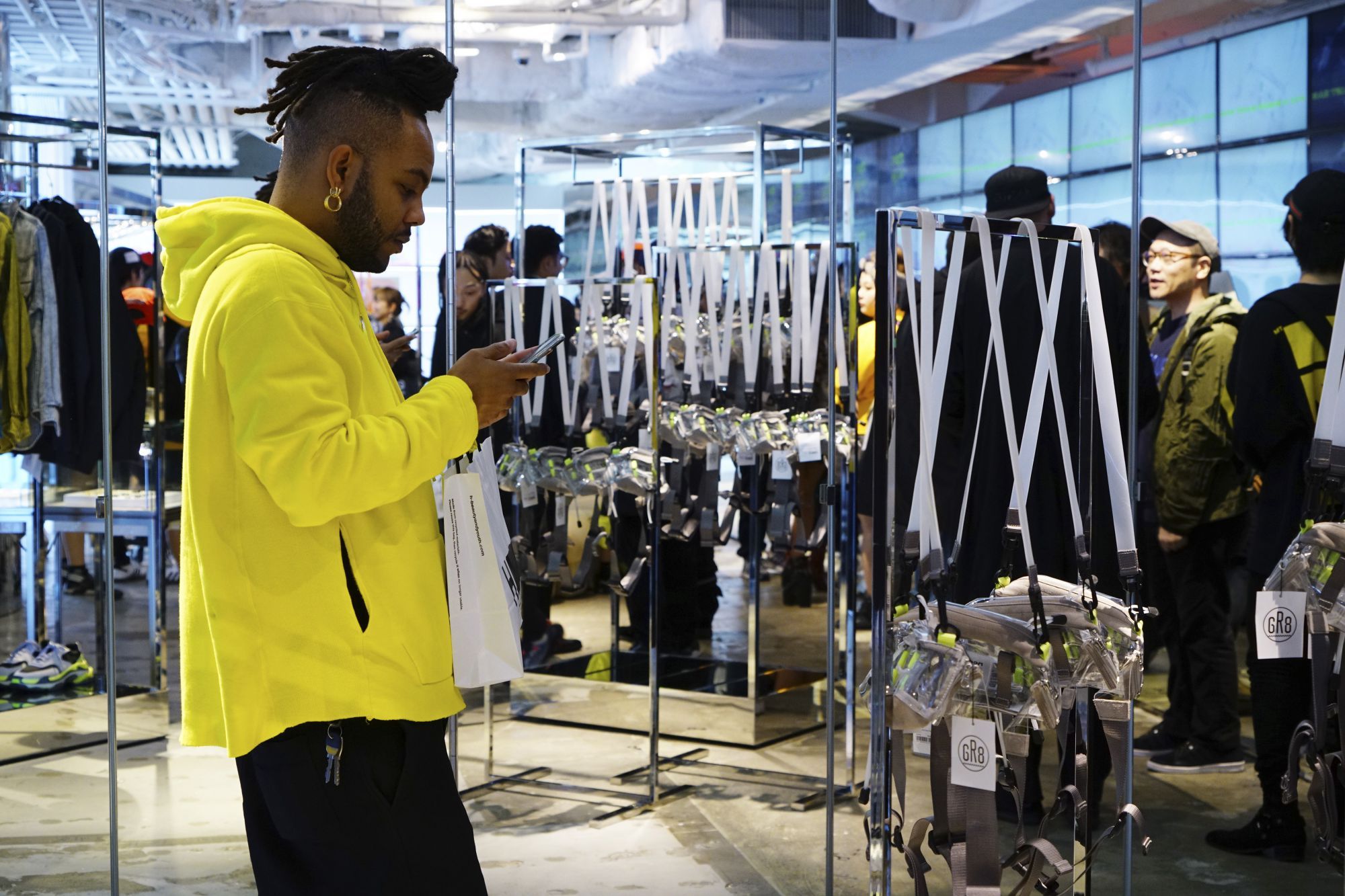 One of city's most famous and hyped streetwear stores, GR8, was chosen as the location for the launch of the collection of pvc and suede waist bags created by nana-nana in collaboration with nss magazine.