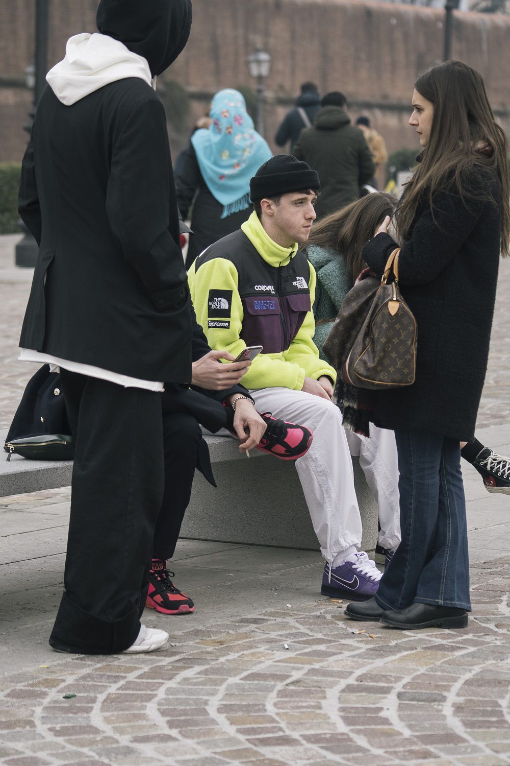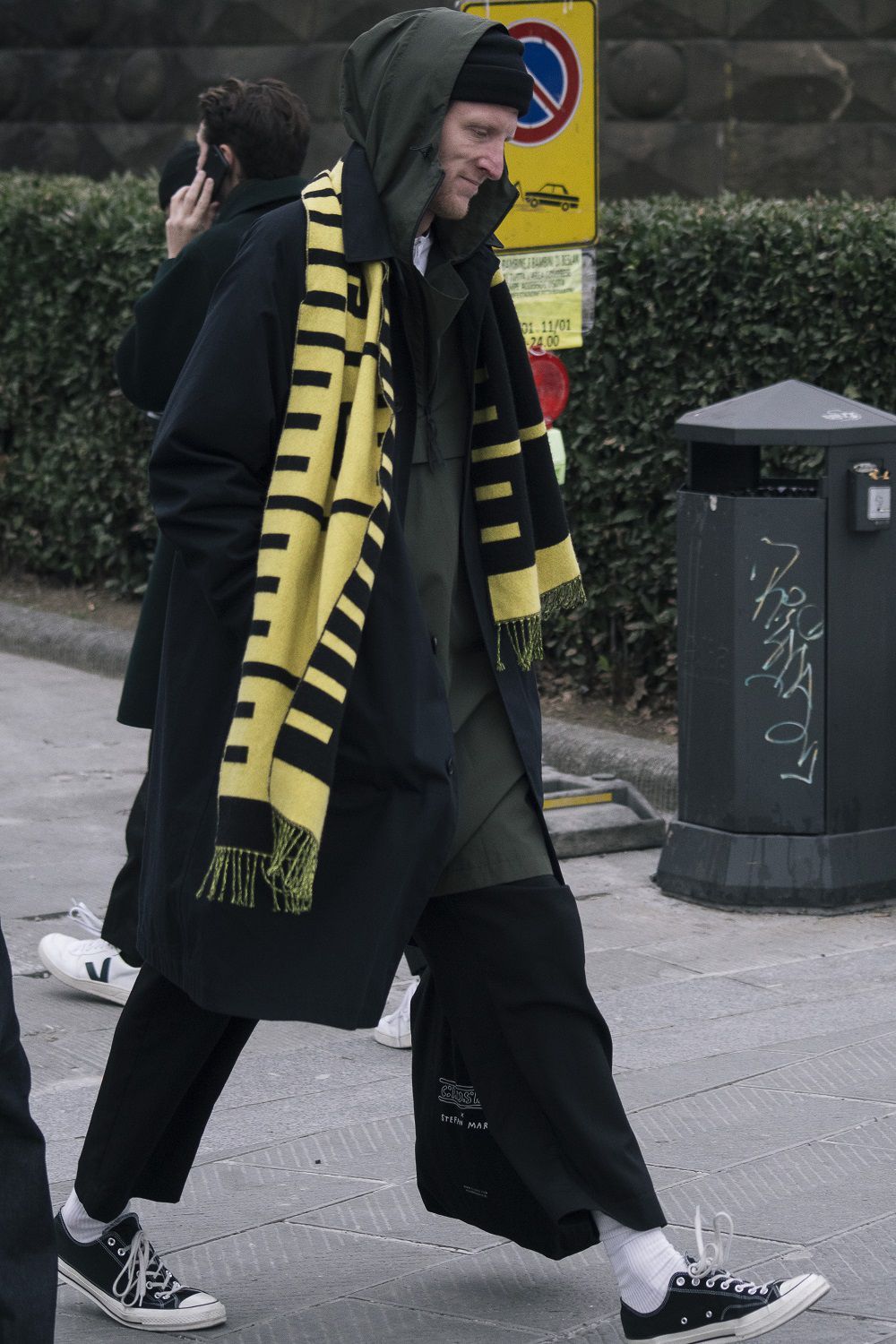 A tribute to the Italian man's elegance, to the fashion that changes and revolutionises. The Pitti Immagine is not only pocket square and shiny pointy leather shoes, it is also a spectacularization of that Made in Italy that often stands out from the double breast stereotype and embraces the idea of being able to coordinate sneakers and suit, fashion & sport, mixing new and iconic brands, from Prada to Carrera, from Nike to Stone Island.