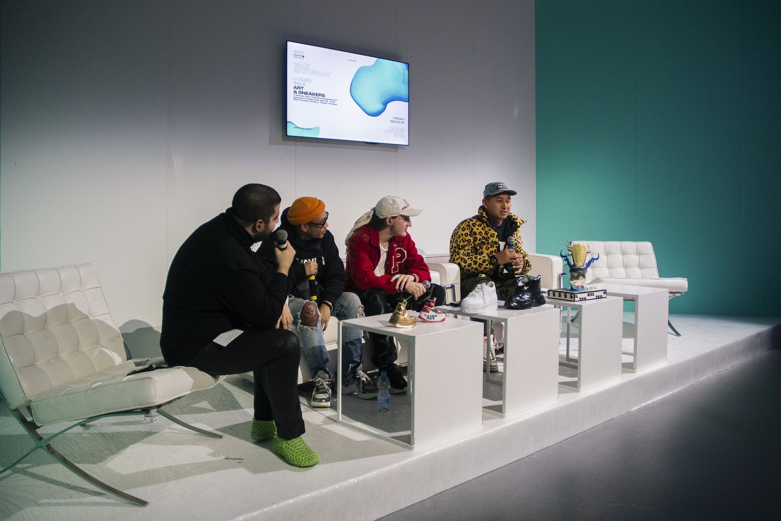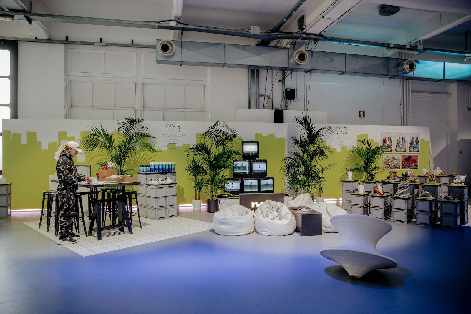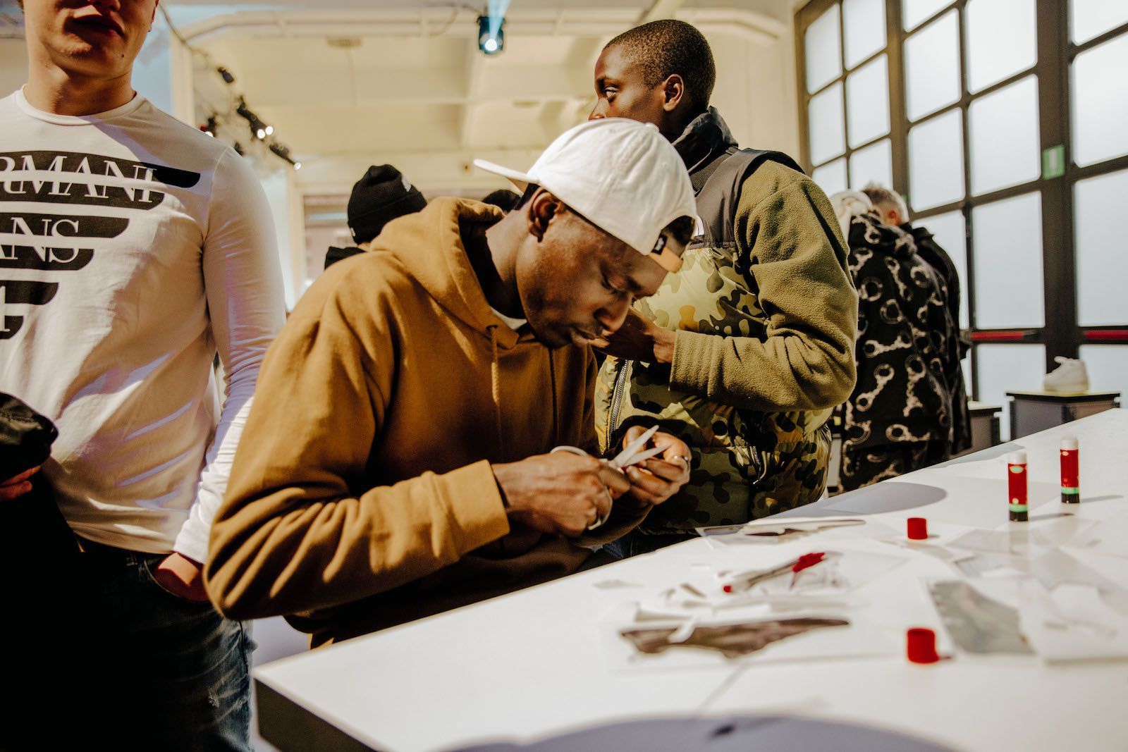Over the weekend the second edition of White Street Market took place in Milan gathering the many aspects of street culture under one roof. A key element thereof has always been sneakers and for this edition nss set up a specially designated nss kicks corner to showcase some talented artists within the field and also provide visitors with the chance to participate in a workshop led by DCJ Snkrs. The artists included Agent 33 from France who showcased five hybrid models he designed by disassembling and then sticking different sneakers parts. The result is a Frankenstein sneaker made of different models. The second artist was Rudy Lim who came from Korea to show off his incredible deconstructed sneakers, his creations anatomize sneakers, he unsticks them, reveals their different layers and materials and, as if they were stuffed bugs, he separates the different parts into display cases resulting in a 'natural museum' effect. Working with some of the most hyped silhouettes, among them Sean Wotherspoon’s, Balenciaga's and Air Jordan’s. The final artist was none other than the internet sensation Stomper Haus who’s been blowing up on Instagram with his sneaker caricature illustrations. Pushing his aesthetic forward Stomper Haus has now started making sculptures of his designs to give a 3D manifestation of his work. The nss kicks area blossomed into a creative hub during the 3 days where visitors, artists, and heads all gathered in their love for sneaker culture.