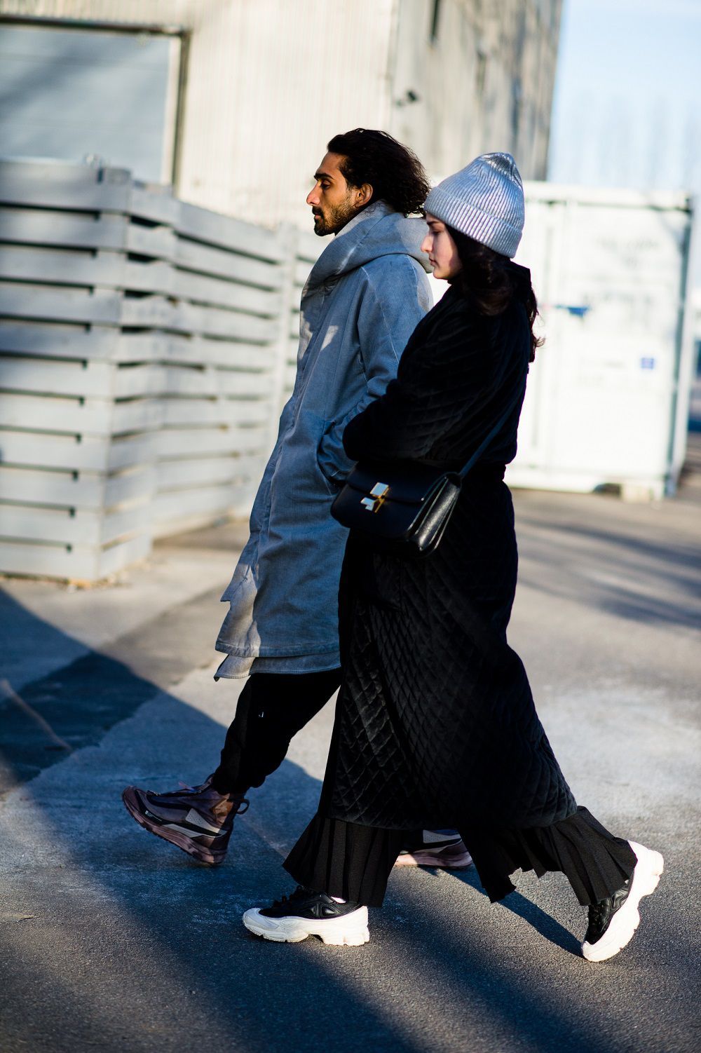 The Parisian mood of mfpen is a triumph of black and white stripes, asymmetric and basic Converse total black; Les Deux, on the other hand, pays homage to the Nordic man in the colors and combinations of a traveler's look, an adventurous man, a relentless inquisitive and experimenter. The Ganni woman more than anyone has captured our attention thanks to the mix of fabrics and lengths that never make her trivial, urban graphics and feminine voilants combined with men's suits.