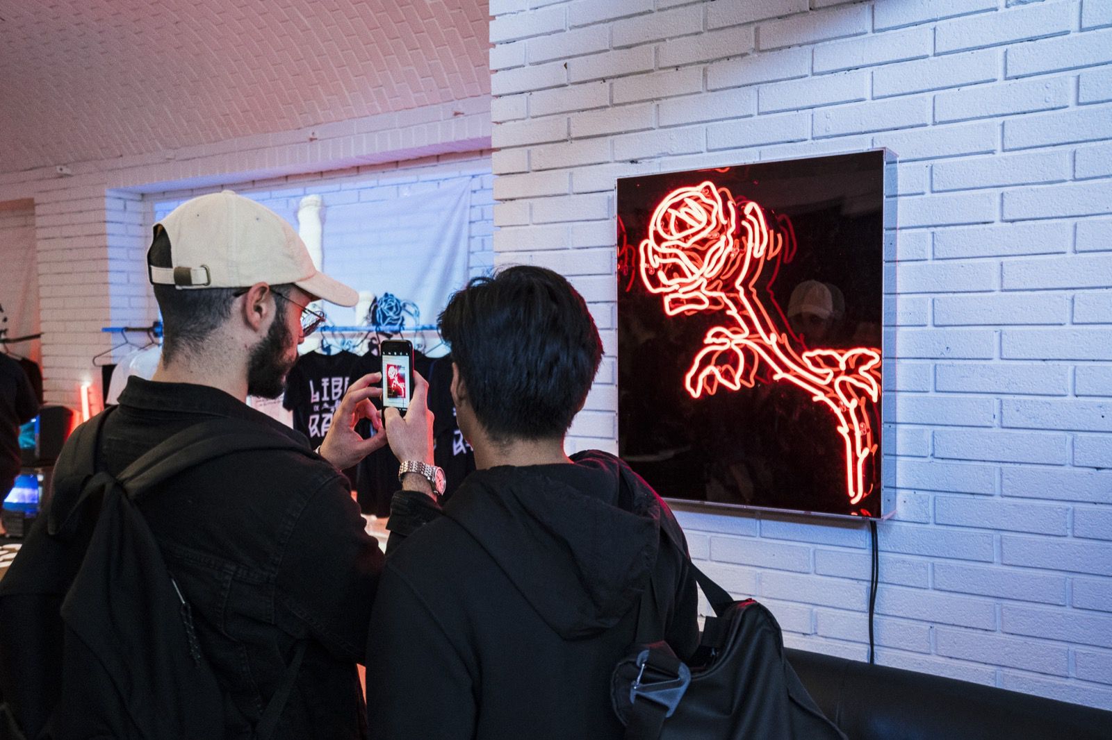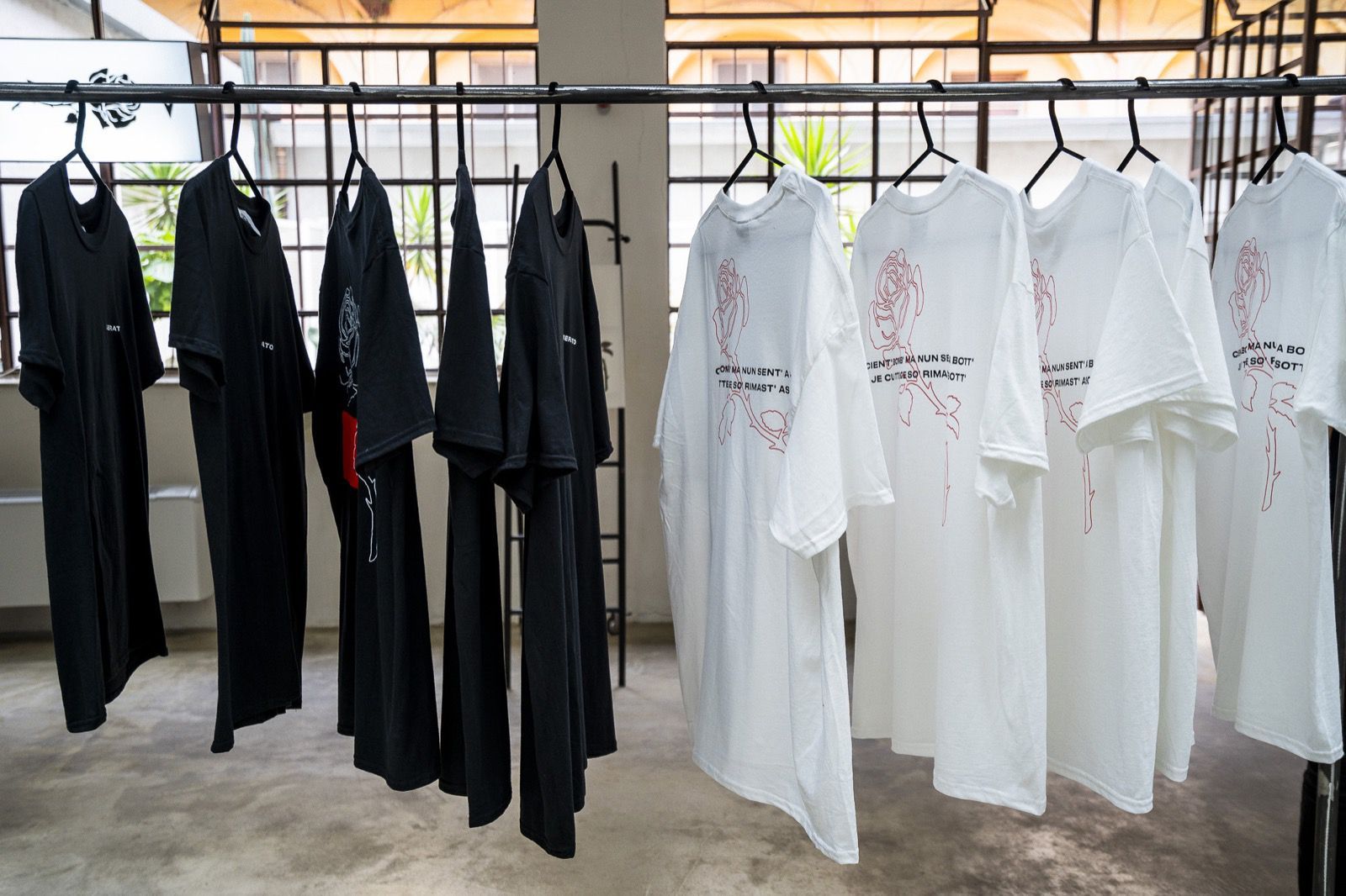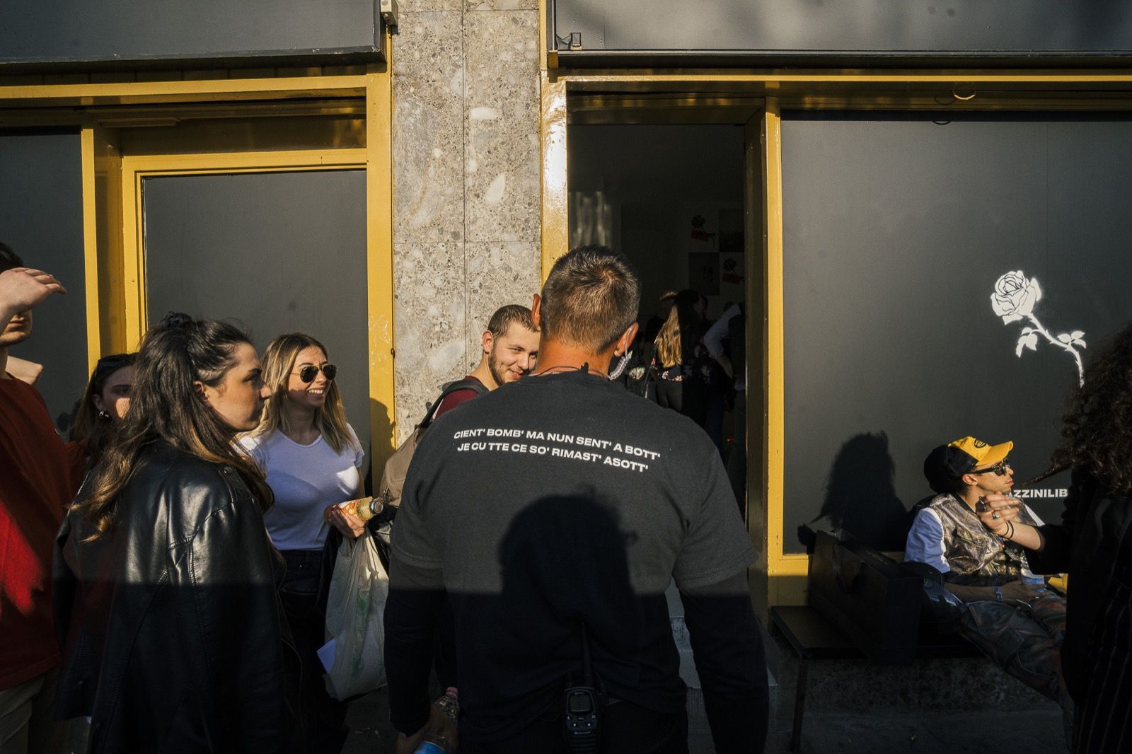 Two events which were more than a classic pop-up store but a dip in the visual imagination of the Neapolitan artist: the first in Milan at the Futura space in front of the Naviglio Pavese, the second in the heart of the Quartieri Spagnoli of Naples at La Casaforte S.B. The rose - the symbol of Liberato - was the main protagonist of minimalist and arty spaces, in which the CD and the vinyl, the t-shirts, the sweatshirt, the posters, the beach towel and the "Liberato set" were sold: papers & filters, grinder, clipper and case. The artistic direction of the two events was taken care of by RM and while the production by nss factory.