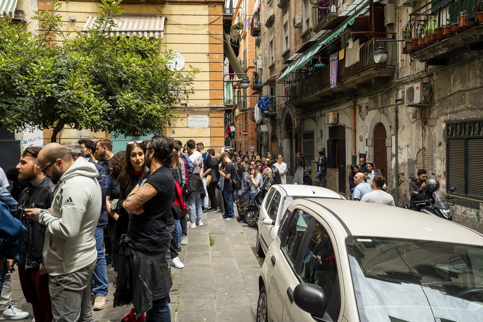 Despite the announcement was posted on Instagram just a day before, the crowd were massive, with lines of fans waiting to enter into the romantic universe of the Neapolitan artist.