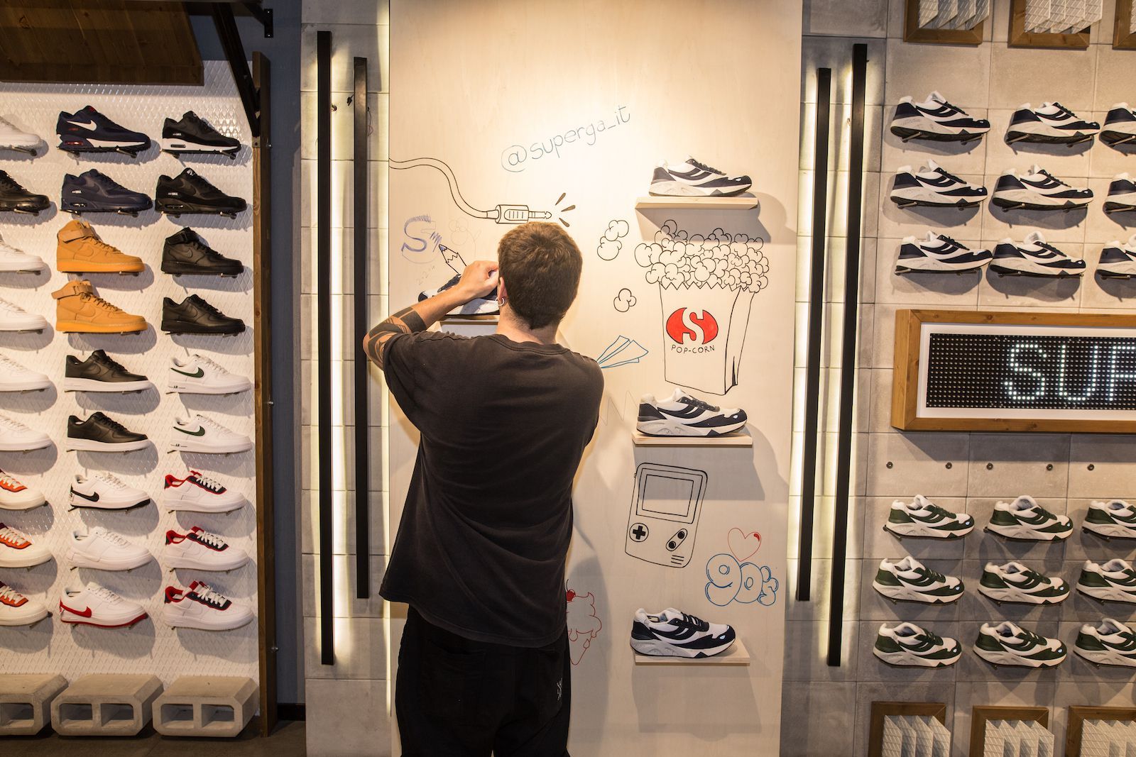What: Superga, the Italian brand always at the forefront of the national and international sneaker scene, was the protagonist of an event that focused on the silhouettes of the Italian label and their relationship with the world of art. Gianpiero, a cartoon designer and artist, gave life to a session of live painting drawing inspiration from the lines and the nuances of the latest creations by Superga while adding a 90s touch.