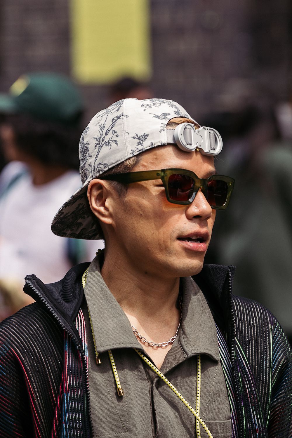 In front of Shezi's lens, alternate Burberry monogram looks, 99%IS- pants, Mains bucket hats, Dior Homme caps enriched by the iconic buckle designed by Matthew Williams, along with utilitarian chest bags and vests. English fashion seems perfectly at ease between sportswear and classic elegance, finding the right balance between tailored pieces and innovative items.