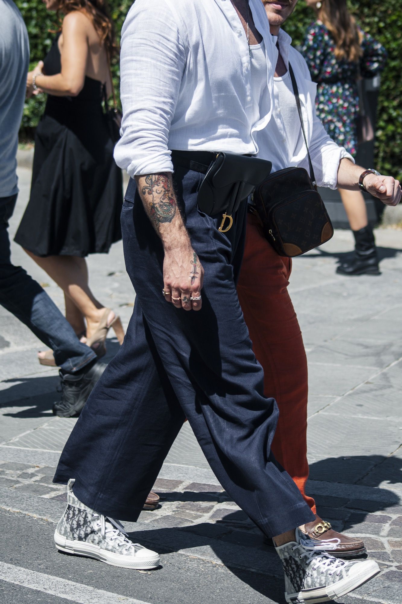 The street fashion around the streets of Florence has not let us down, a technical, sporty but nevertheless sophisticated style took the central stage. The main protagonists were brands with the likes of Prada, COMME des GARÇONS, Diadora, Calvin Klein, Jacquemus and Carrera.
