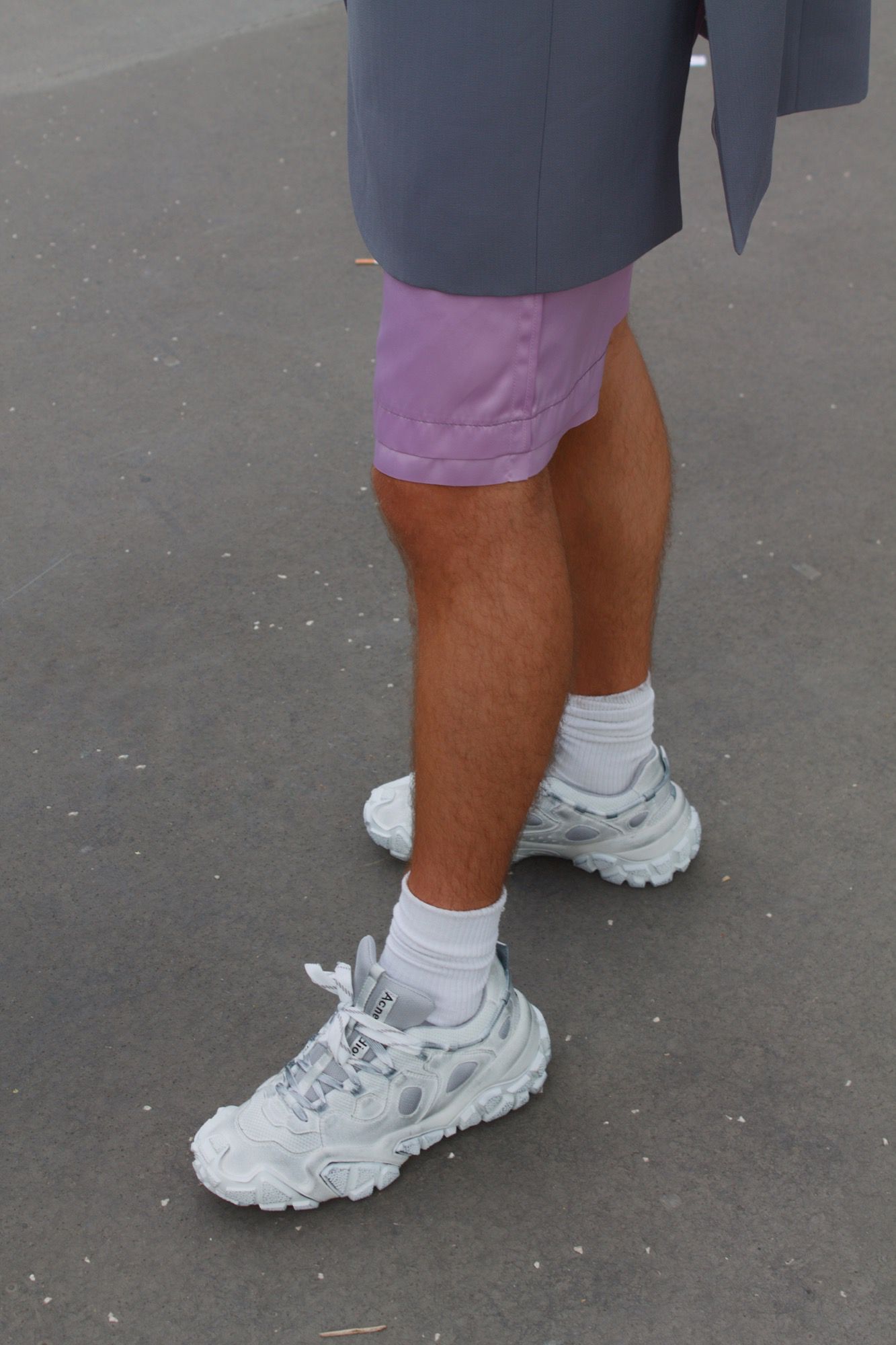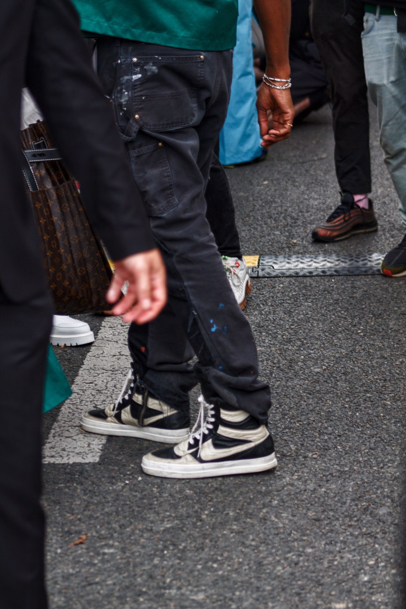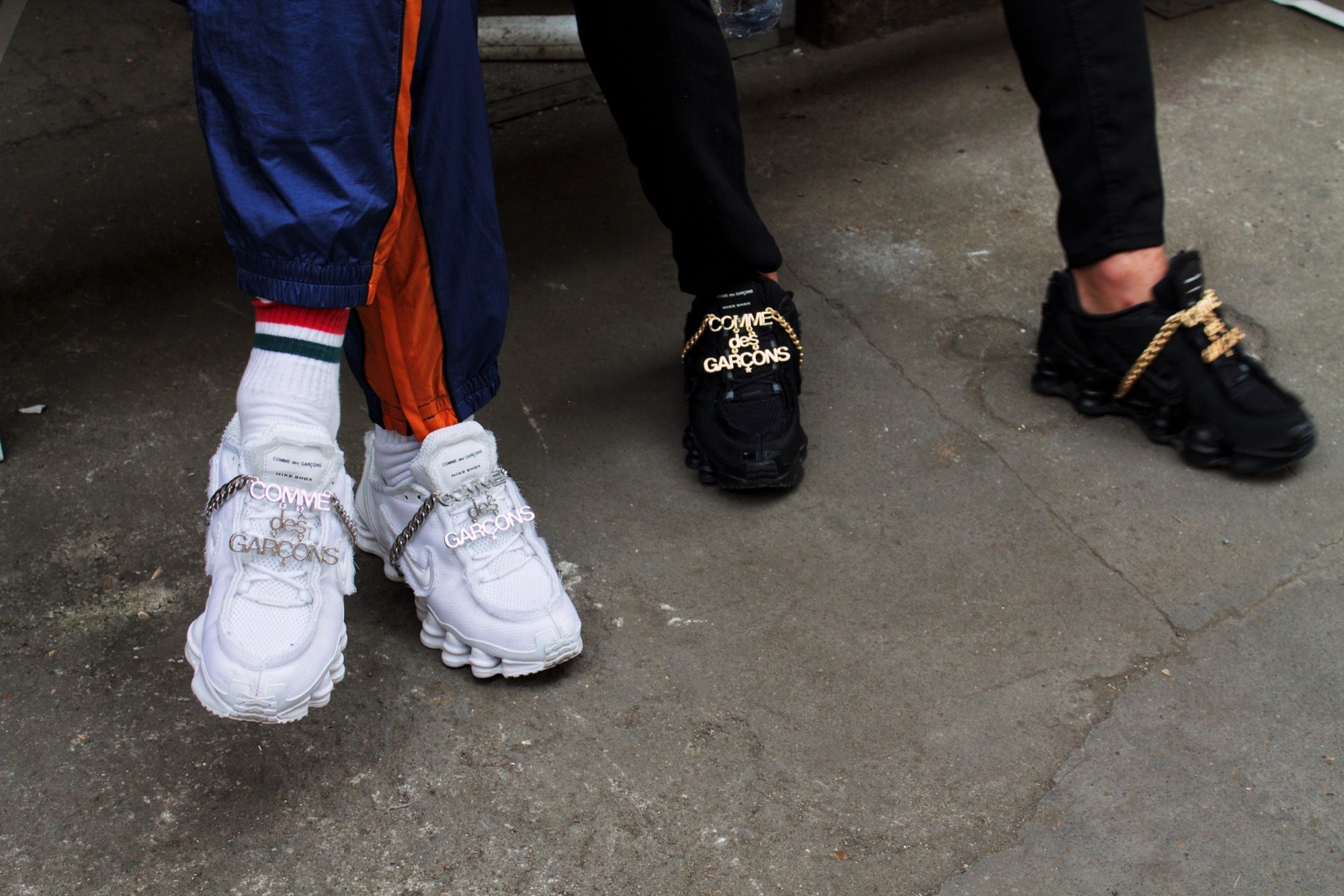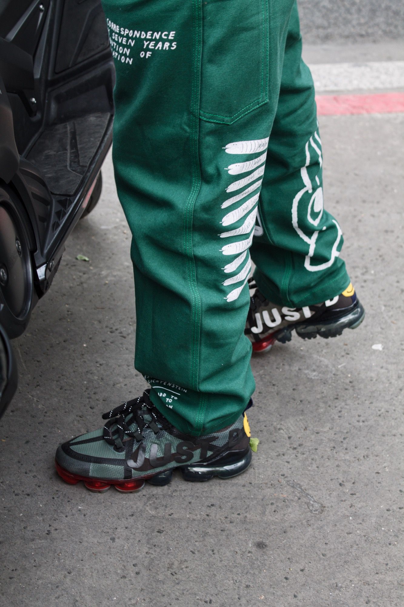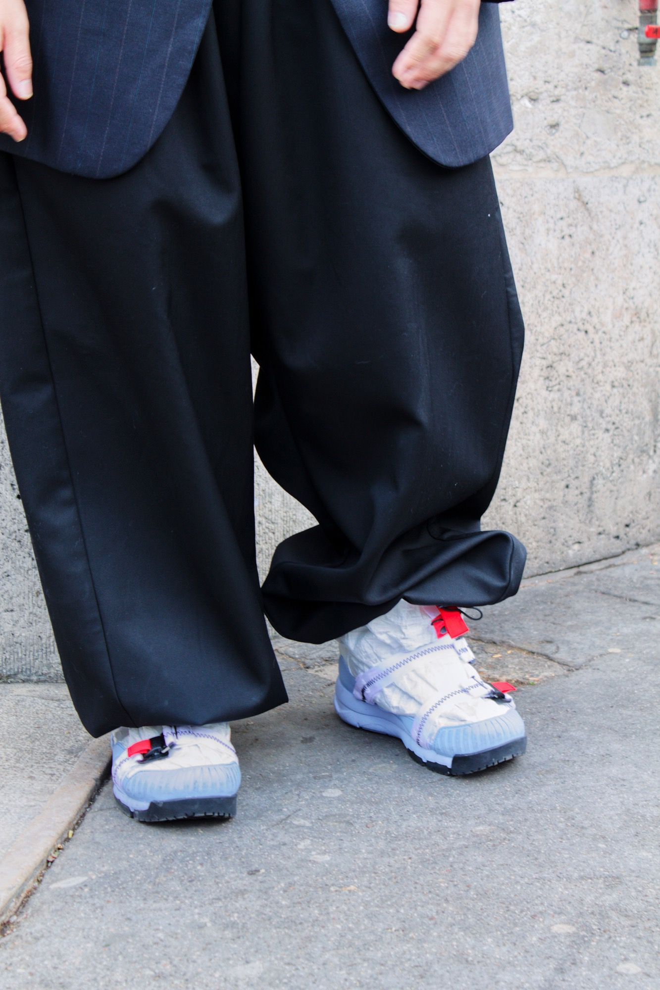 The latest and most anticipated releases, like the sacai x Nike Blazer Mid - spotted also with a customized Vibram sole by 1017 ALYX 9SM -, the COMME des GARÇONS x Nike Shox TL, or the Virgil Abloh x MCA Chicago x Nike Air Force 1 '07 were the absolute protagonists of the Paris street style, along with real grails like the Nike x Tom Sachs Mars Yard Overshoe.