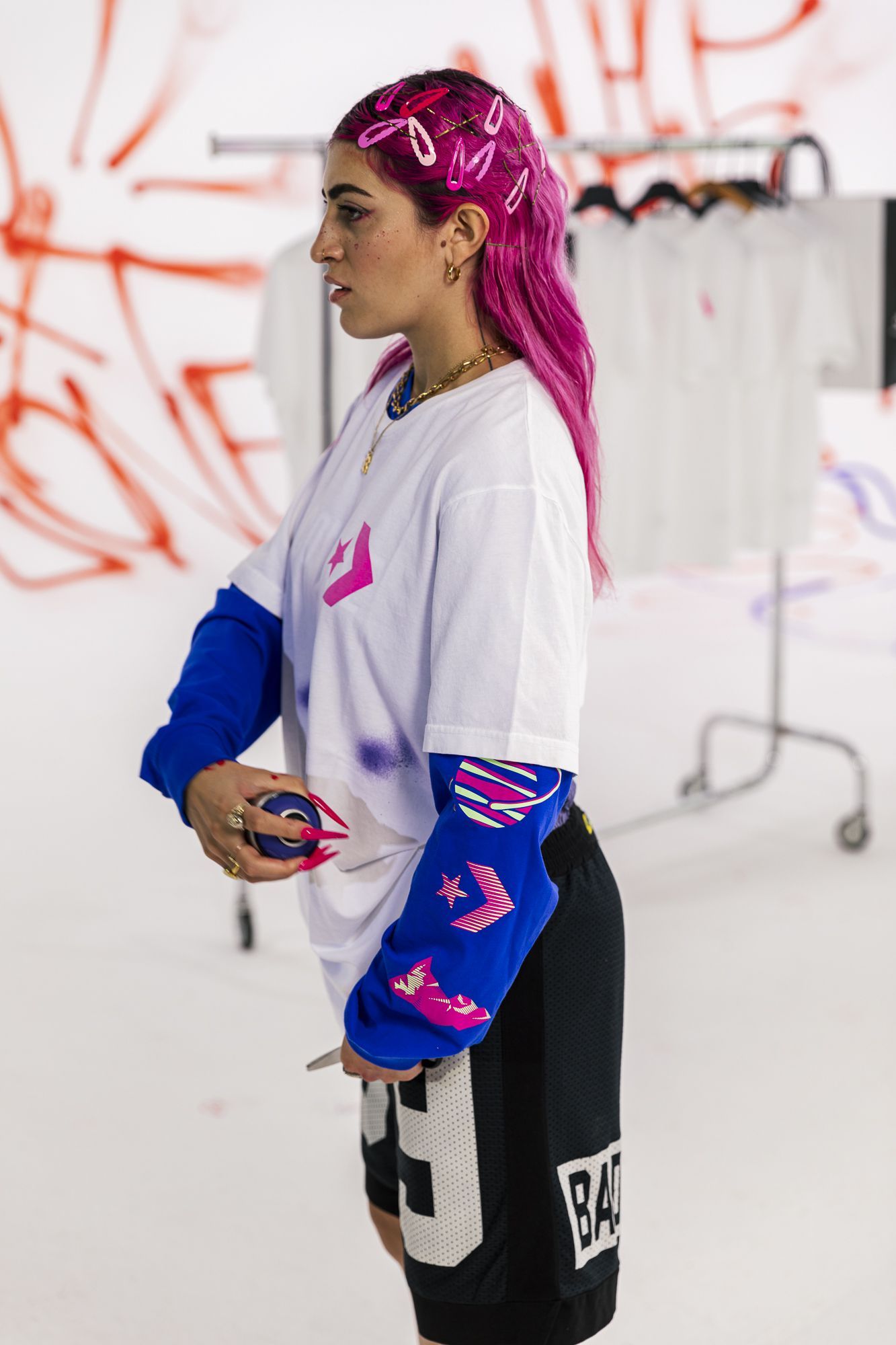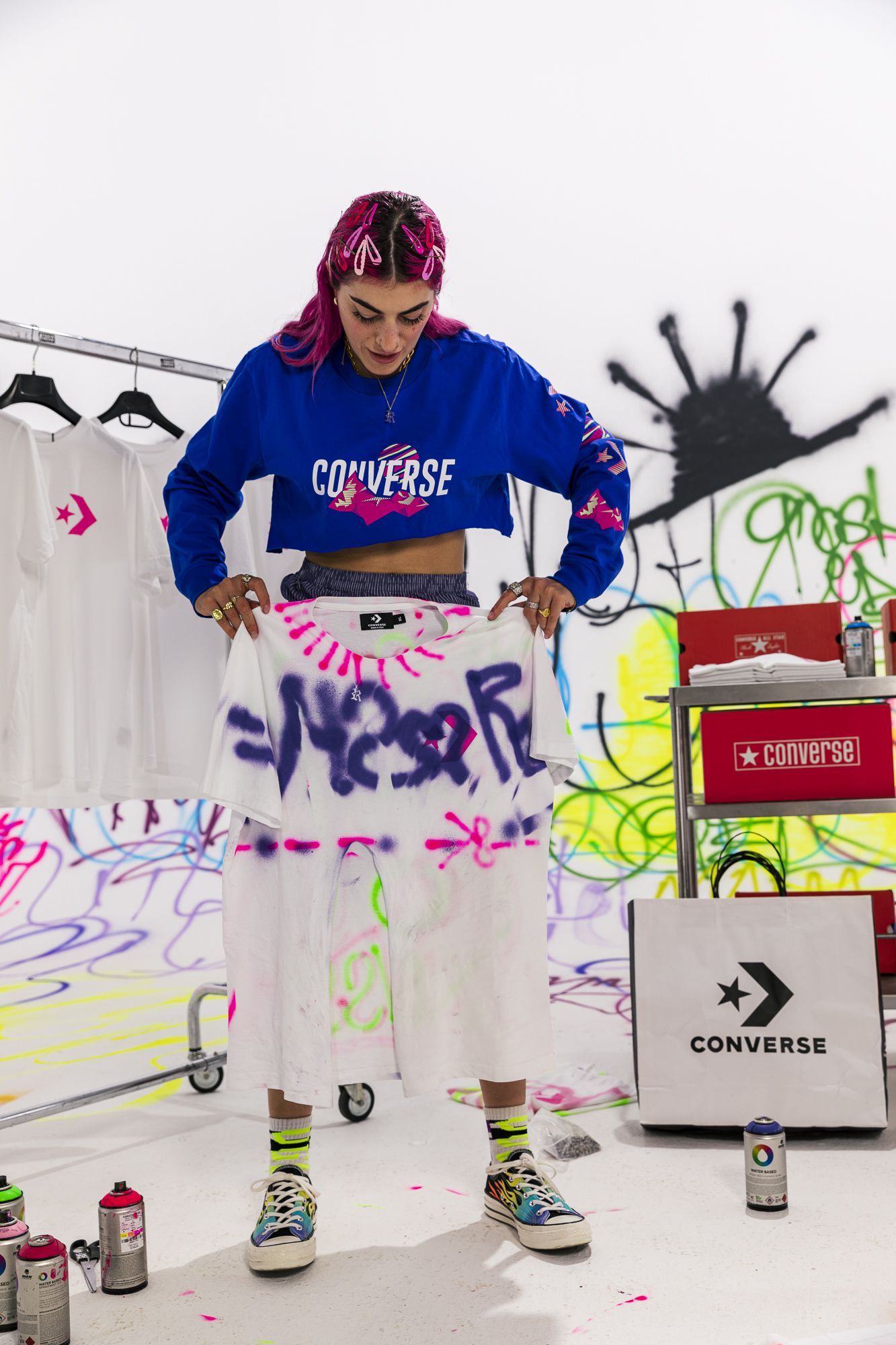 Along with her crew of creatives, among which RED stands, Roshelle has given life to an experience designed to create and develop in real-time all the visual communication related to the launch of her new single, MAMA dropping next August 30th, 2019 for Sony. The experience was moreover the occasion to unveil the partnership with Converse. For the release of the new track, Roshelle will also drop an exclusive merch made of white Converse tees, customized with Grog markers and Montana by Graffitishop sprayed by the artist herself. Roshelle's unlimited and boundless creativity was the true protagonist of the experience, that took us into a parallel, evocative and colourful universe.