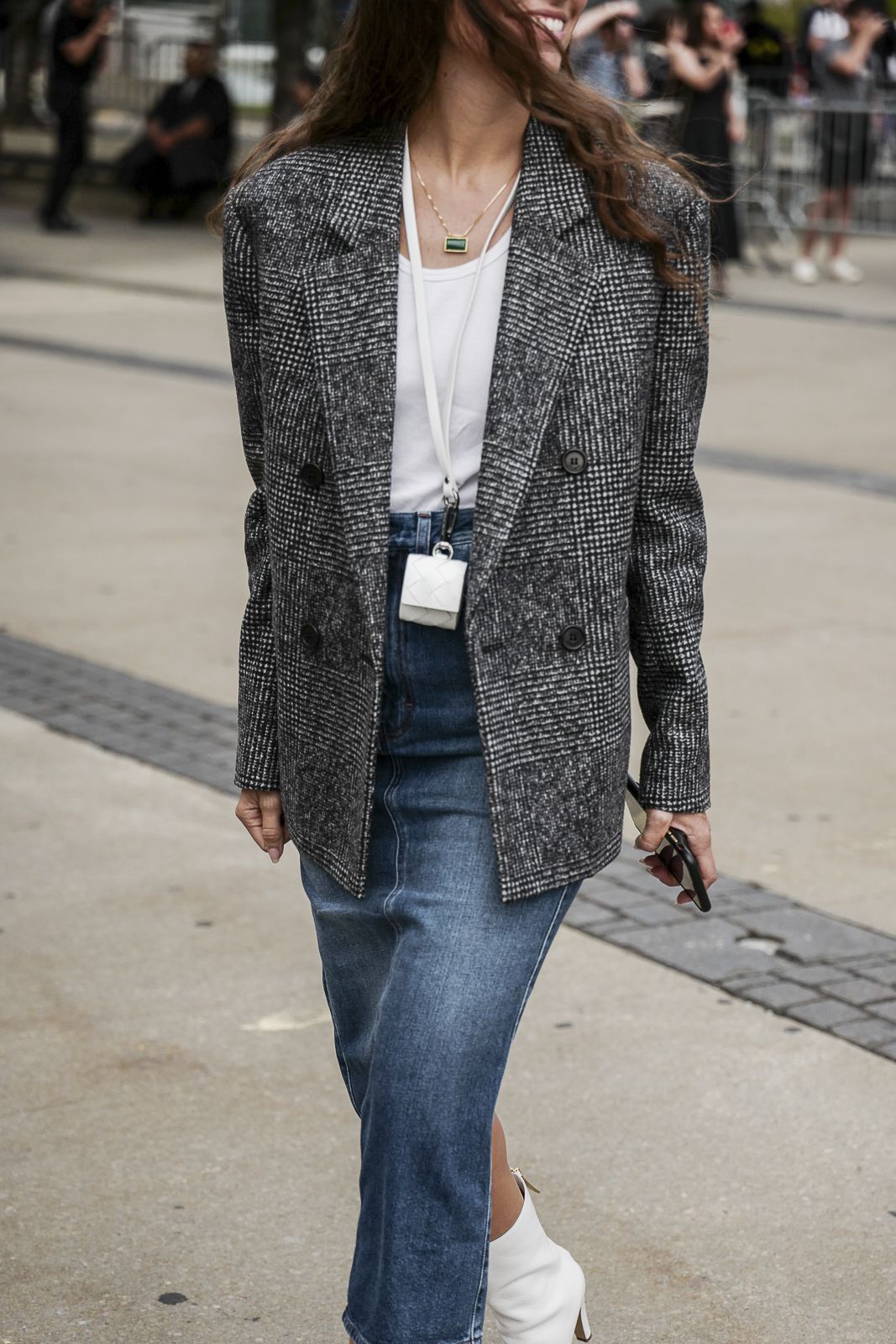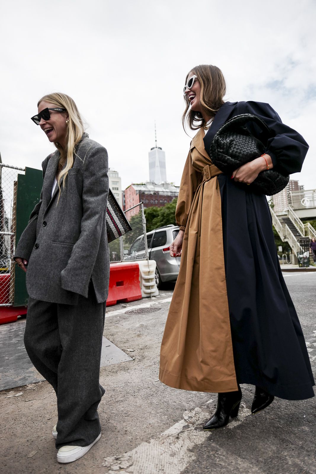 Julien Boudet took the streets of NY looking for the most interesting and stylish looks: his lens captured The Row sandals, Bottega Veneta handbags, Gucci monogram bomber jackets, boxy blazer jackets but also feminine dresses with ruffles, slip dresses in nude tones, and more with denim total looks and wide white pants. New York's woman is ultra-feminine, sophisticated without being pretentious, free to experiment with the trends and the must-have items of the season.