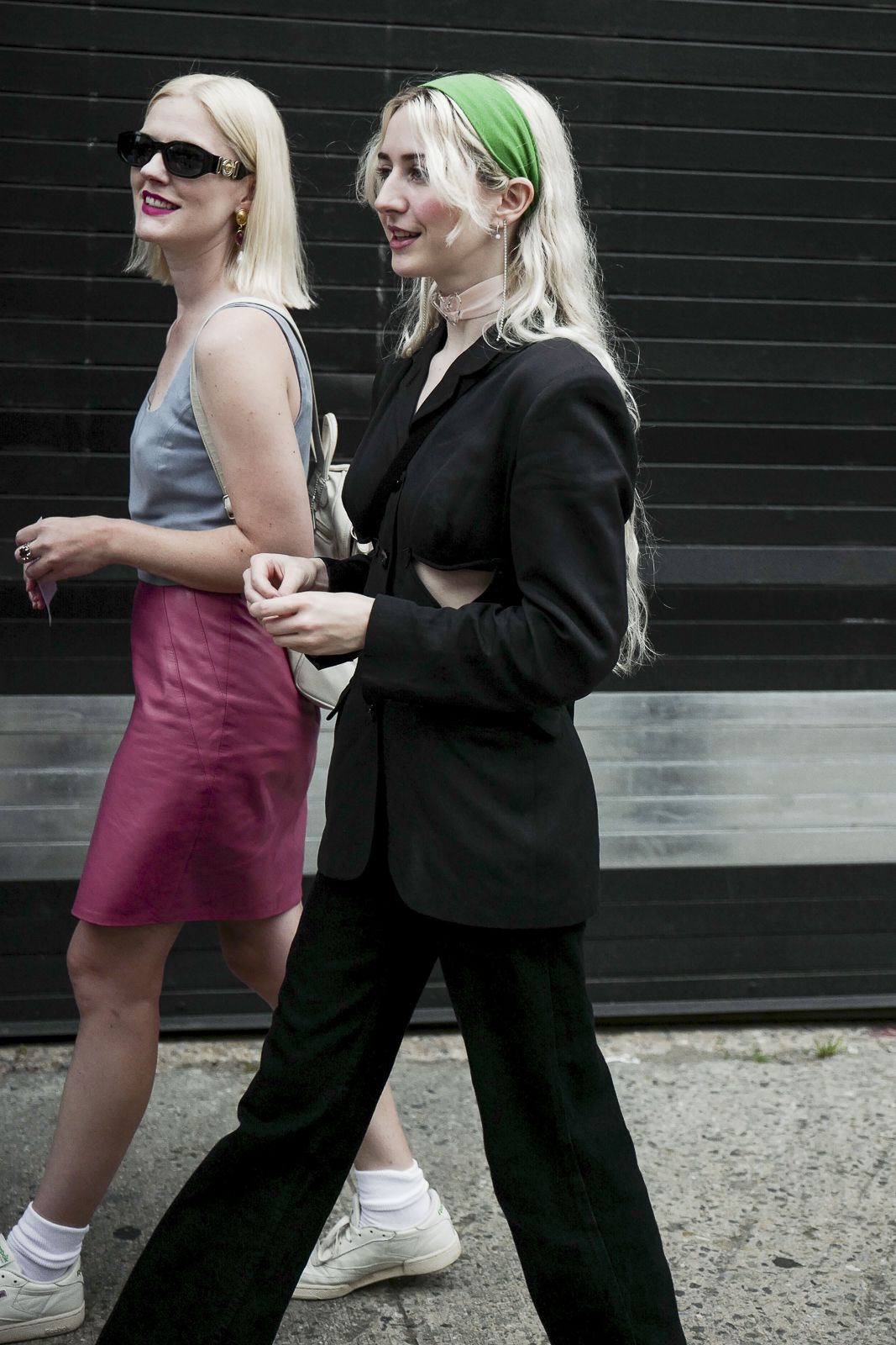 As always our lens was oriented towards the street, ready to capture the best looks of spotted around the city. Julien Boudet has shot for us monochromatic looks, loud prints, workwear-inspired vests, and boiler suits, balanced with ultra-feminine accessories as padded headbands. Tie-dye is still a great protagonist of the streets, both on sweaters and denim total looks. New York is getting ready for fall with leather pieces, ladylike trench jackets, turtlenecks, always undecided between super strong nuances and more nude tones.