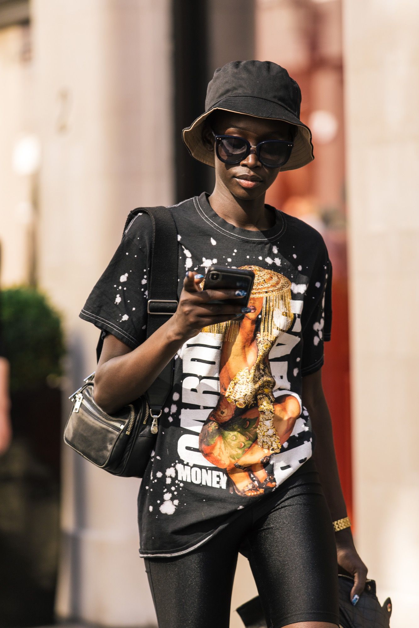 On the streets of London, Shezi Manezi has photographed streetwear looks enriched by tailored cuts and premium fabrics, bags by JW Anderson, Gucci and Jacquemus match to neon shirts, total denim looks and ladylike outfits in neutral nuances.