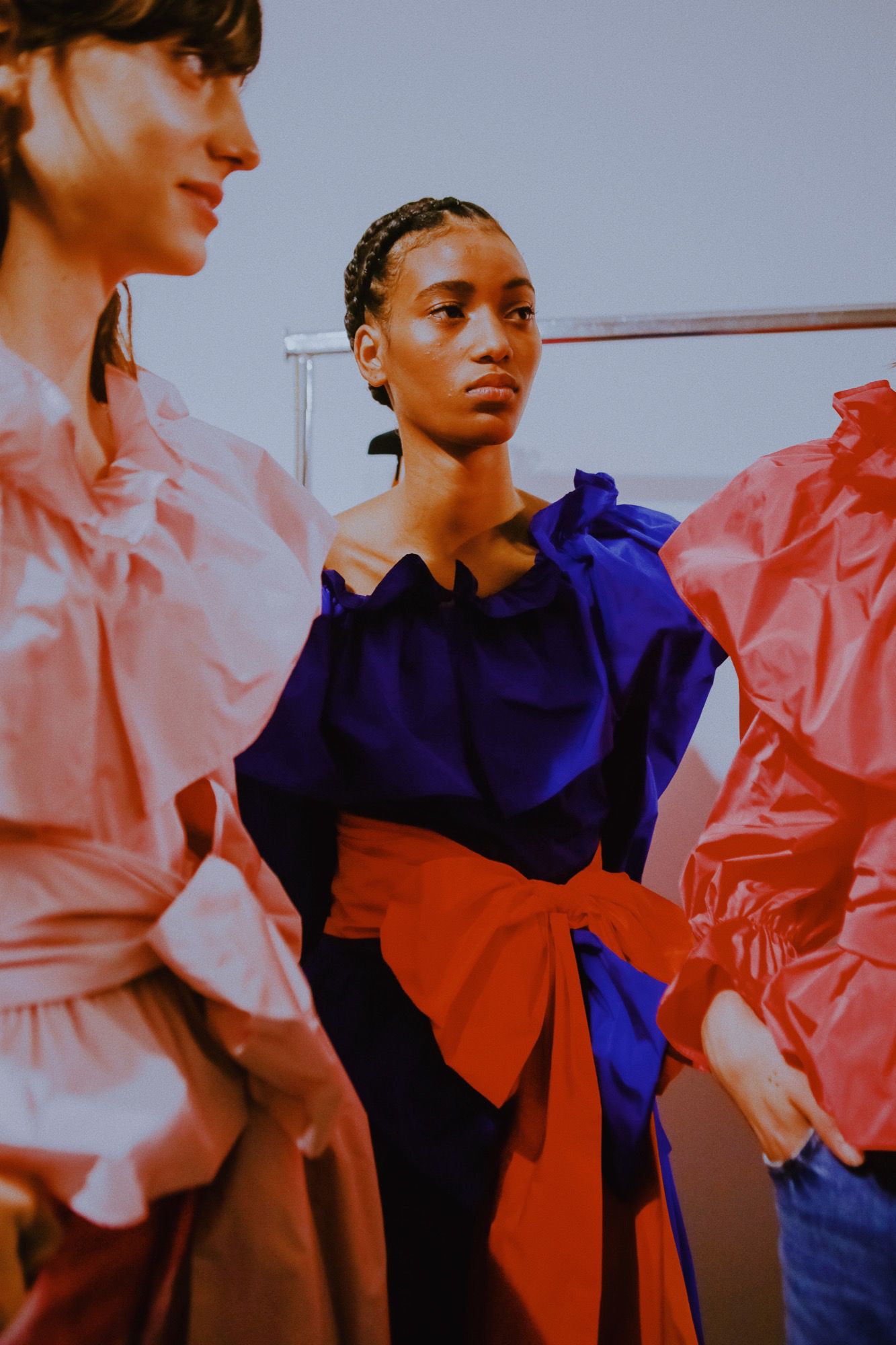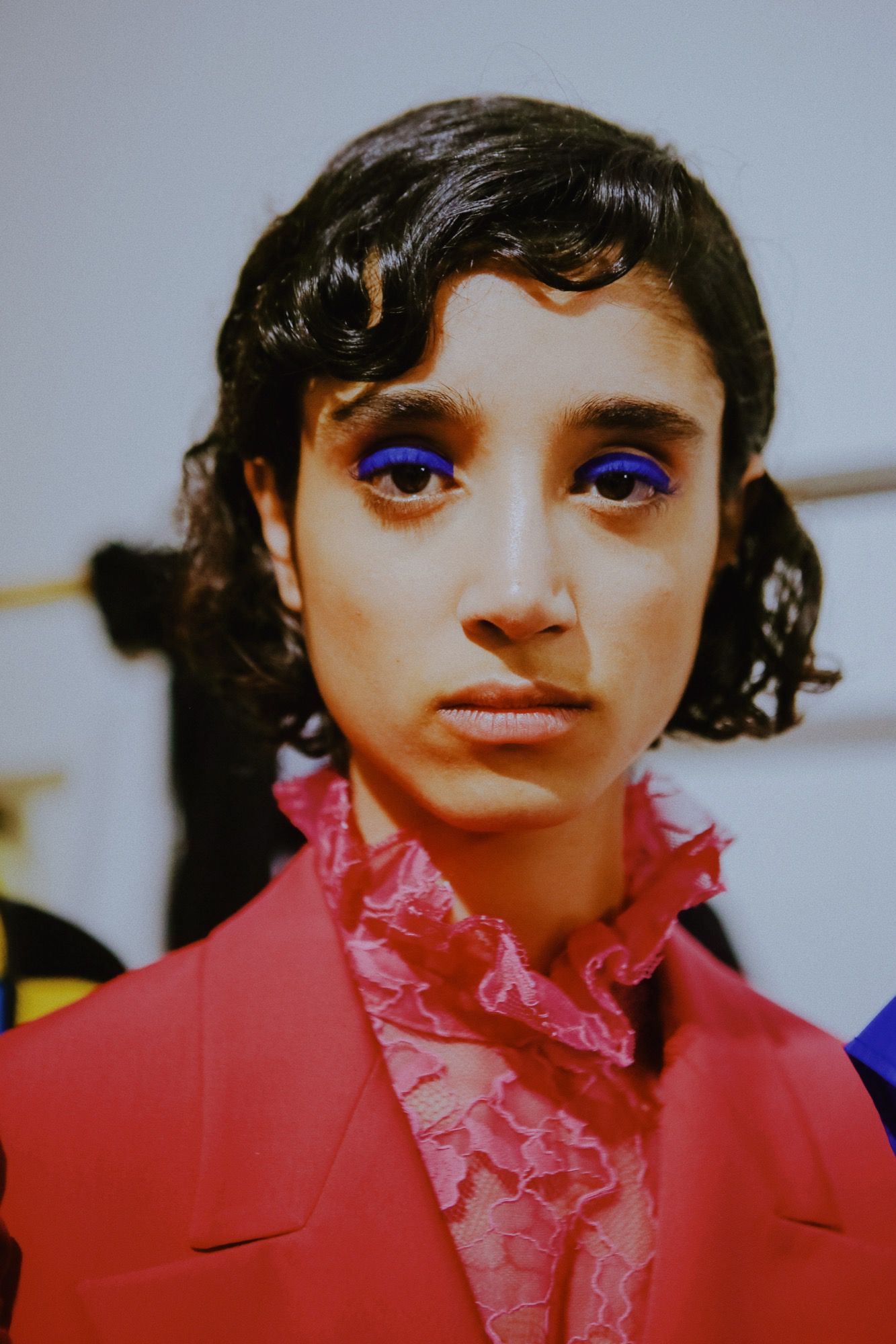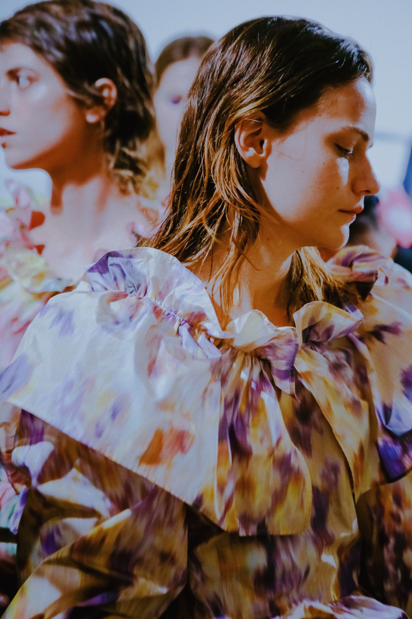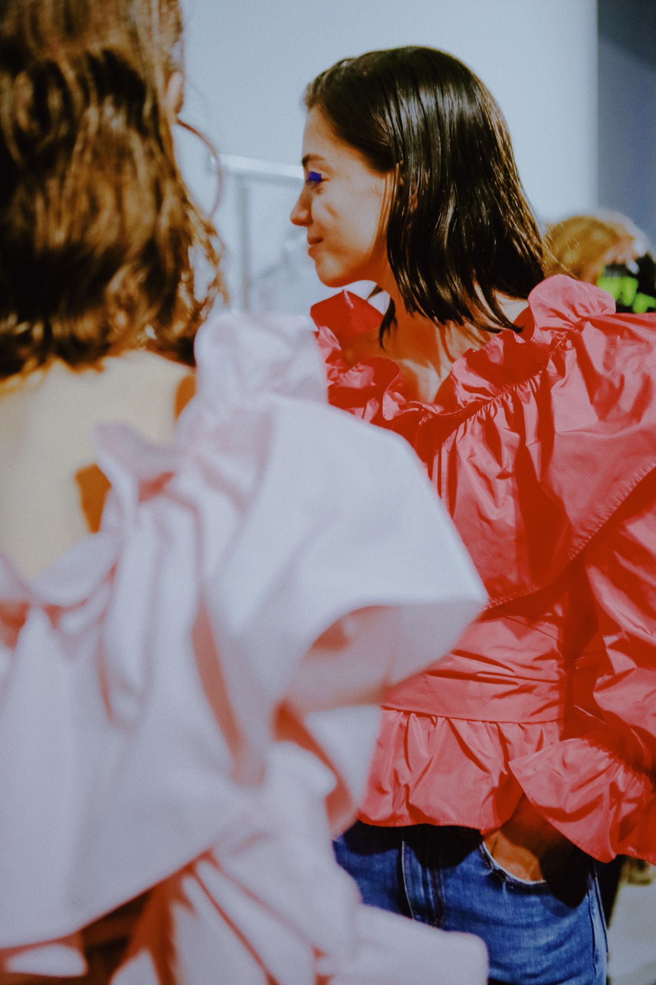 We were in the backstage at the MSGM fashion show, the one that celebrated 10 years of the brand founded by Massimo Giorgetti. The location is the Milan Triennale, one of the symbols of the art and design of the city, in which was presented looks in check, coats embellished with big bows. It's a woman very different from the concept of speed and pop symbols of the FW19 collection. Giorgetti experiments with fabrics, from denim to knitwear, with color palettes that return an artistic but at the same time playful spirit, thanks to experimentations with lace and Tye-Die.