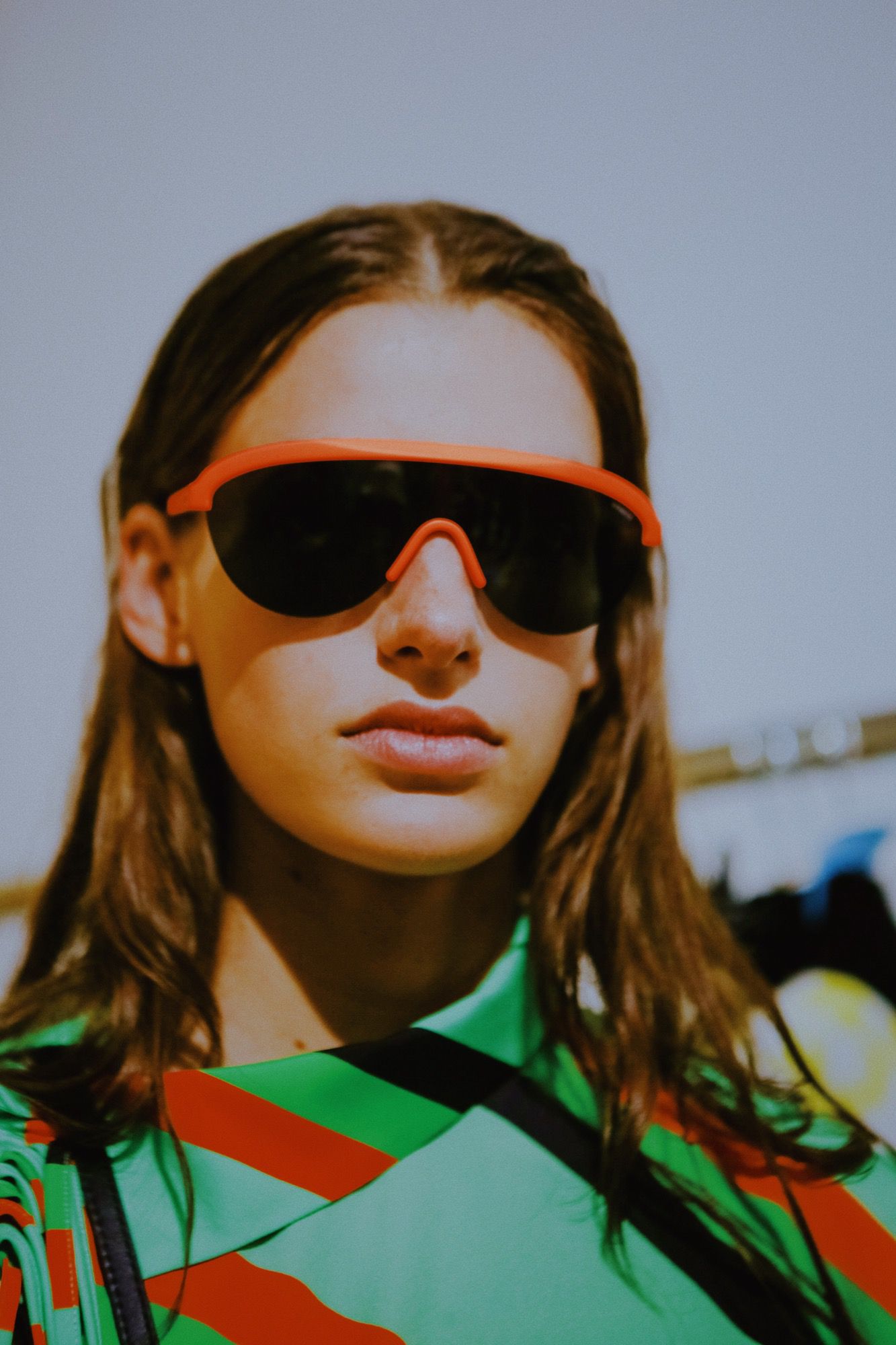 Breton women's collars parade on a fluo green catwalk along with belts and accessories that take the scene, such as cycling goggles. The latest looks are a triumph of fringes, which also make shoes, as well as ruffles.