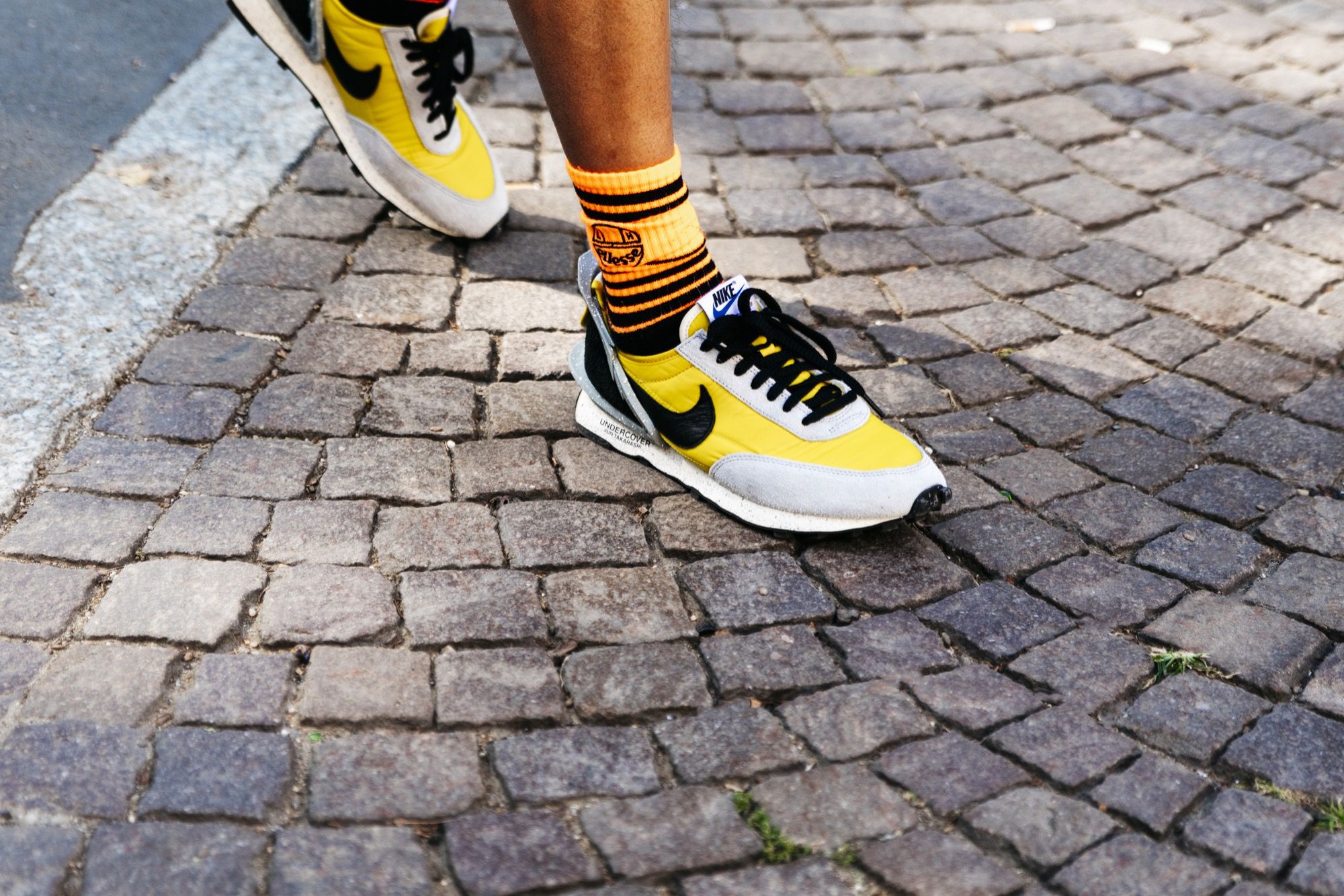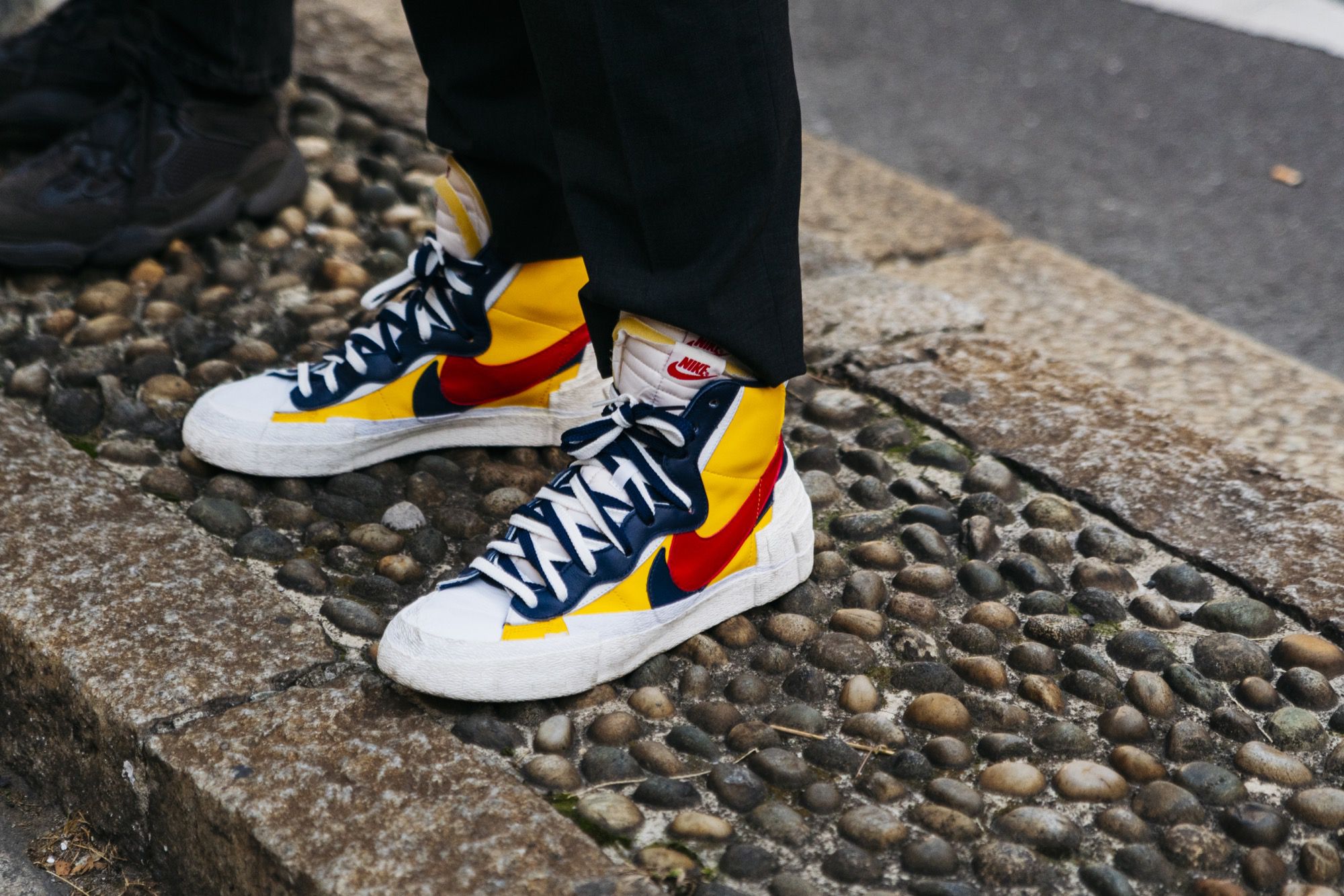 As always, our eyes were set on the street, above all on the sneakers: Milan gave the best of itself with new and coveted releases, like the COMME des GARÇONS x Air Jordan 1 or the Nike Blazer High sacai, along with regular guests of the street style, such as the adidas by Raf Simons Ozweego RS or the Air Jordan 1 High Travis Scott. The sneaker game has never been so good, thanks to newly dropped silhouettes and real grails.