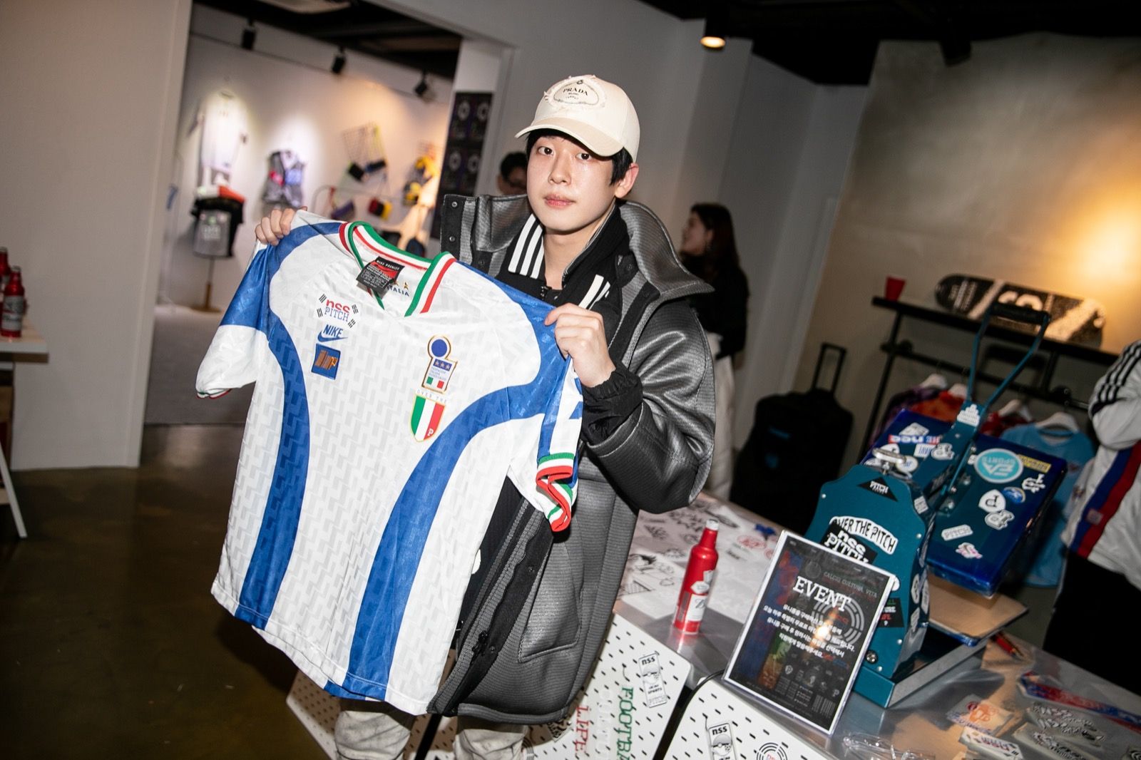 In the stunning location of the Pitch Seoul store - a dedicated sky-earth building that host a store, a creative agency and a futsal indoor pitch - nss sports presented the new collection of vintage jerseys and accessories remade, as well as a selection of sweaters from Korean soccer customized in collaboration with FORWARD, kit supplier of the Korean team Daegu City FC.