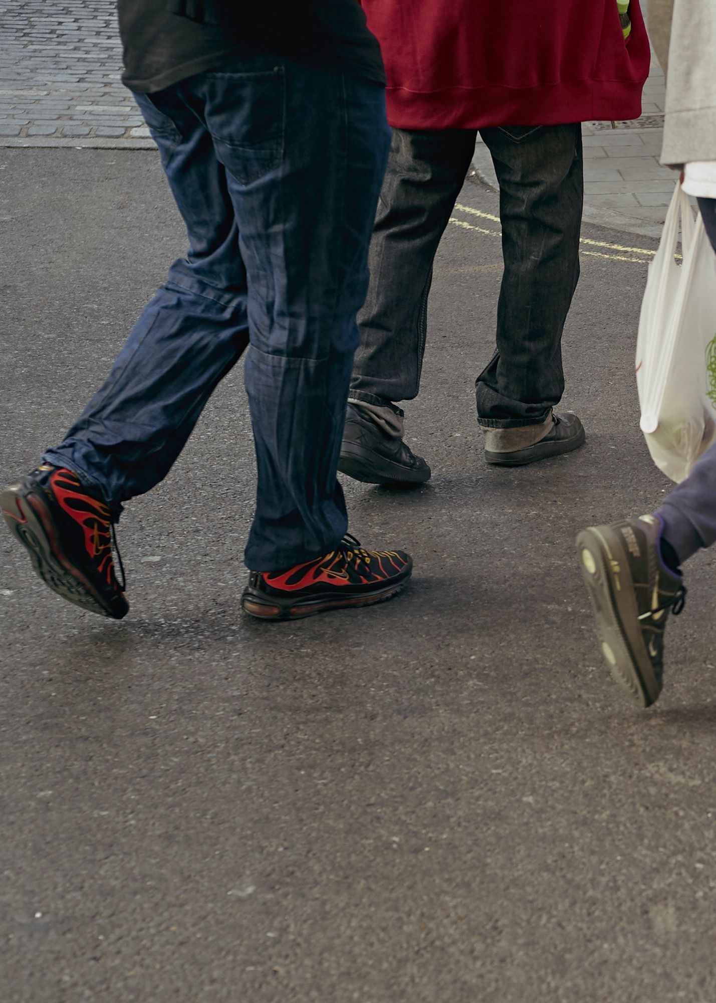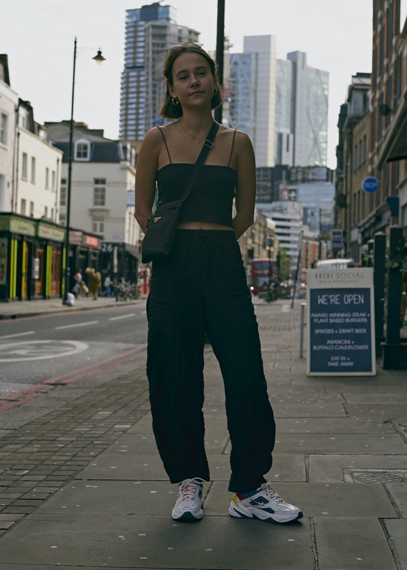 If on the catwalks, virtual or physical, there have been different visions for the future, from the extreme romanticism of Erdem to the new sensual tailoring of Victoria Beckham, to the innovative silhouettes of the emerging designers of Fashion East, on the streets of London there is no shortage of sweatpants in various shades, techwear inspired accessories and above all sneakers, as we hadn't seen for several seasons, from the latest and most awaited releases to the timeless classics. Milo Van-Giap has photographed a London in search of a new stylistic identity, the result of the lockdown months and projected towards an uncertain future.