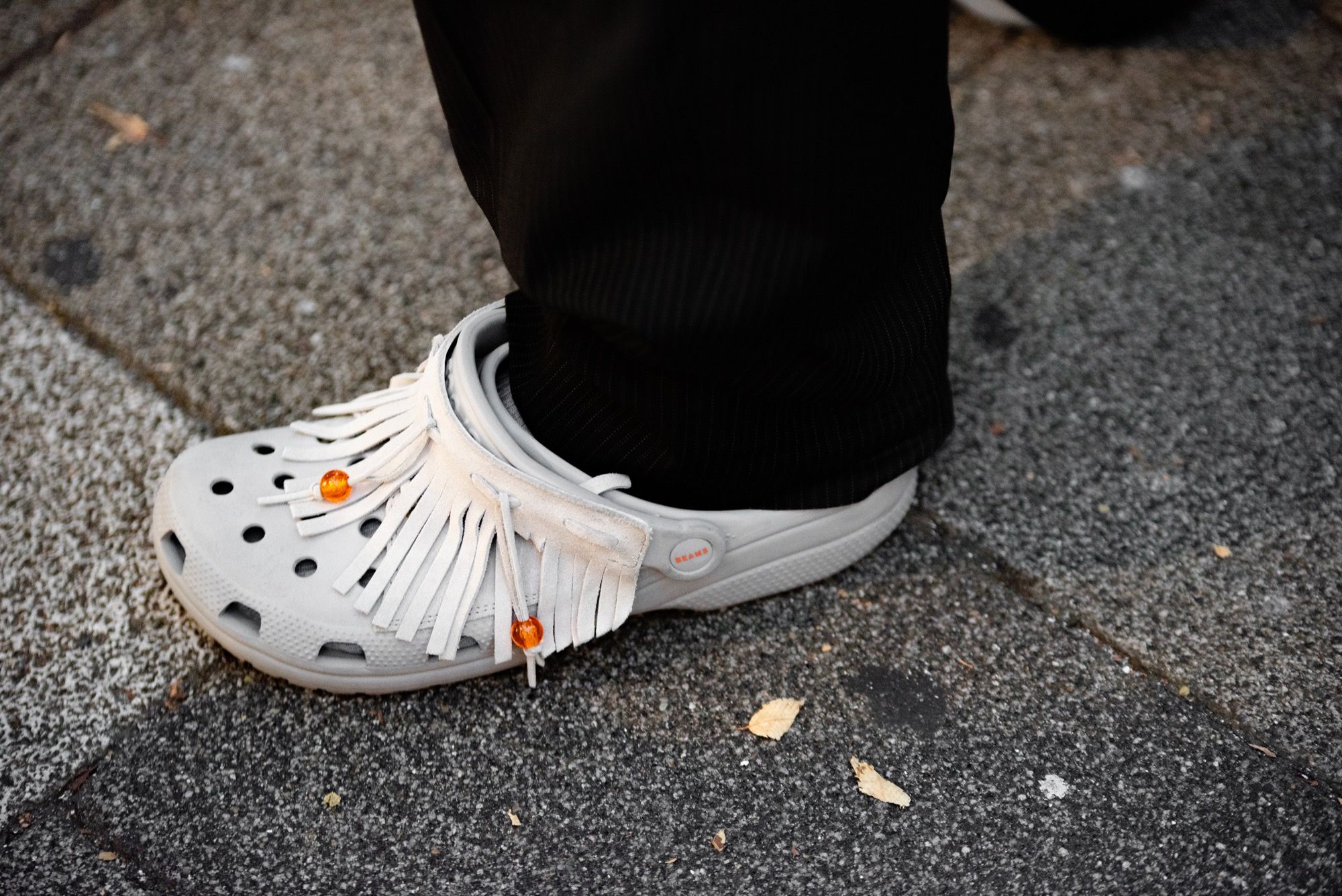 The latest looks seen on the streets of the city make no exception, photographed for nss magazine by Tanase, on the occasion of Tokyo Fashion Week SS21. Off-White™ coats with holes meet Prada's most iconic accessories, the Telfar Bag happily coexists with Marine Serre turtlenecks, Lacoste bon-ton cardigans collide with vintage leather jackets with a punk soul. Even in terms of sneakers, the one who dares the most wins, both with a pair of Tabi Boots by Maison Margiela in collaboration with Reebok as well as with the latest silhouette by Balenciaga. The future of street style can already be spotted in Tokyo.