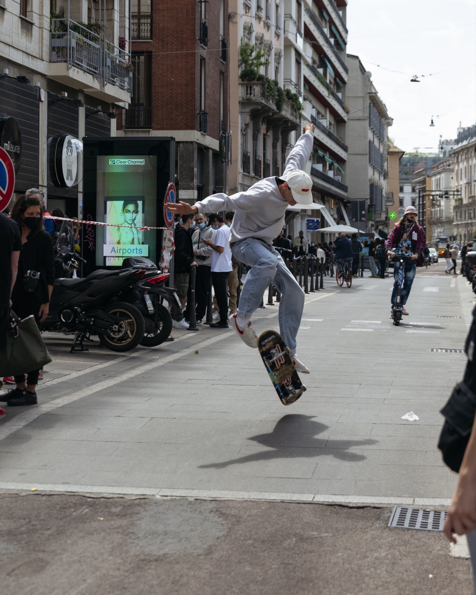 Wednesday night before and then Thursday the Supreme store finally opened its doors: a space with seven windows in Corso Garibaldi, in the heart of Brera, celebrated with a box logo that pays homage to Leonardo Da Vinci's Last Supper, making it the most desired and sought after item of the moment, which will become a grail like all the Bogos made for store openings. After a long wait, Milan welcomed the brand with open arms, which in this immaculate space blends art, skate culture and streetwear, in a melting pot of communities, social groups and personalities gathered under the iconic red sign.