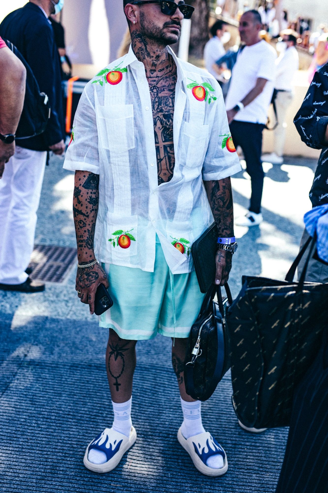 The street style on the streets of Florence in these days was usually characterized by very formal tailored suits, blazer jackets and trousers tailor-made by the best tailors, vaguely nostalgic hats and extravagant accessories, in a conception of fashion closely linked to the craftsmanship of the discipline, to the quality of fabrics and classic design. These instances haven't lacked even this year but interpreted in a more casual, more relaxed, even self-ironic way, an almost inevitable consequence after a year in which we have forgotten what it means to dress up.